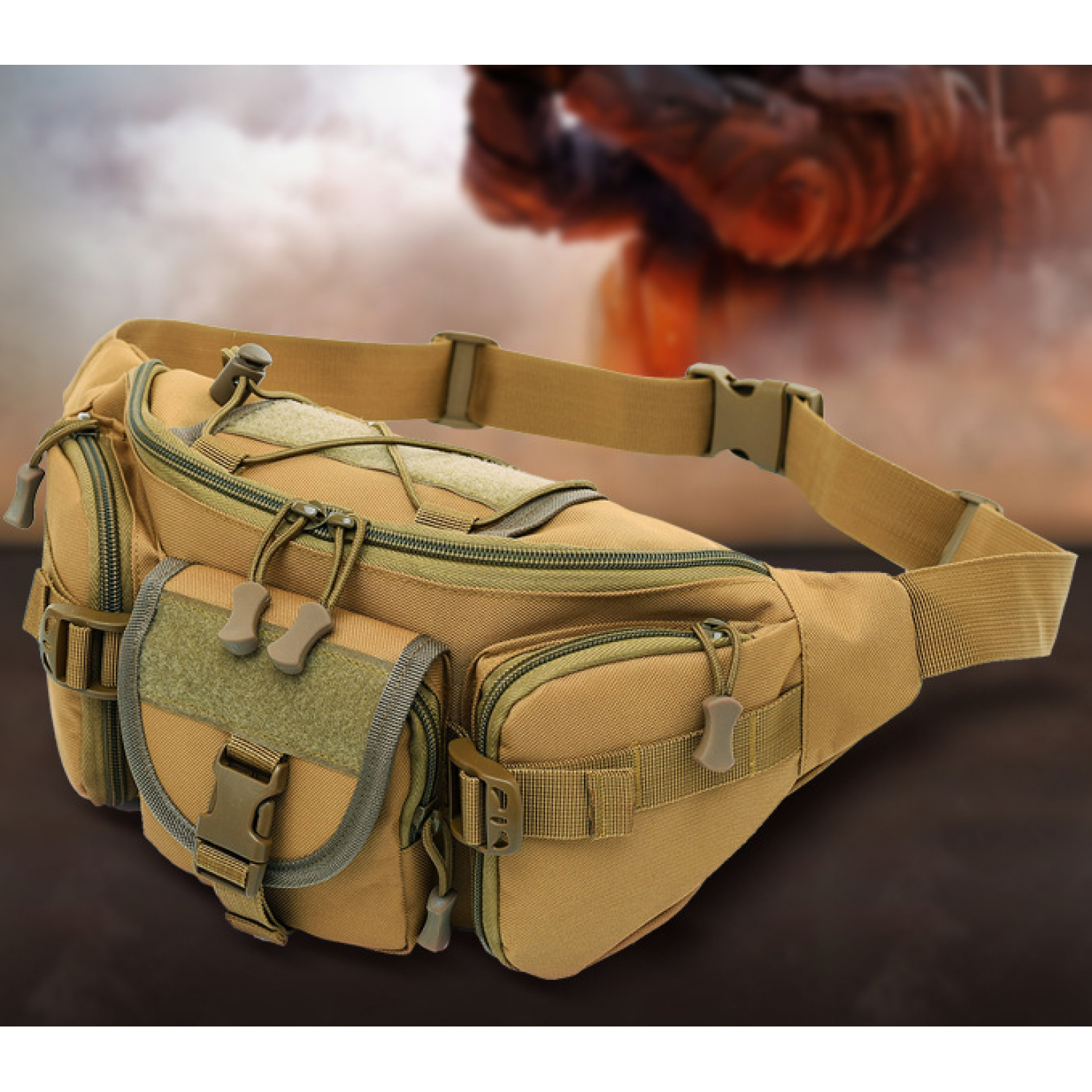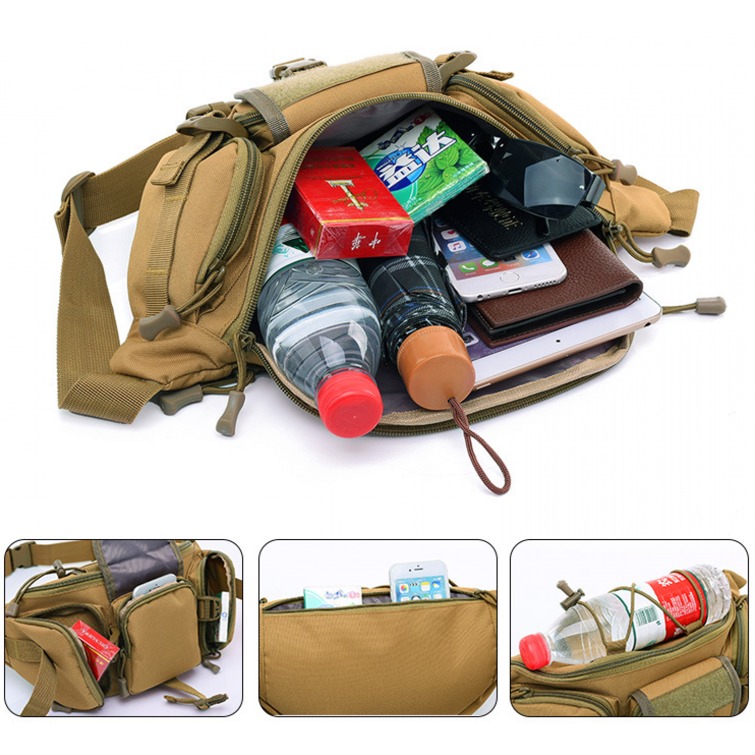 Army fan bag men's sports outdoor large-capacity waterproof tactics pockets cycling travel running multi-function chest bag Black