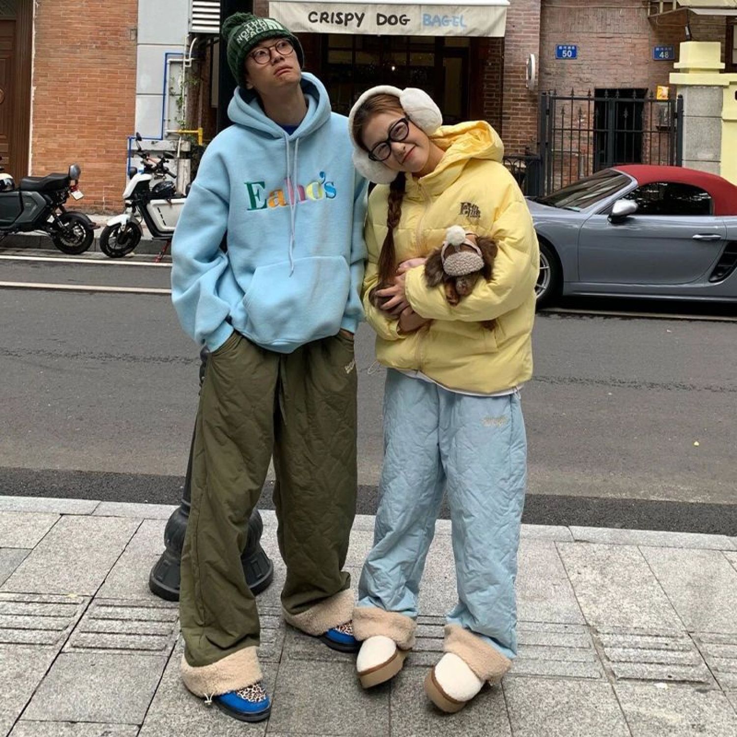Color: pink lamb wool straight-leg pants, Army Green lamb wool straight-leg pants, blue lamb wool straight-leg pants, khaki lamb wool straight-leg pants