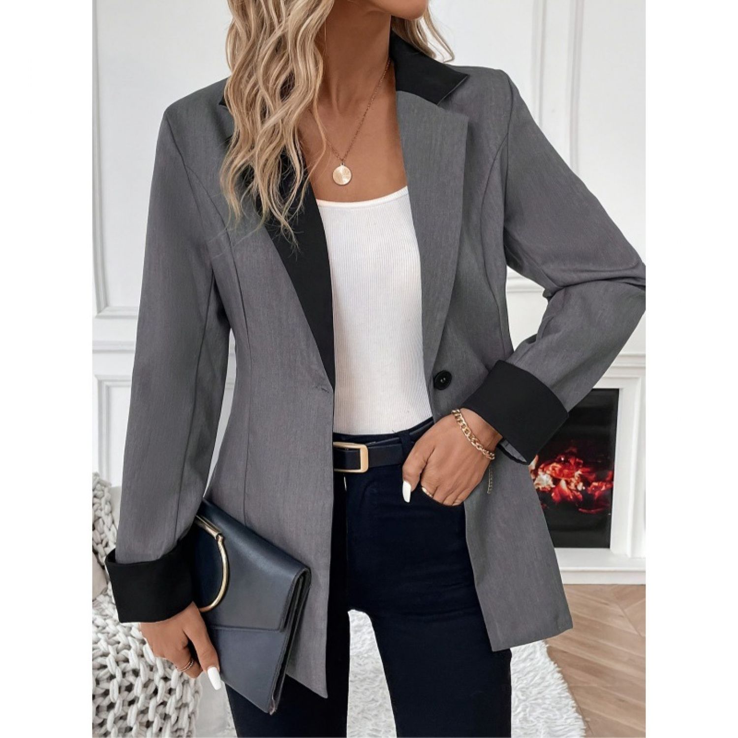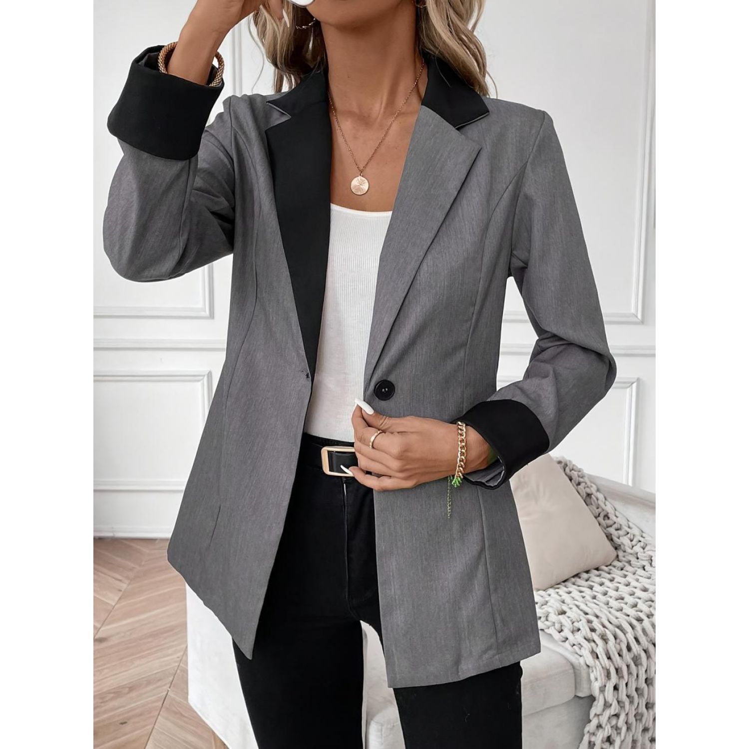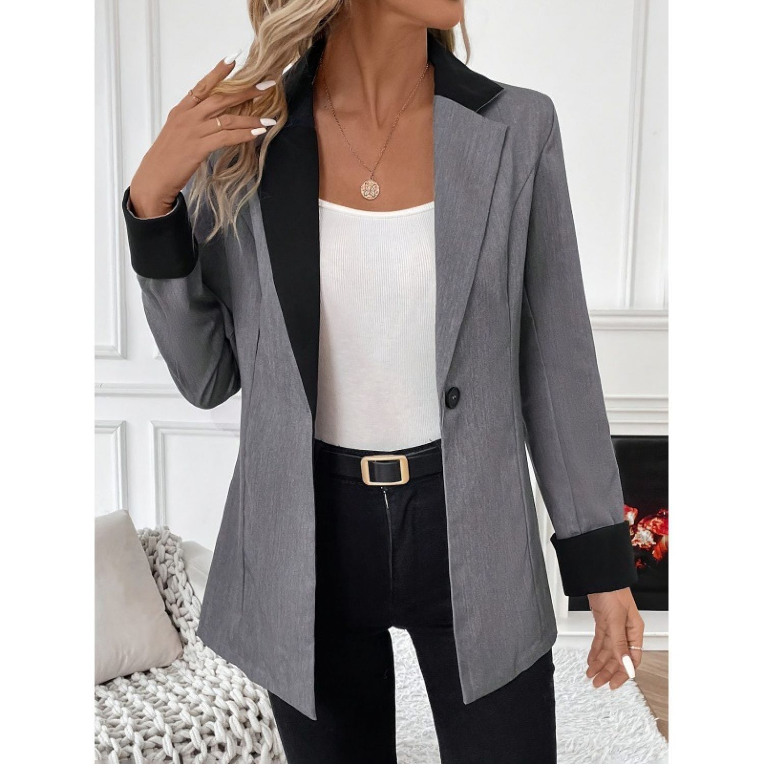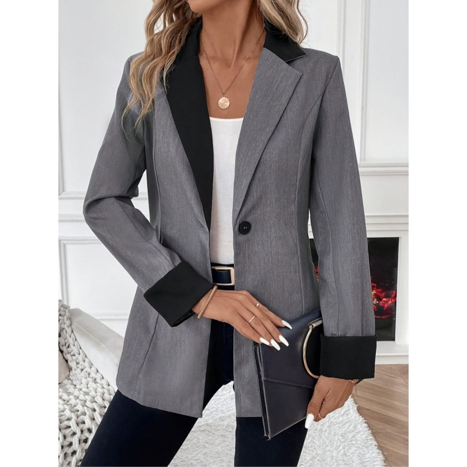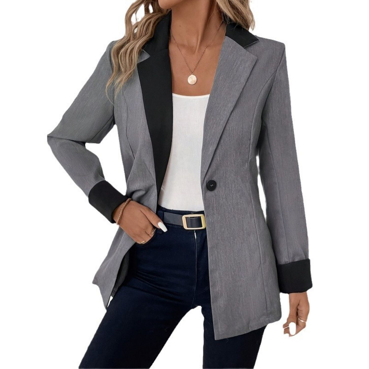Product information: Color: smoky gray Size: S,M,L,XL Version: Loose Gender: Female Style type: Street hipster Size: L Sleeve length: long sleeve Popular elements: Buttons Craft: Pocket