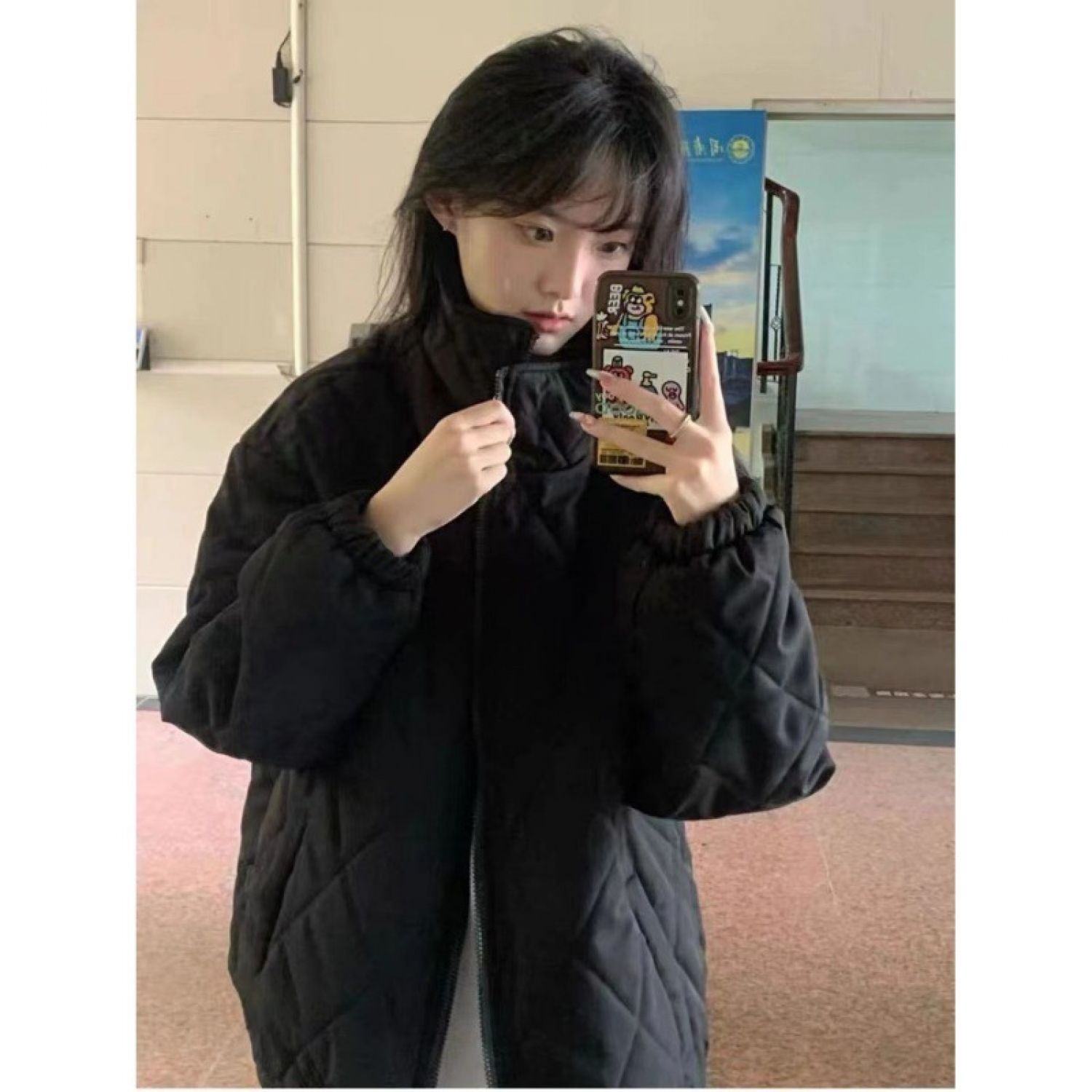 Autumn Winter Cotton-padded Coat Women's Loose F426 Blue S