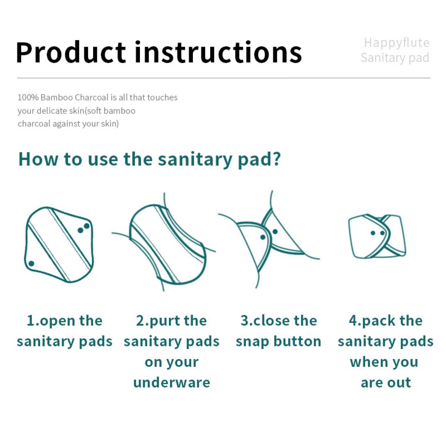 Bamboo Charcoal Fiber Washable Sanitary Pad Mother Care A
