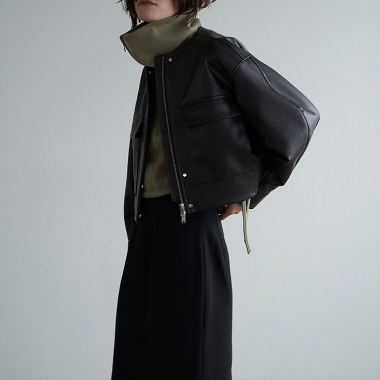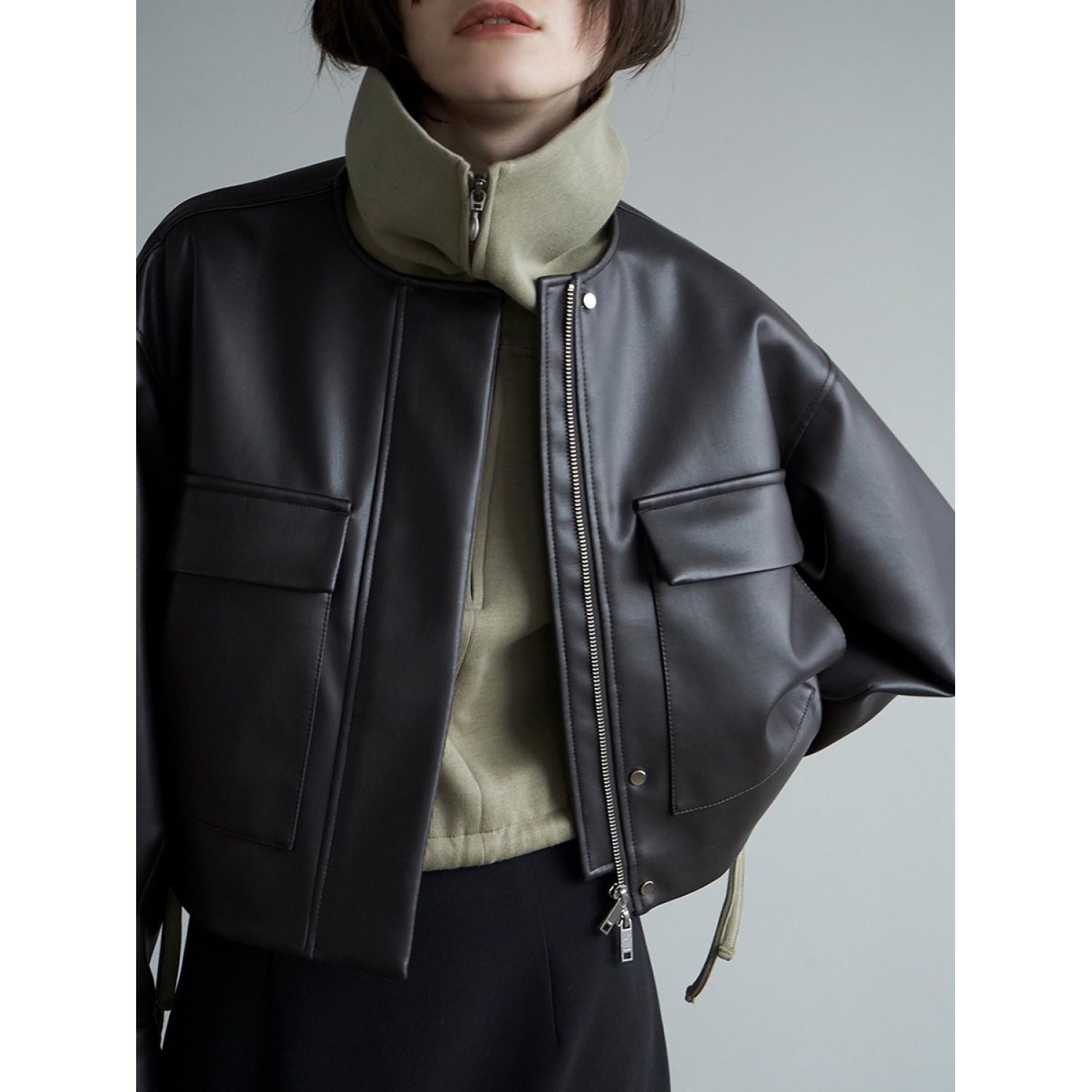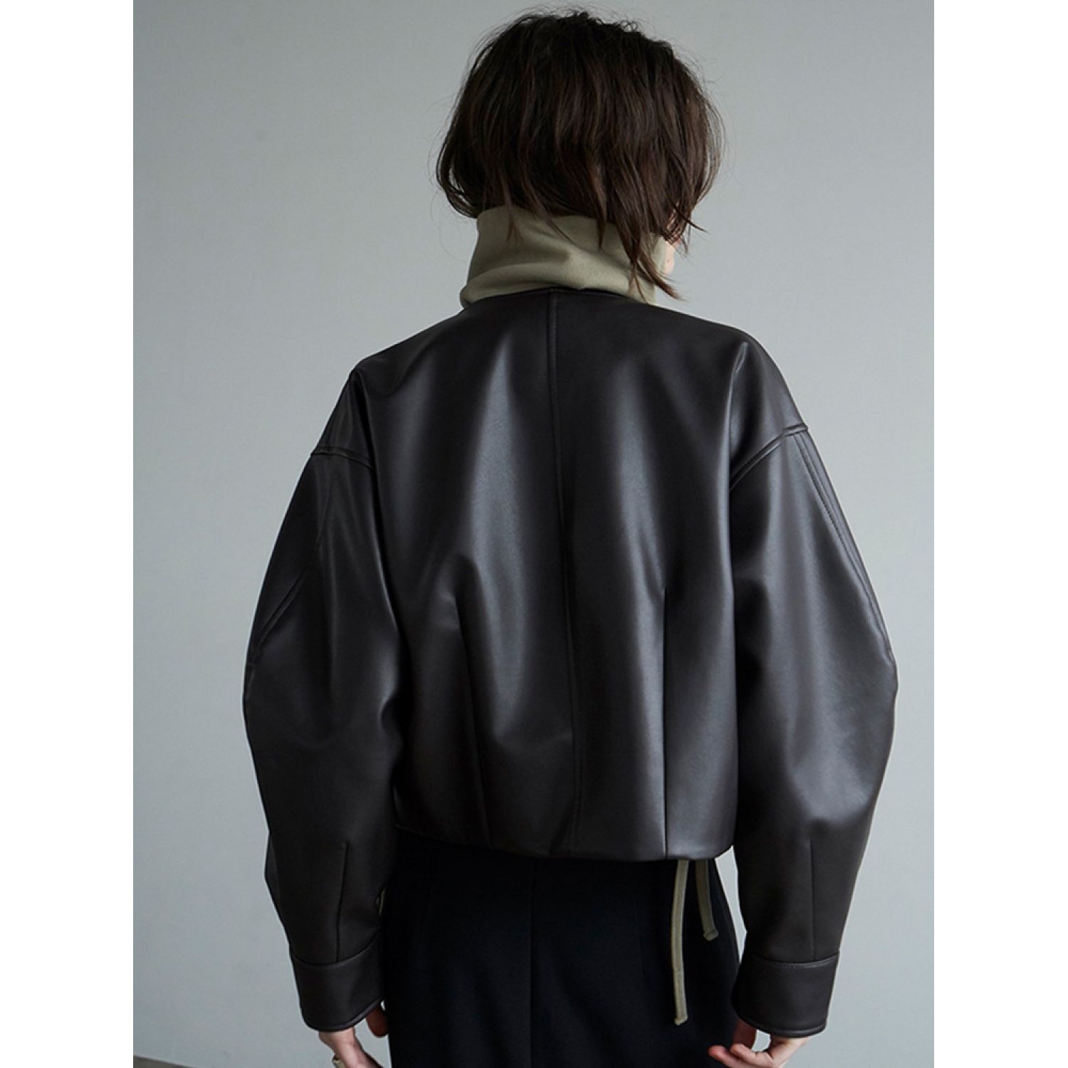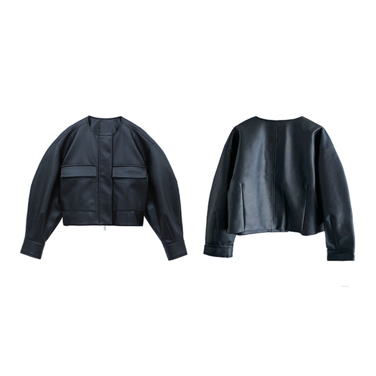 British Style Short Leather Coat For Women Black S