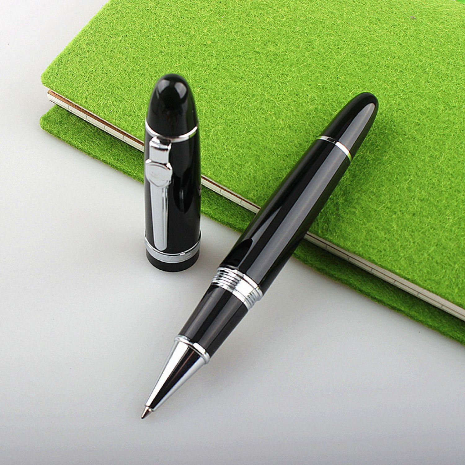 Business Office Metal Signature Signed Pearl Round Beads Neutral Ball Pen Black Silver Clip 500 Micron