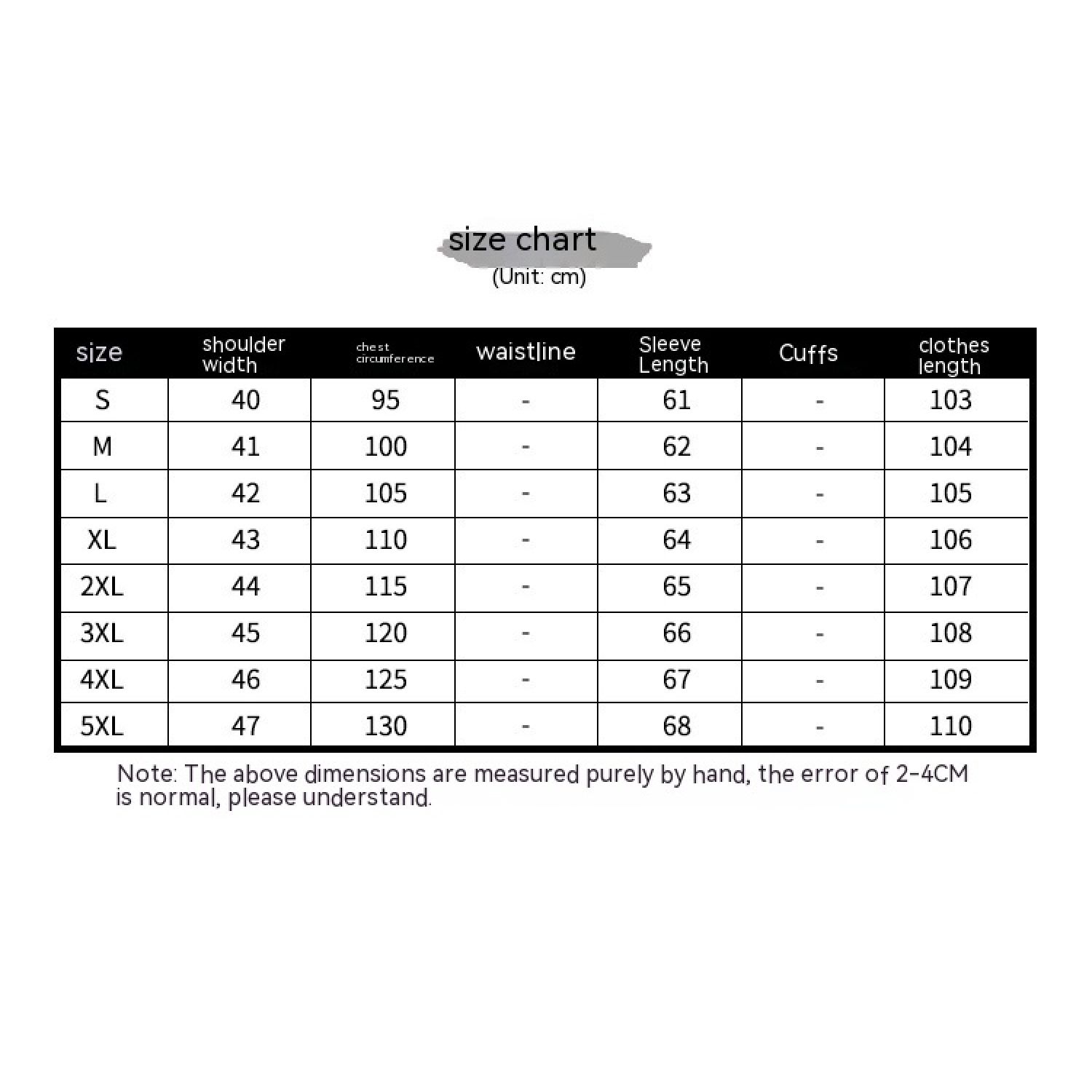 1. Asian sizes are 1 to 2 sizes smaller than European and American people. Choose the larger size if your size between two sizes. Please allow 2-3cm differences due to manual measurement. 2. Please check the size chart carefully before you buy the item, if you don't know how to choose size, please contact our customer service. 3.As you know, the different computers display colors differently, the color of the actual item may vary slightly from the following images.