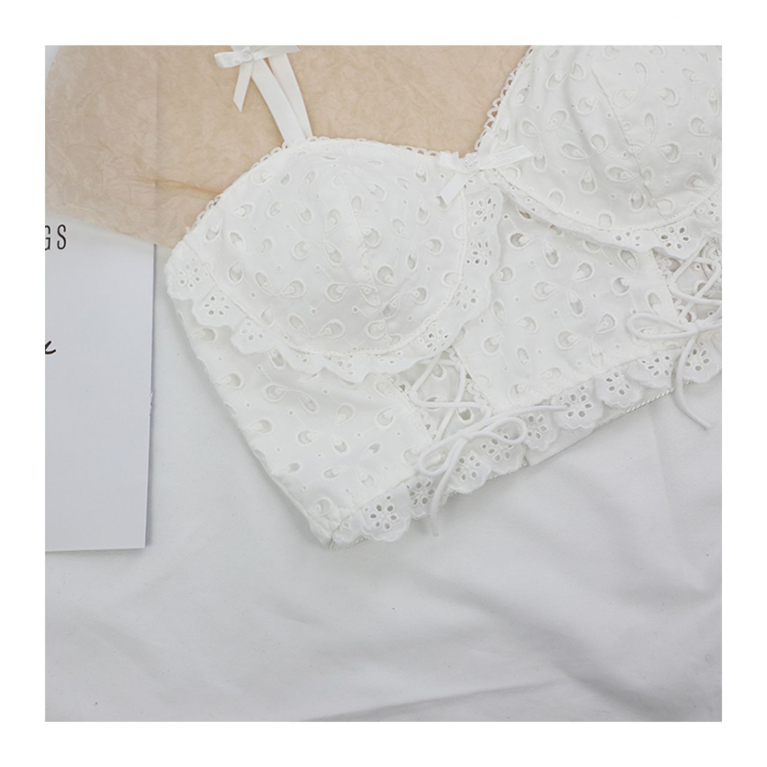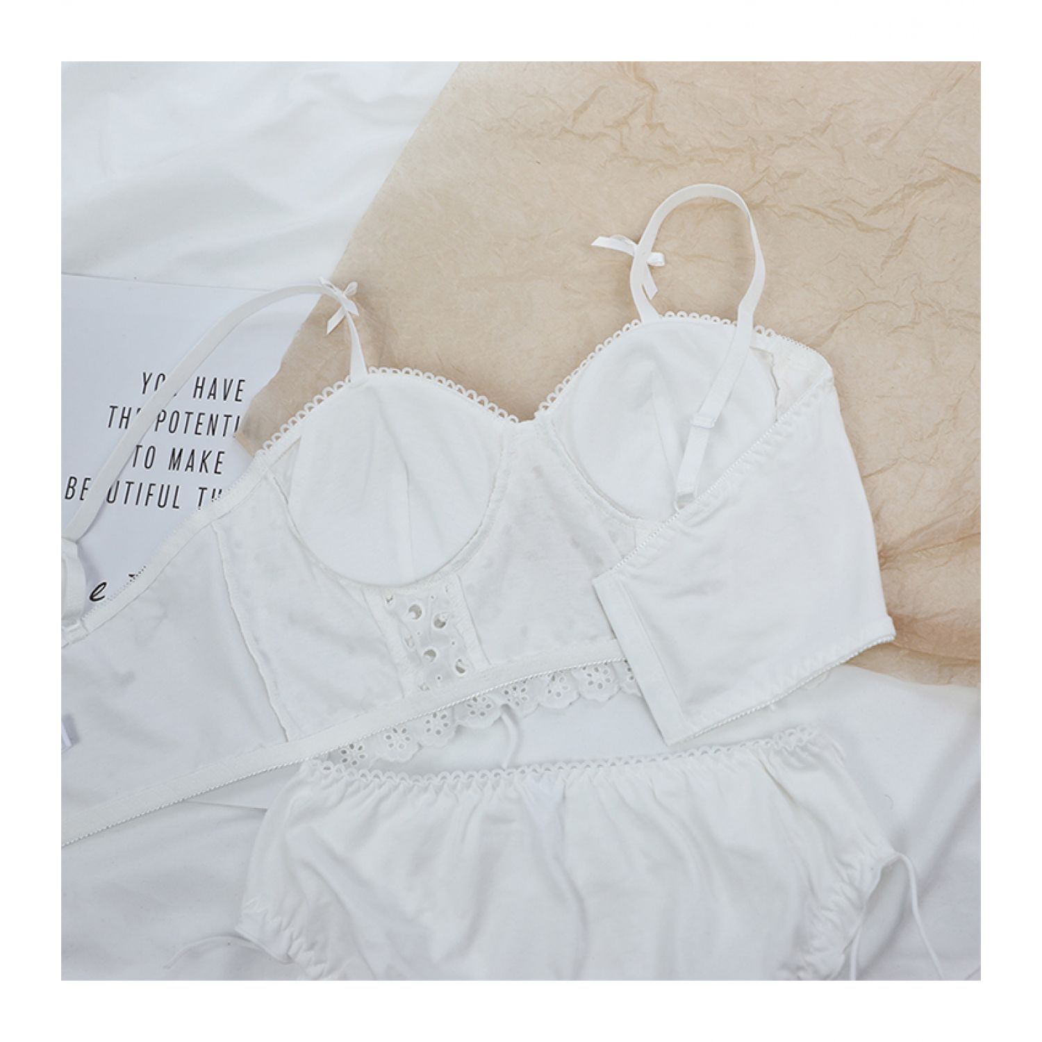 Comfort Without Rims Cute Girly Lace Cotton Bra Set White M