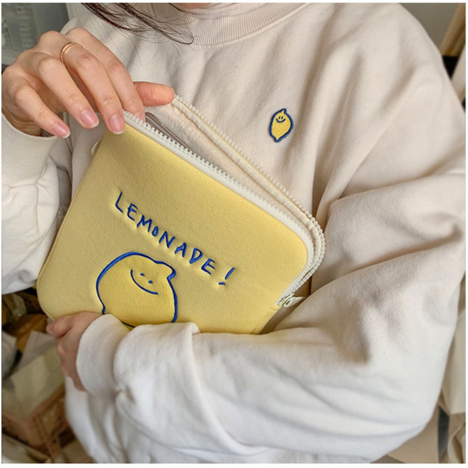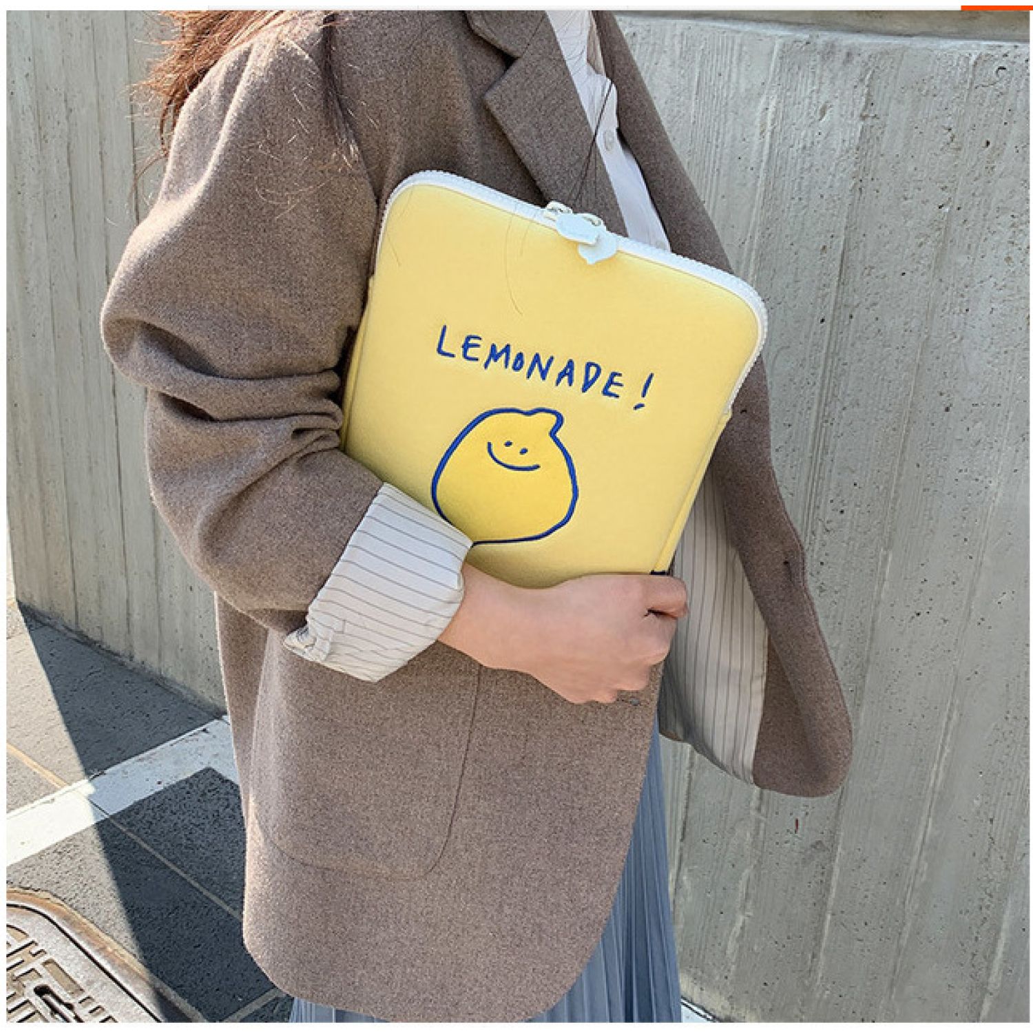 Compatible with Apple, 2020 Winter Korean Ins Niche Design Lemon Embroidery Letters IPad Tablet Laptop Bag Storage Bag 11inch