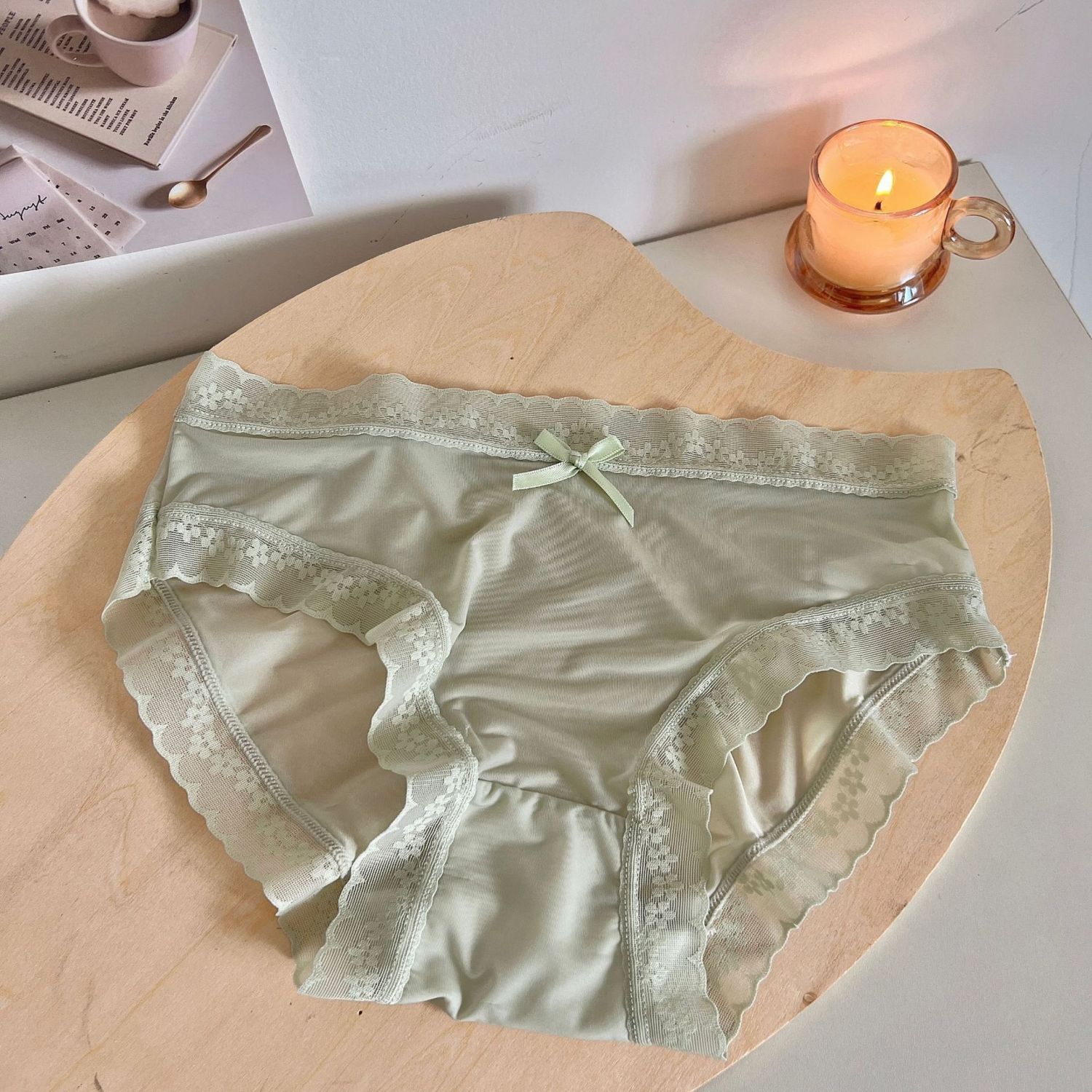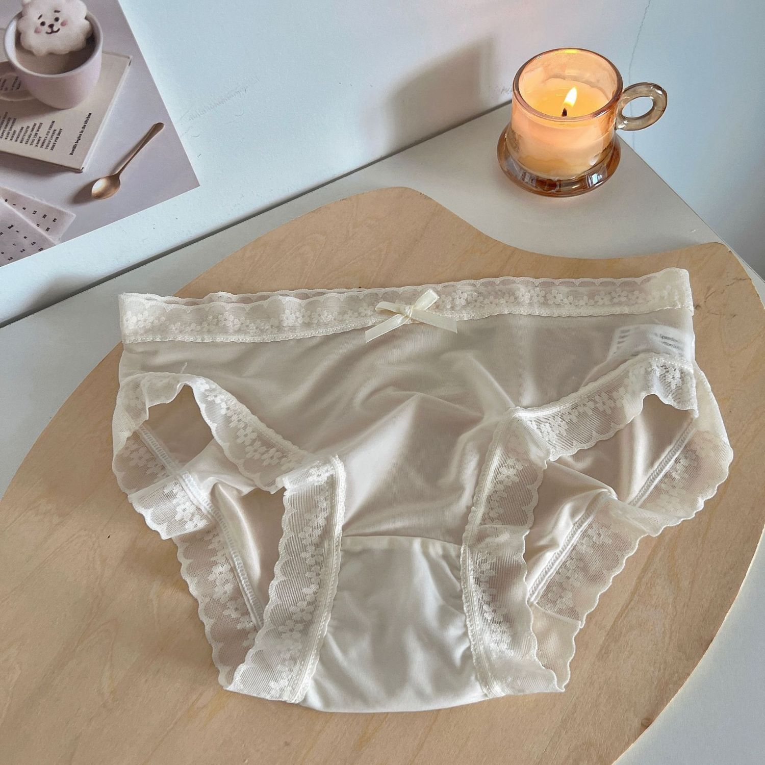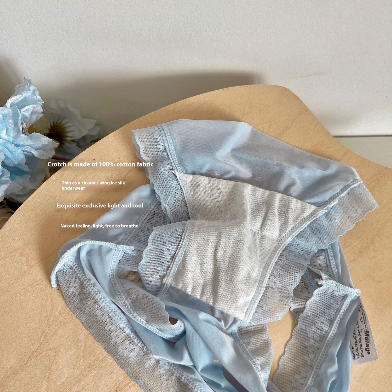 Cream Girl Japanese Quick-drying Ice Silk Underwear Thin Lace Edge Foam Blue L