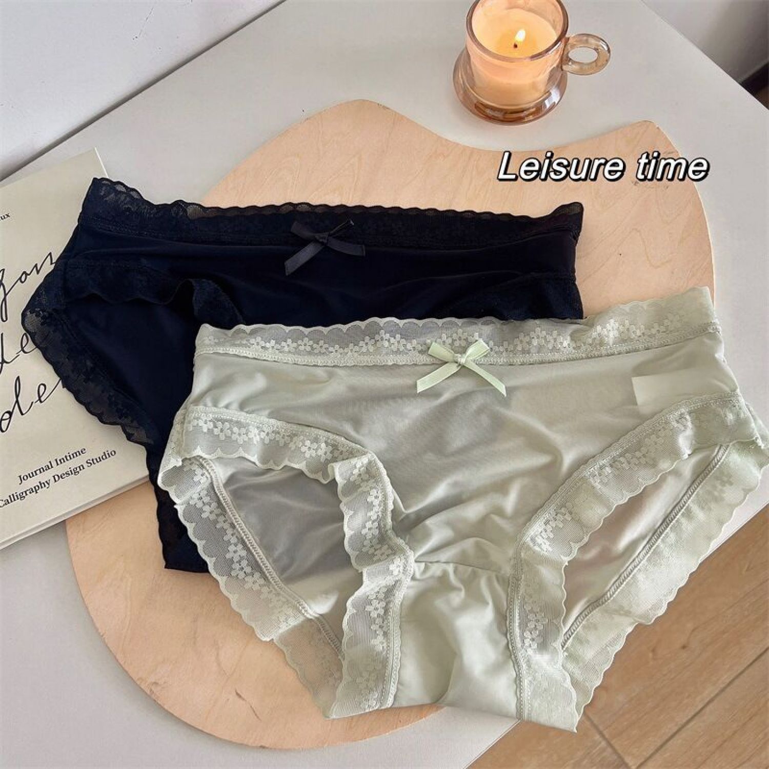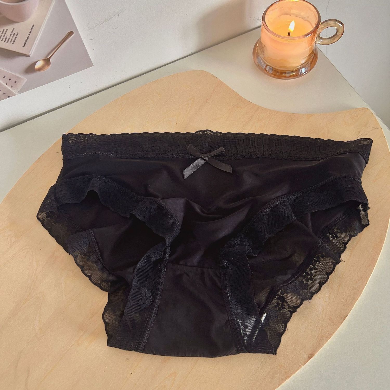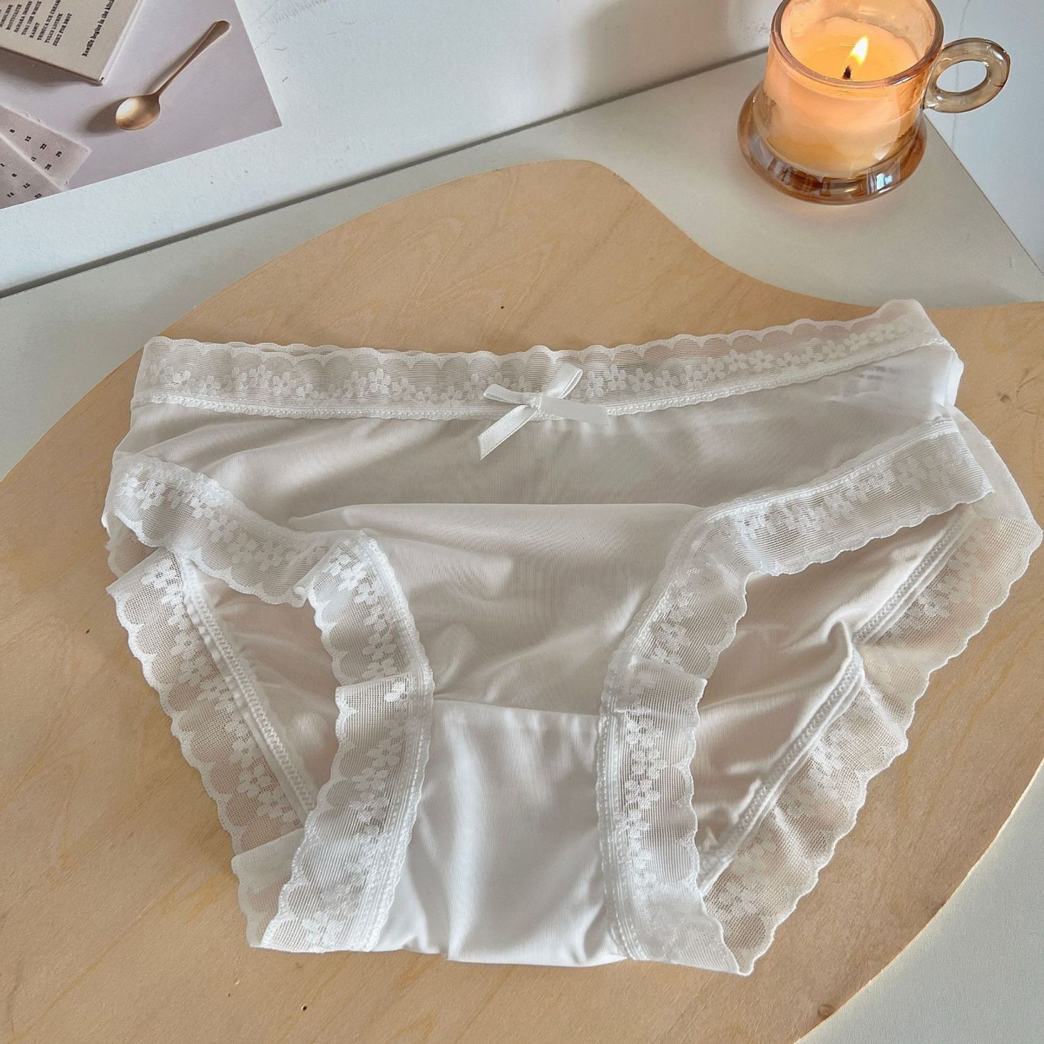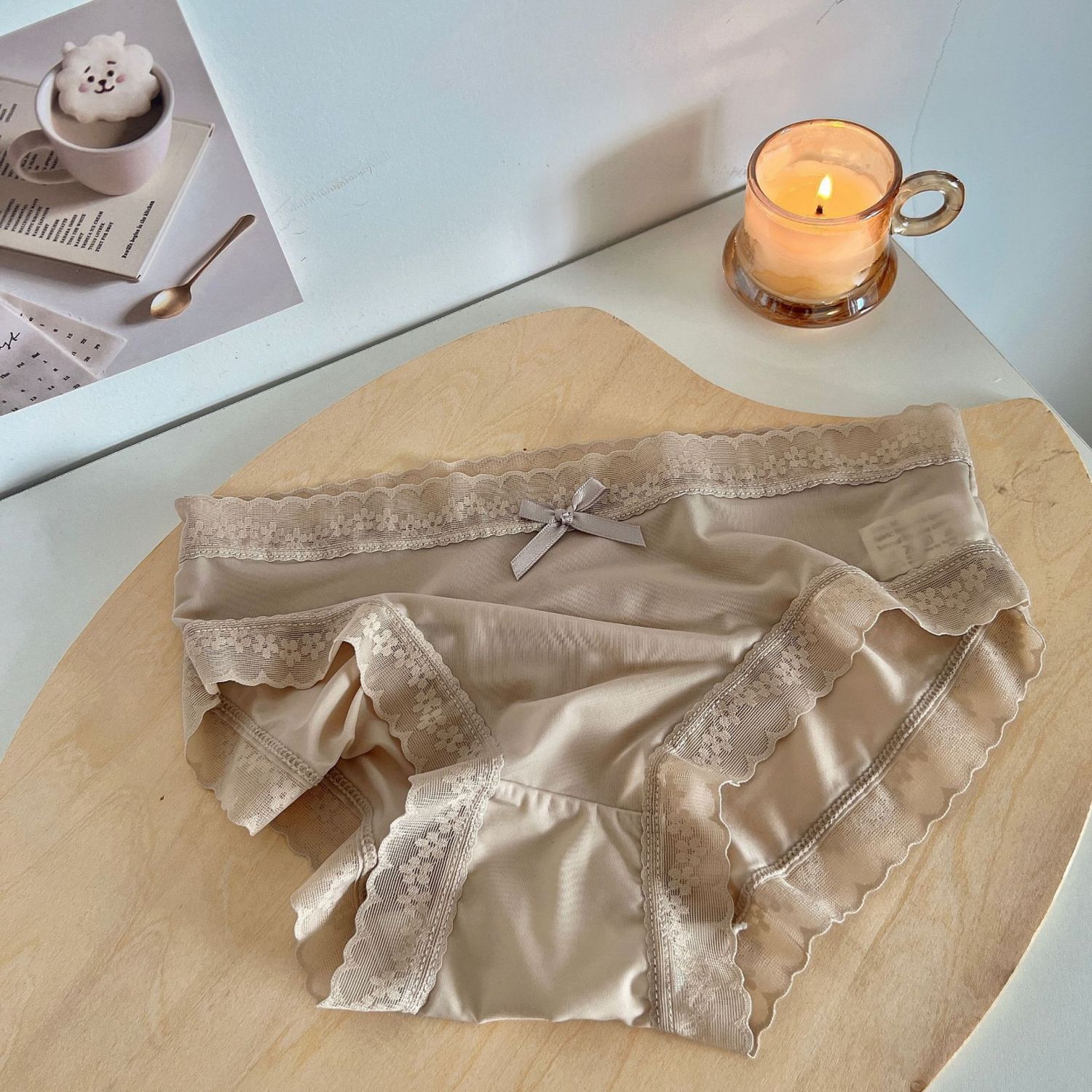 Cream Girl Japanese Quick-drying Ice Silk Underwear Thin Lace Edge Foam Blue L