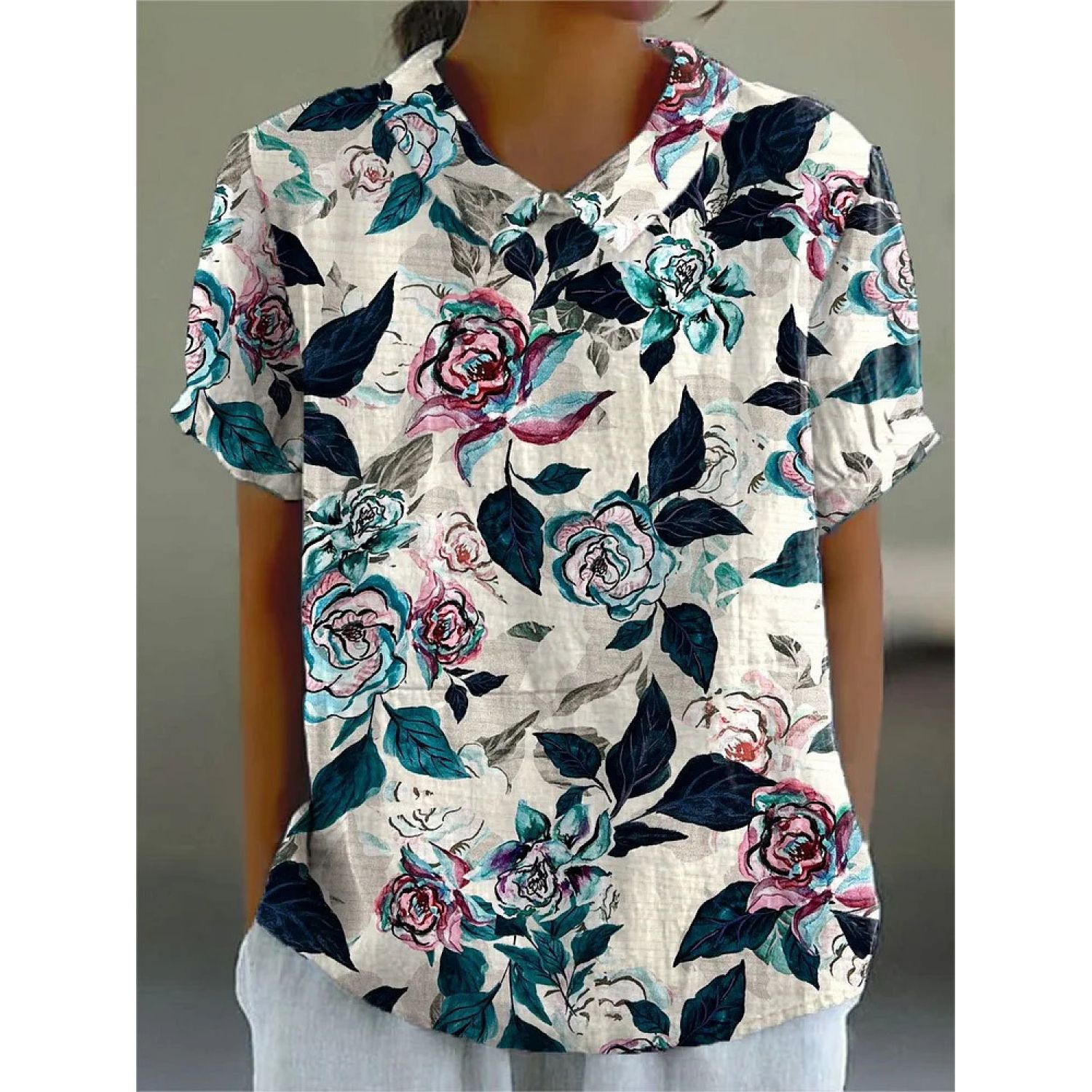 Creative Retro Floral Cute Style Short Sleeve T-shirt 1Style M