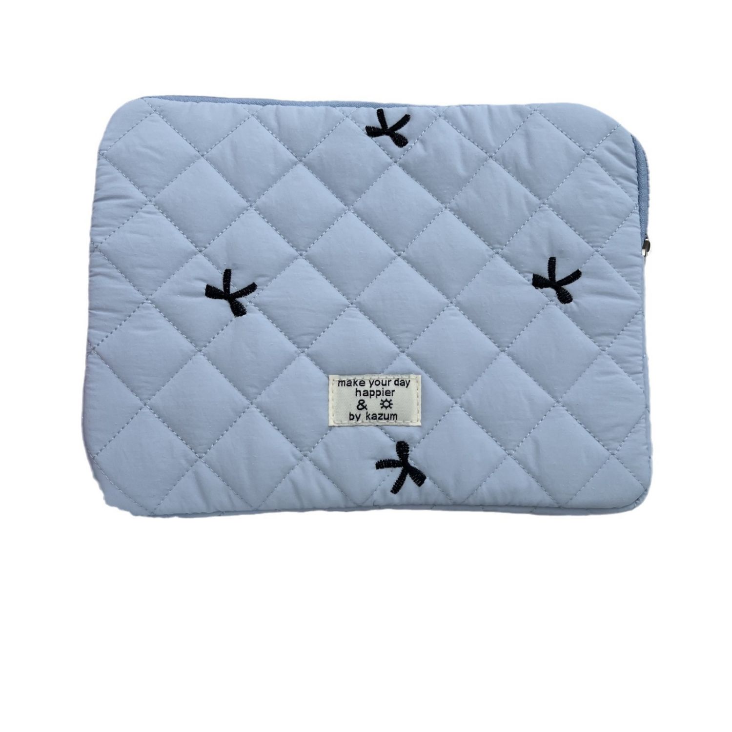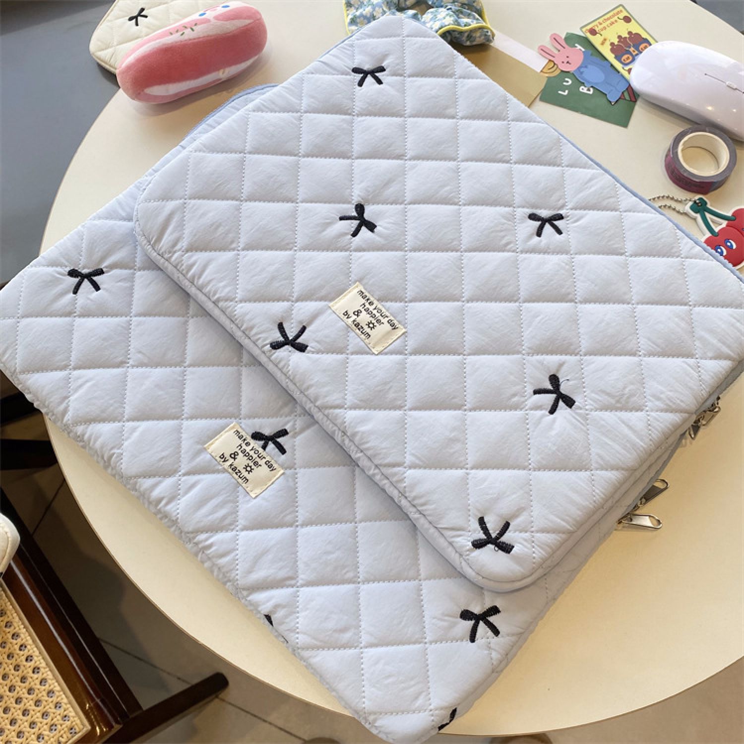 Cute Rhombus Embroidered Bow Notebook Storage Bag White 11 Inches