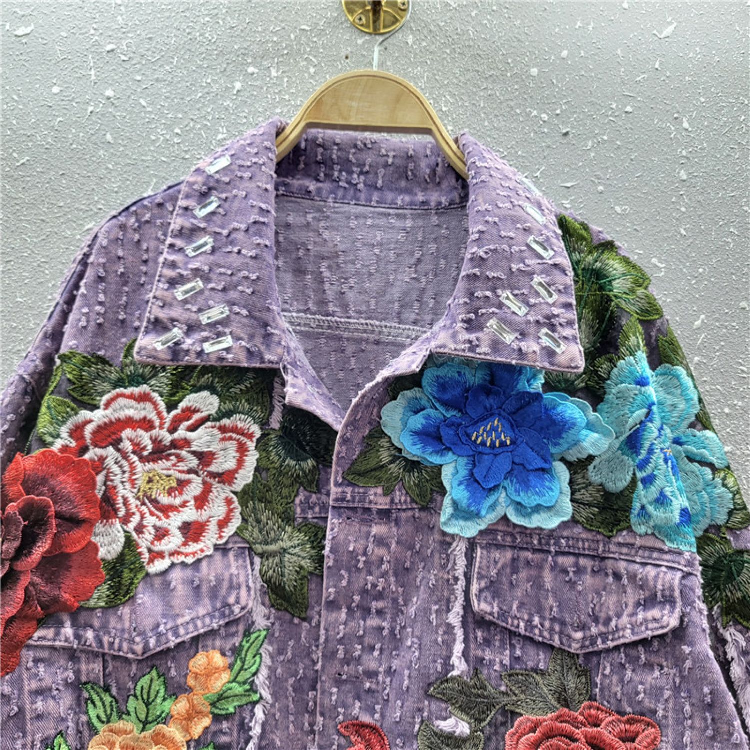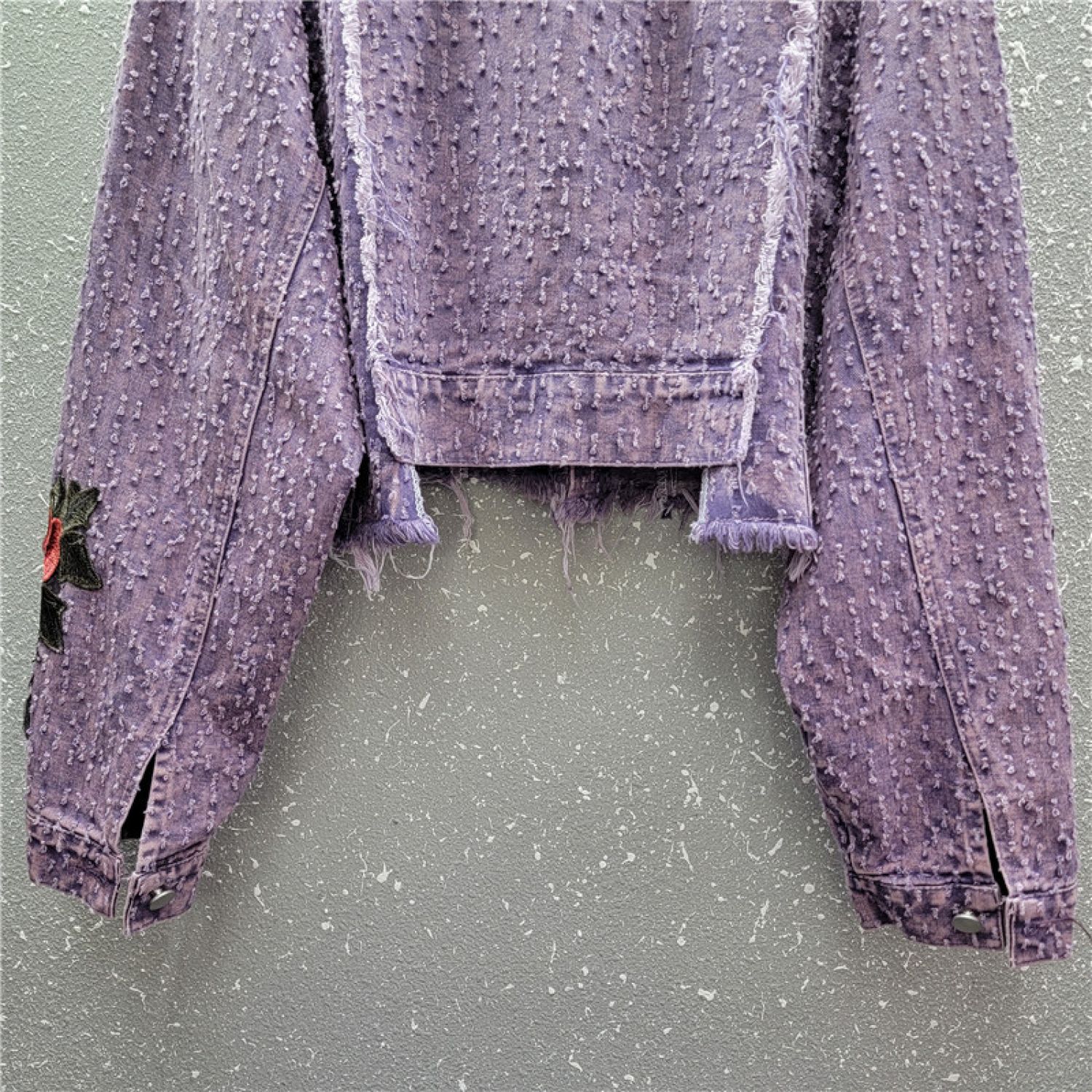 Design Sense Heavy Industry Three-dimensional Flower Short Frayed Hem Casual Denim Coat Purple Free Size