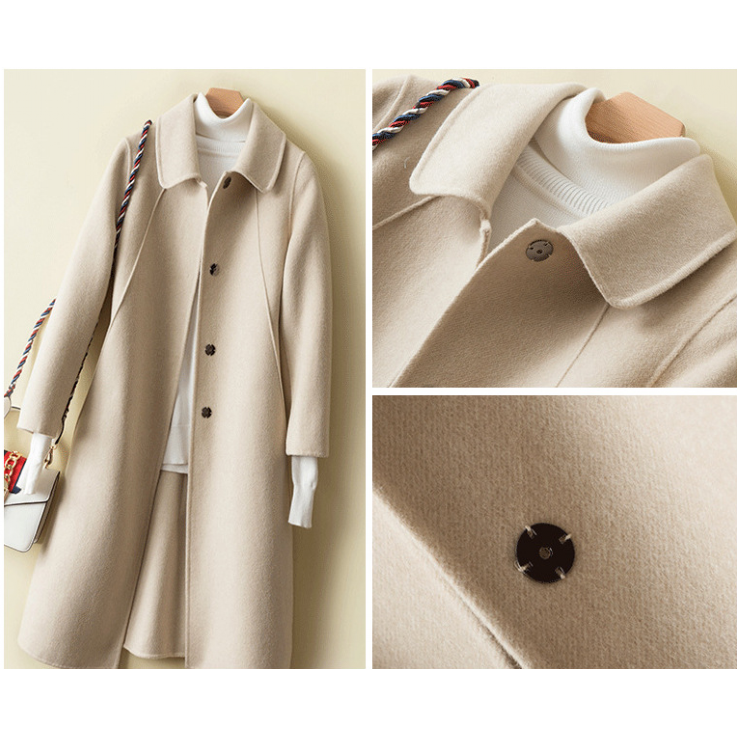 Color: pink, red, black, beige, camel, haze blue