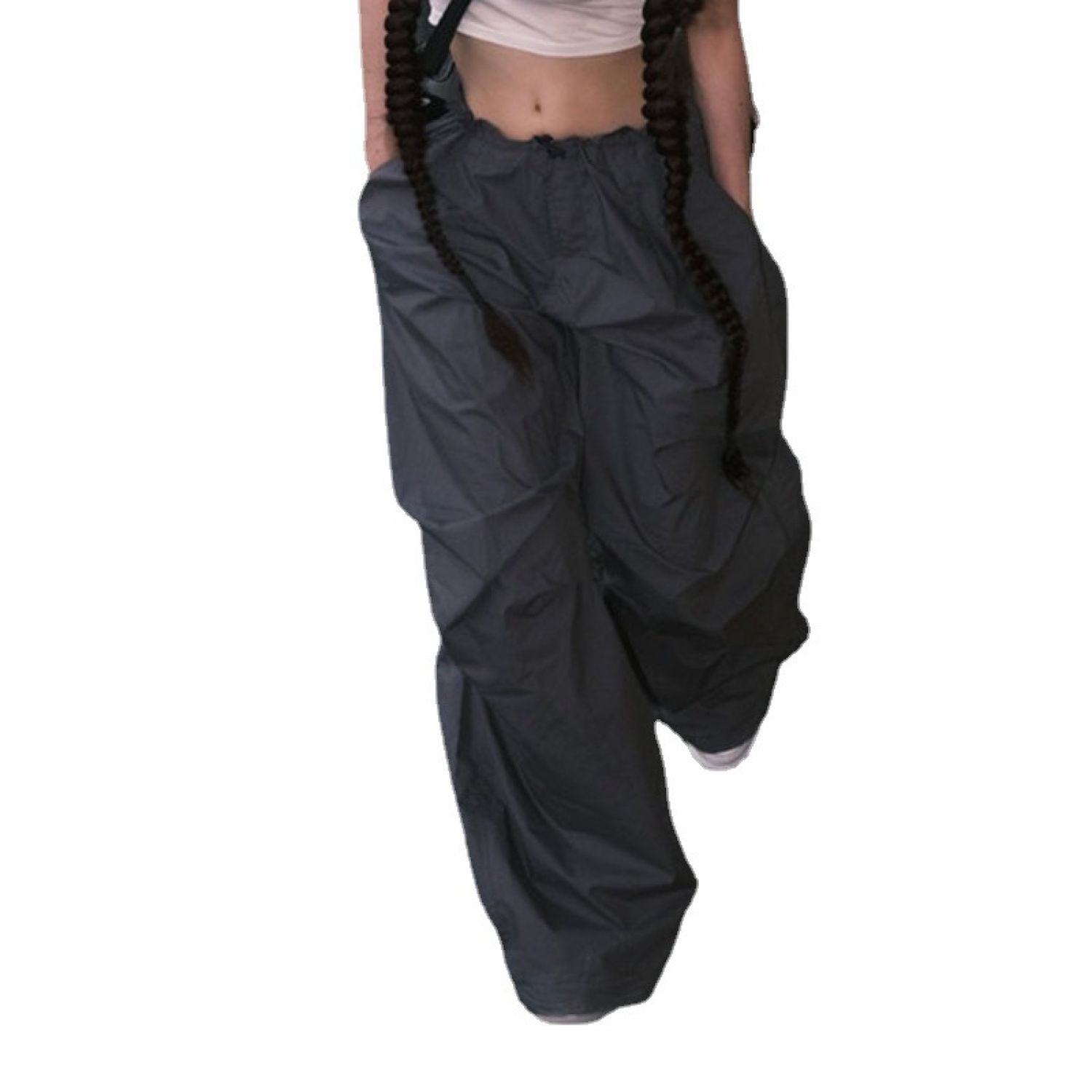 Product information: Color: Gray Elasticity: inelastic Main fabric composition: Polyester Waist type: high waist Size: S,M,L Pants type: loose type Popular elements: drawstring
