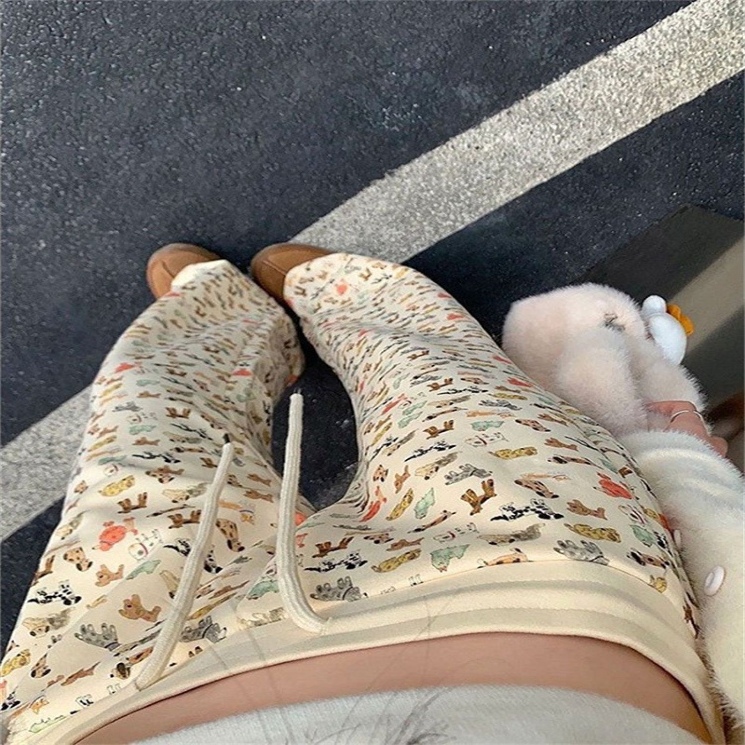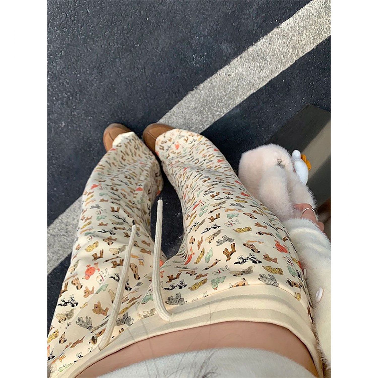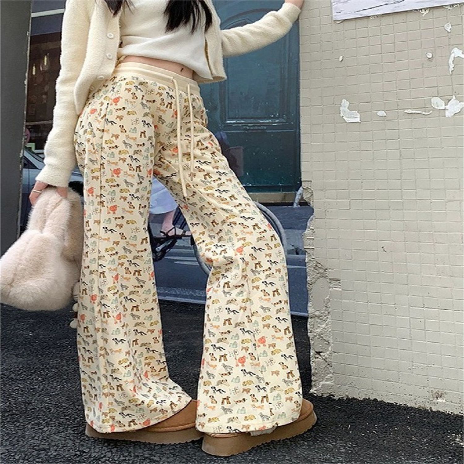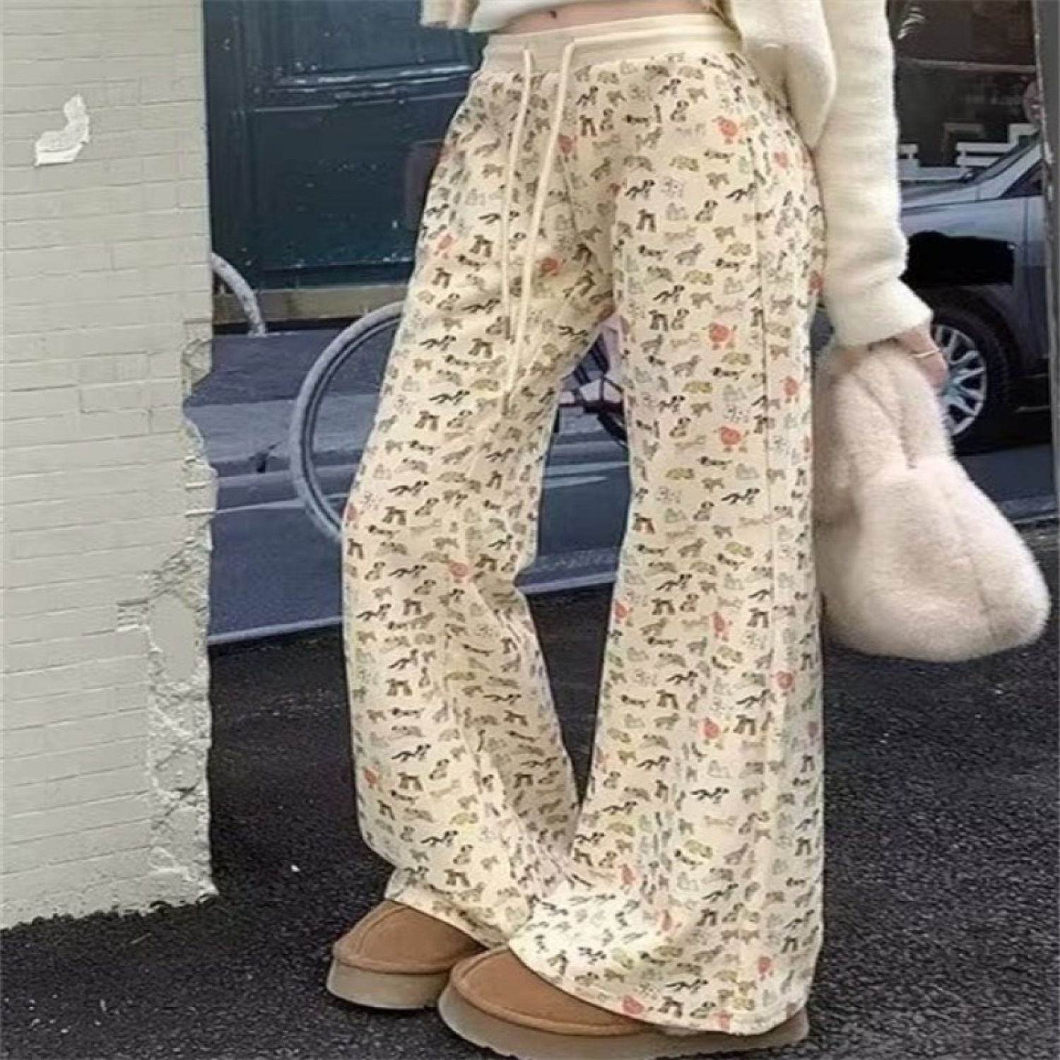 Drooping Straight Loose Mop Pants Apricot M