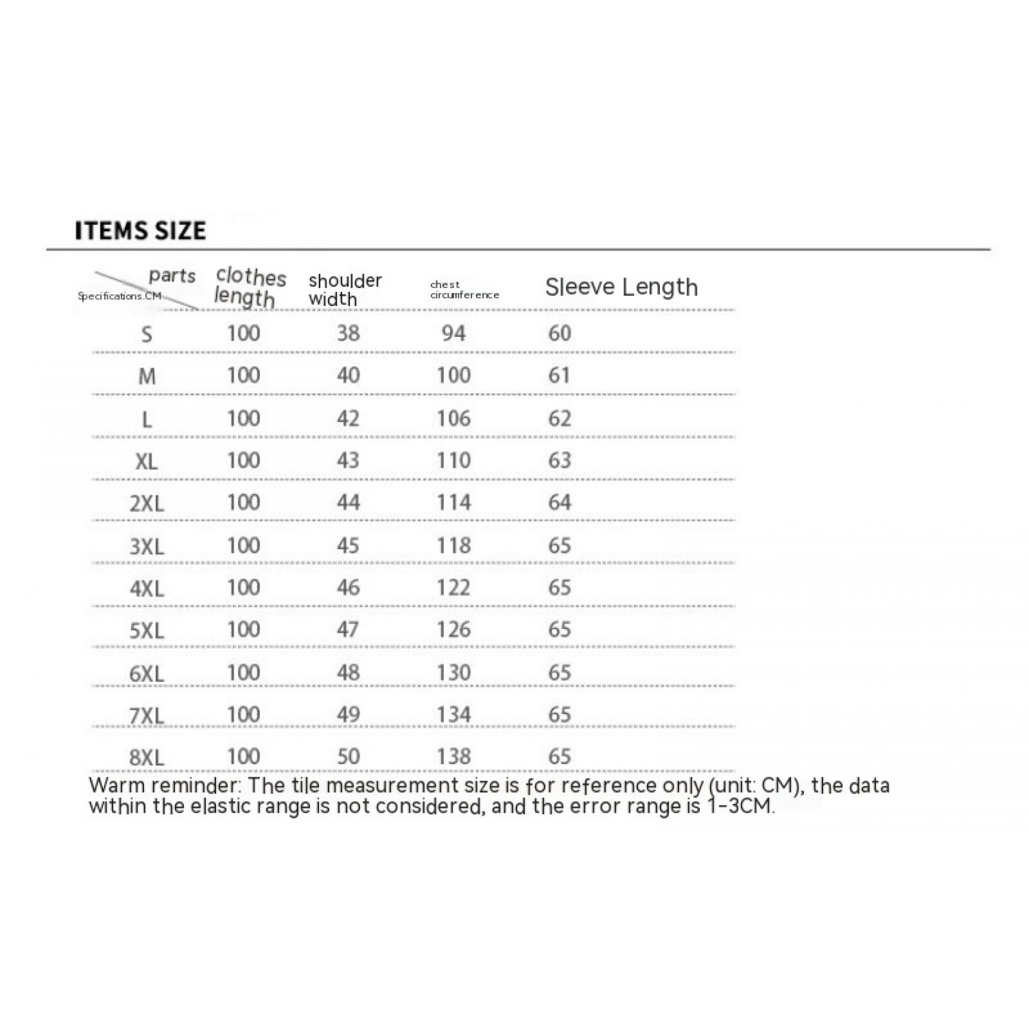 Size: S,M,L,XL,XXL,XXL,XXXXL,5XL,6XL,7XL,8XL