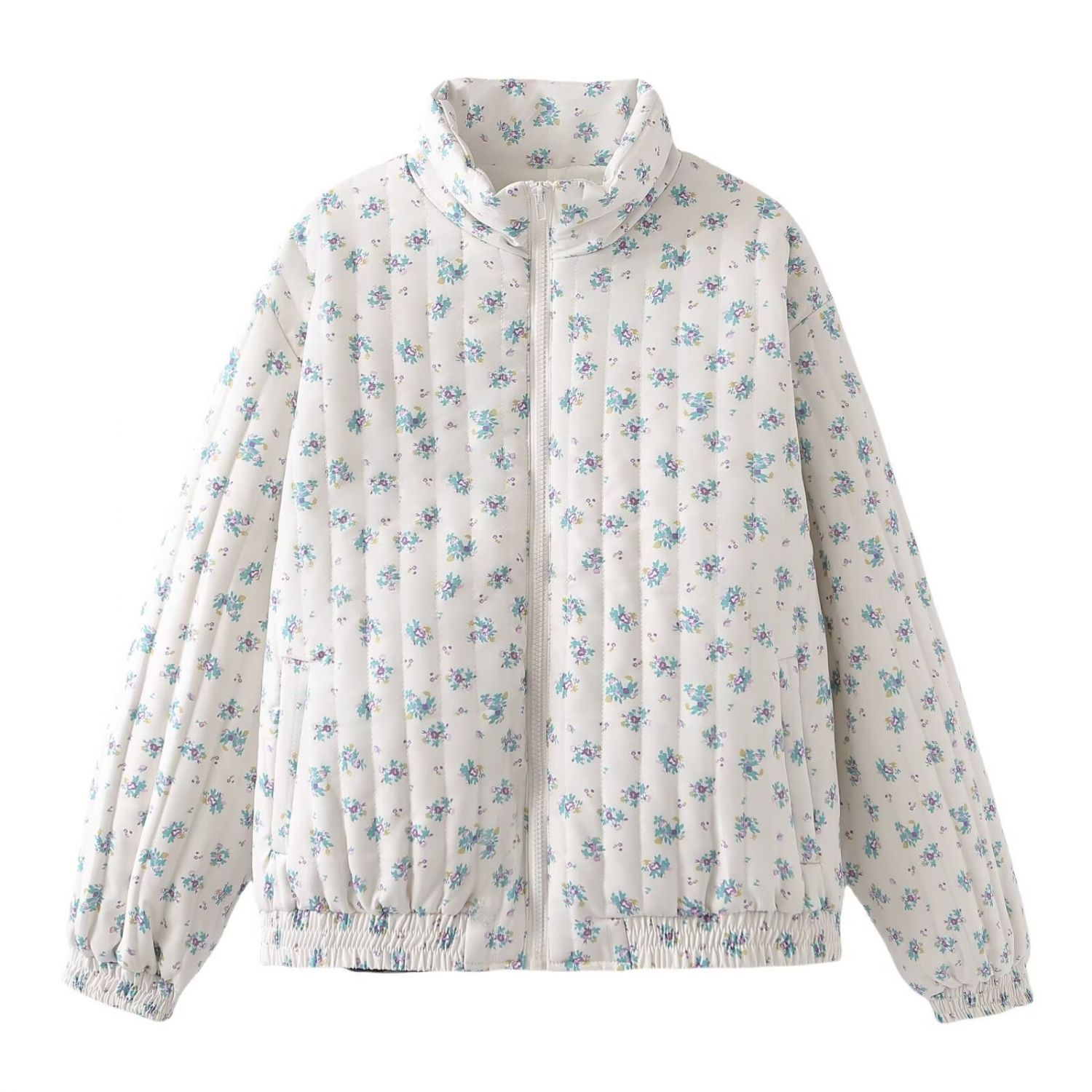 Fashion Floral Print Loose Cotton Coat Coat Color XS