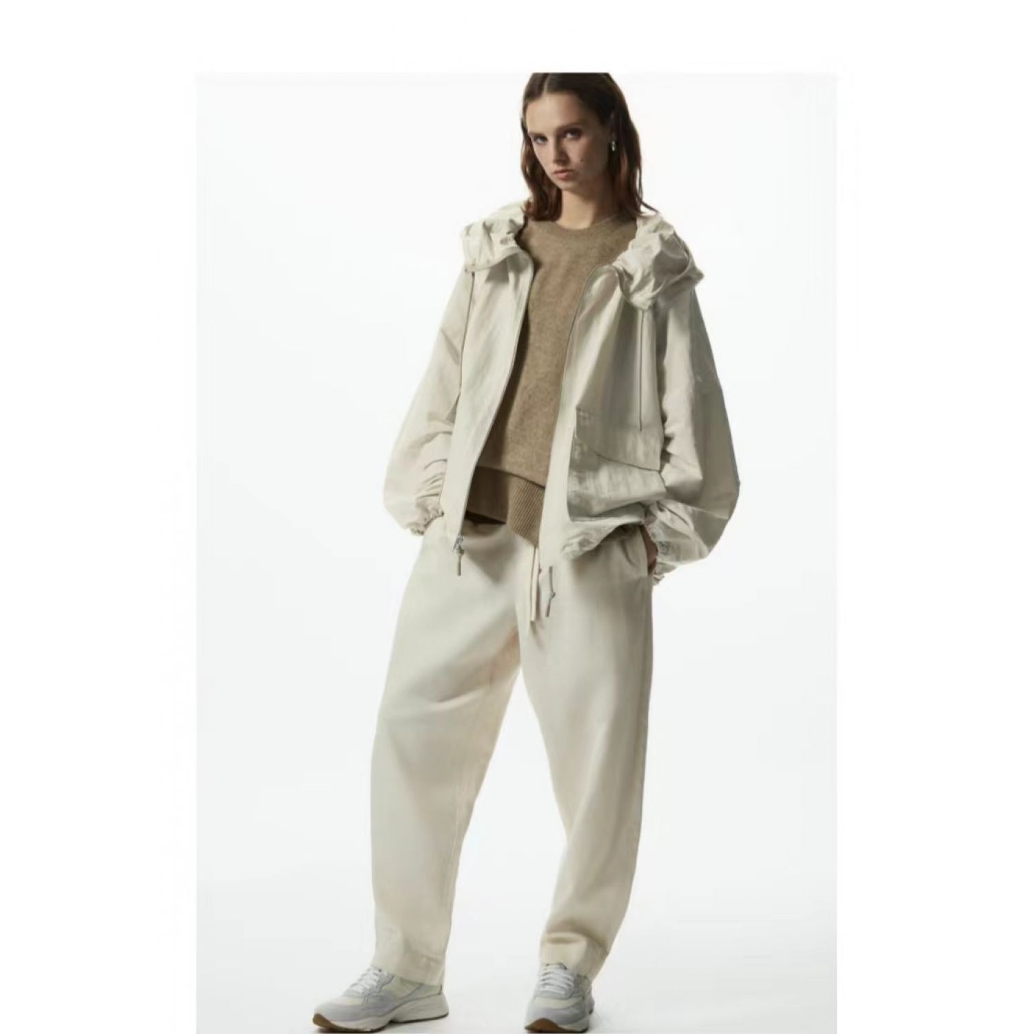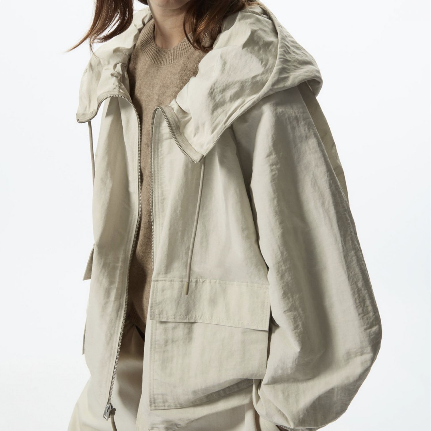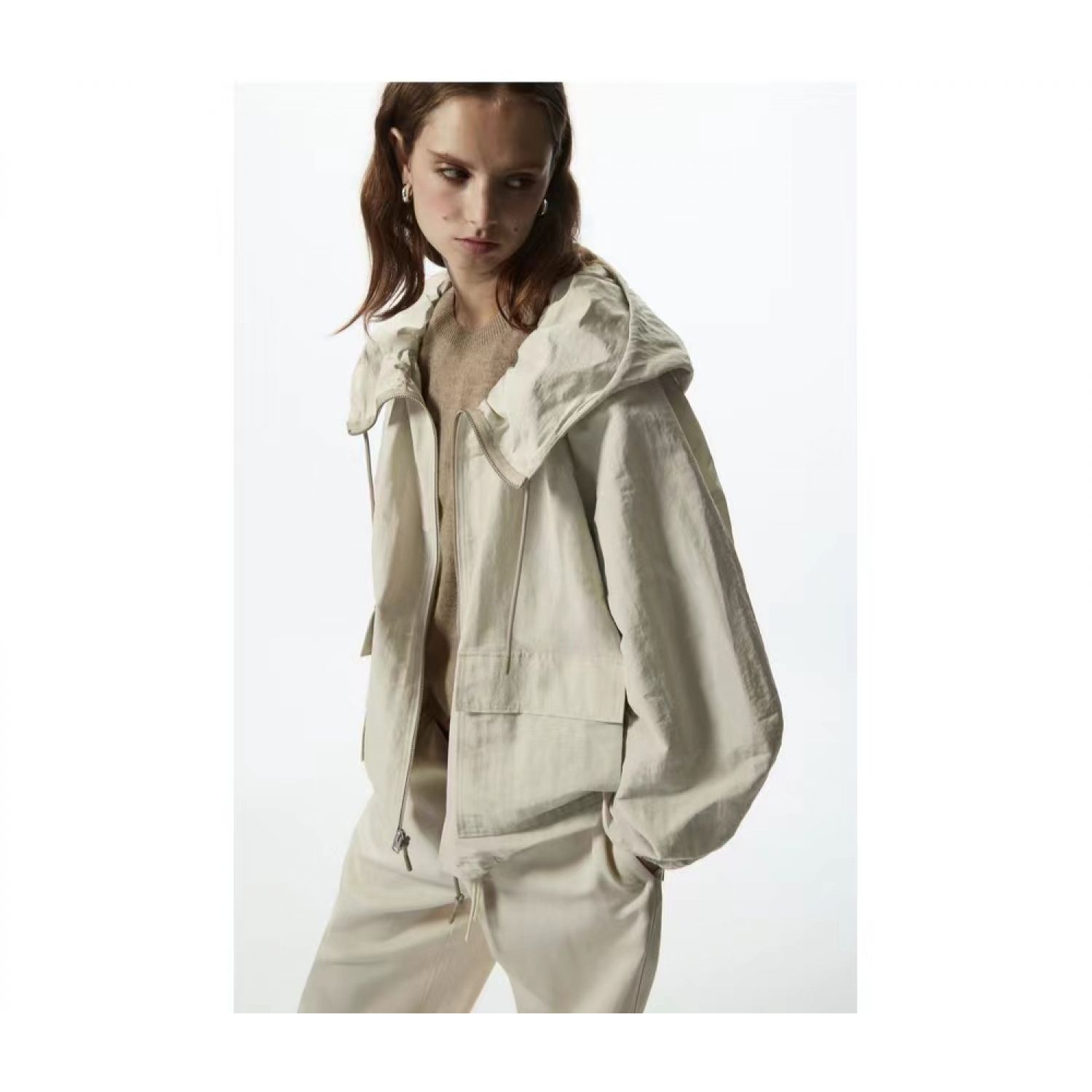 Features: Loose fit, zippered