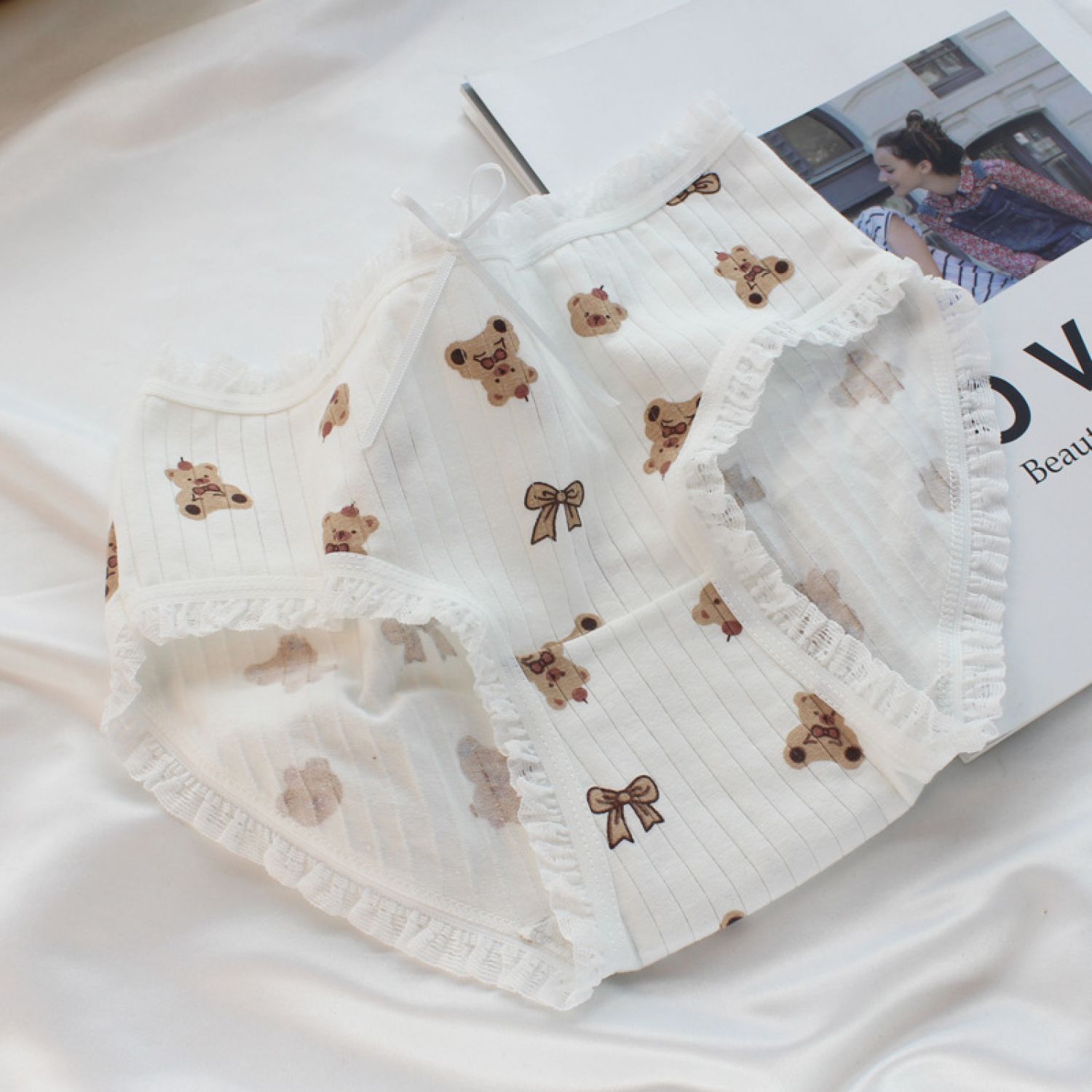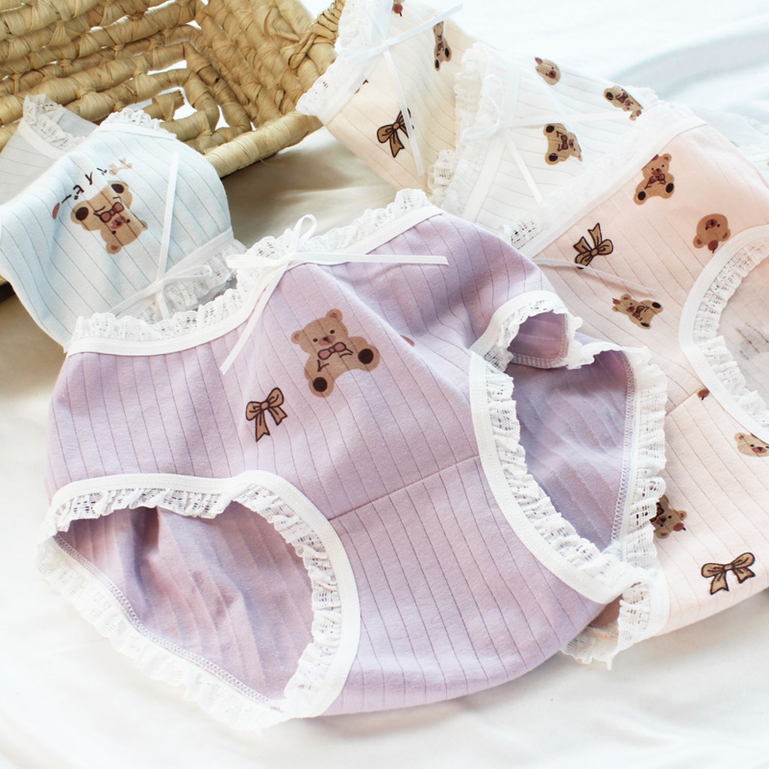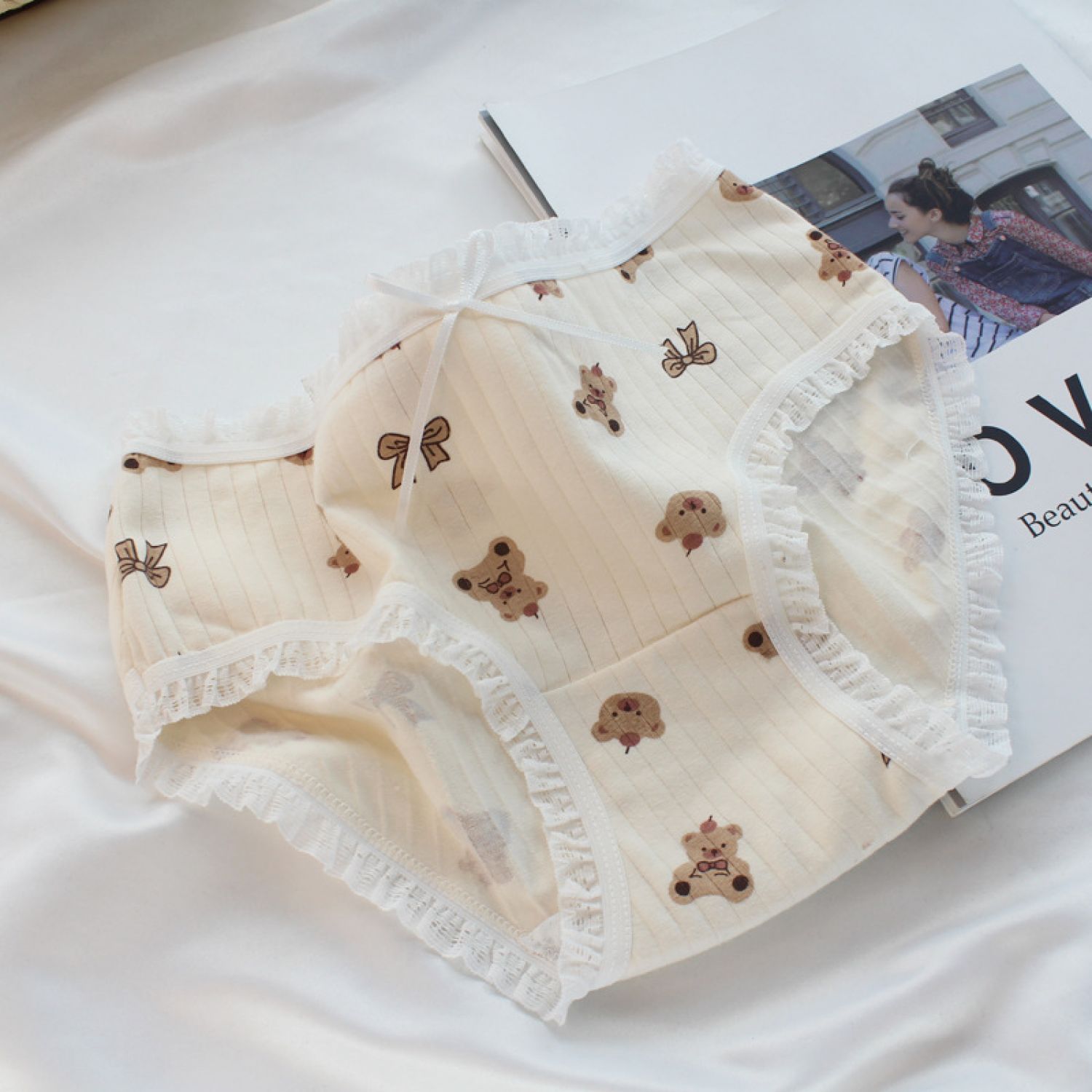 Female Soft Cute Bear Boy Comfortable Sweet Triangle Shorts Skin color L