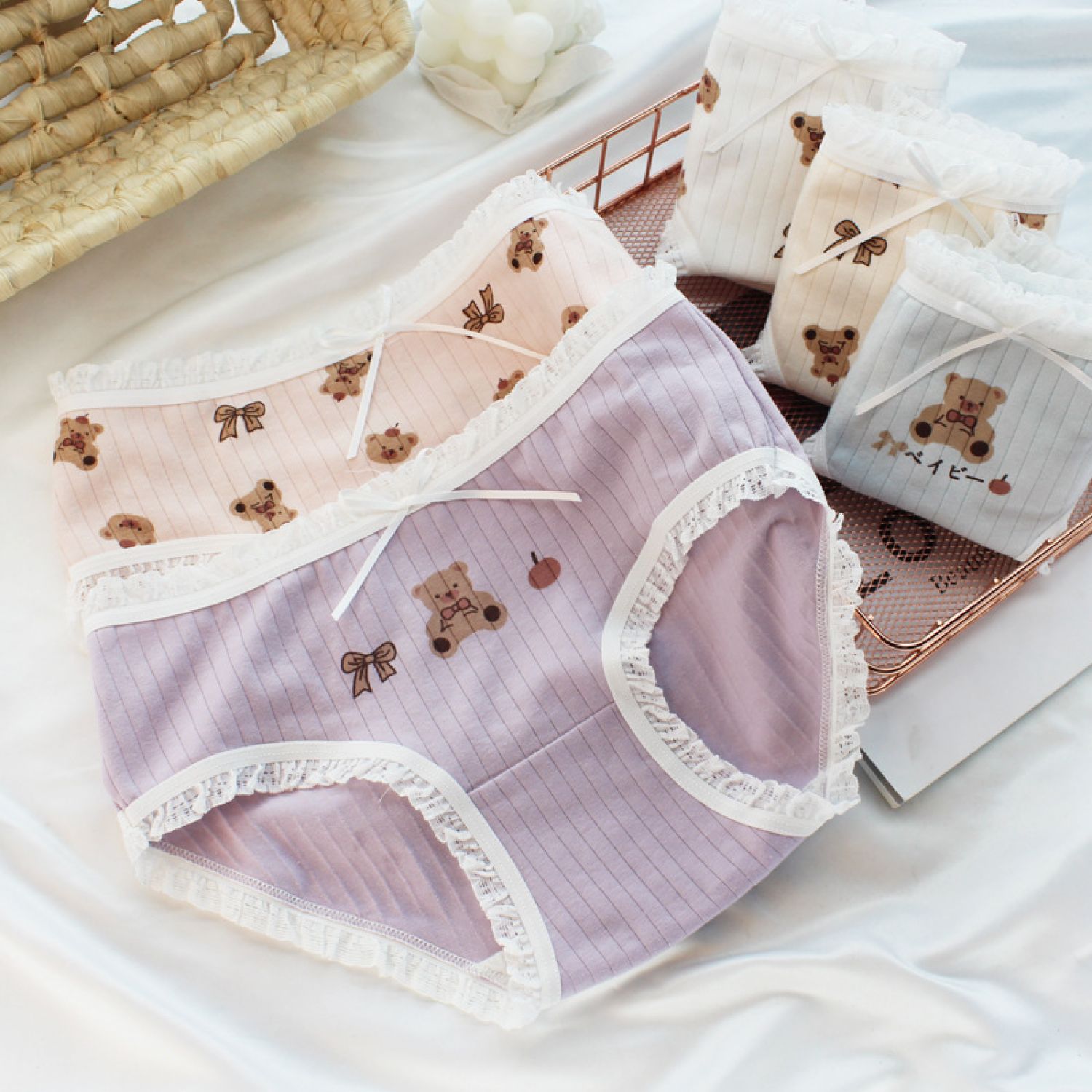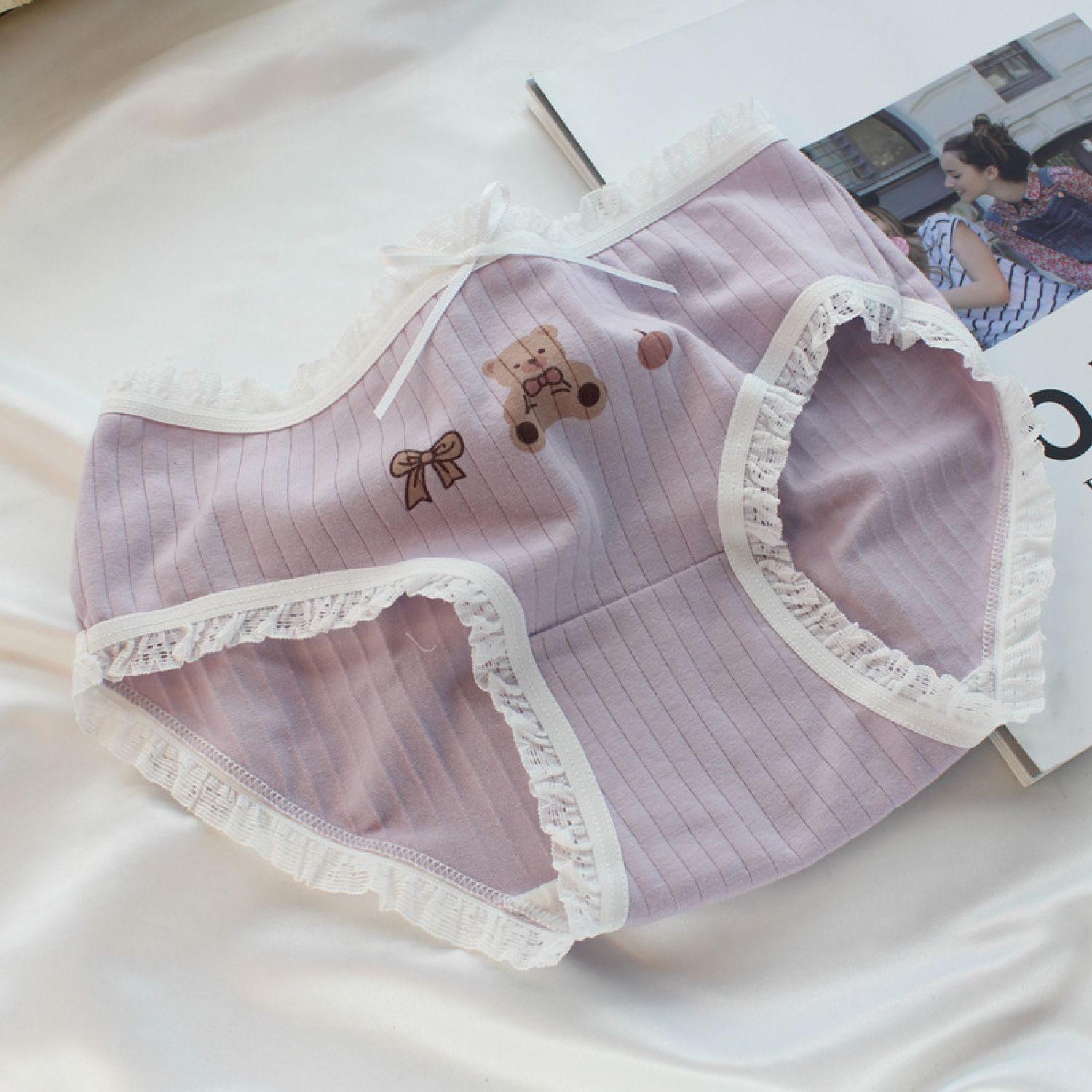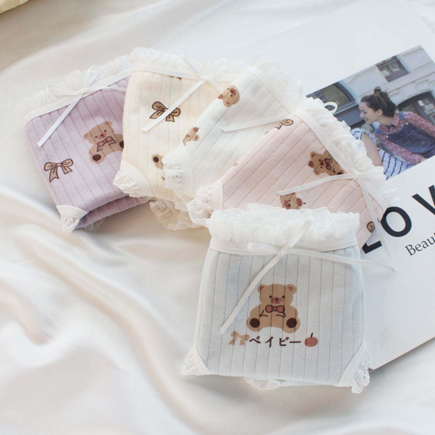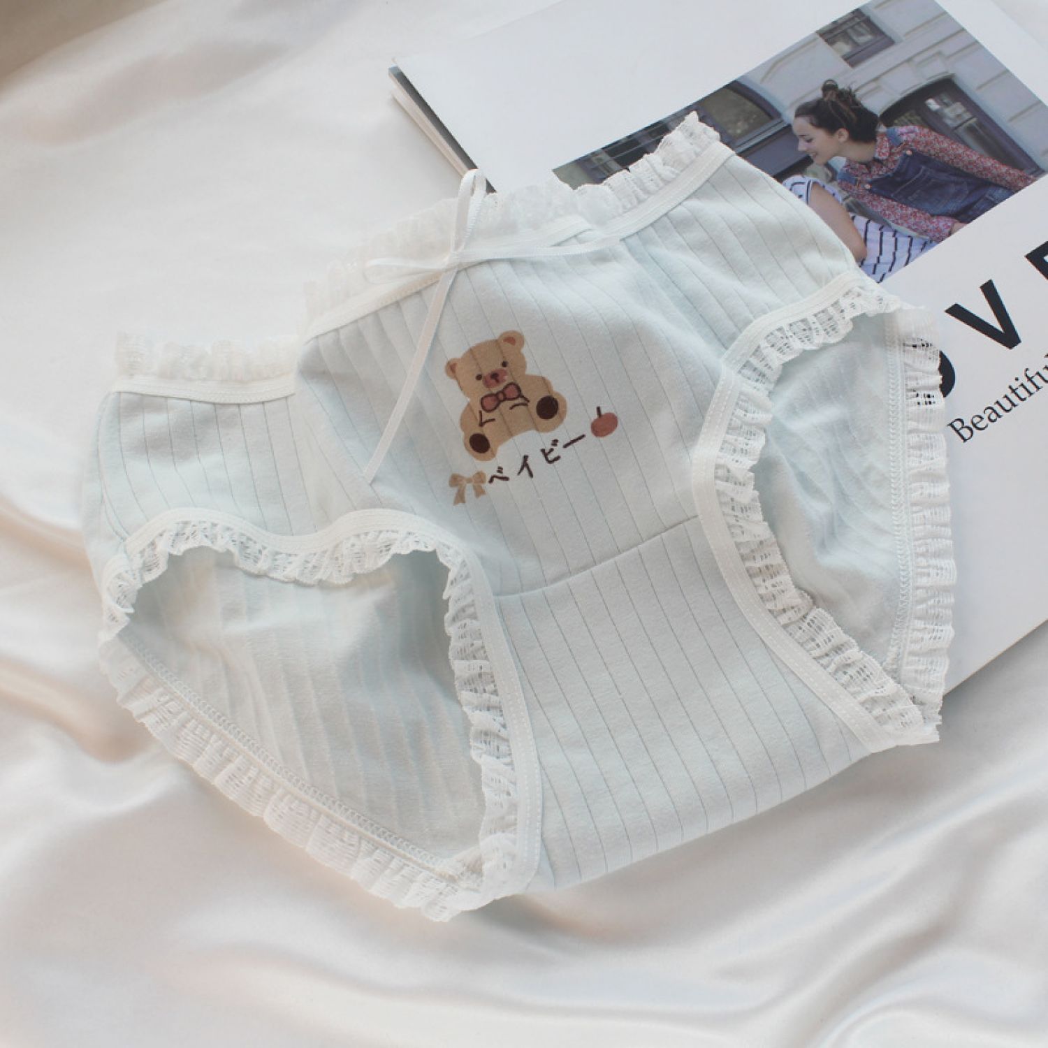 Female Soft Cute Bear Boy Comfortable Sweet Triangle Shorts Skin color L