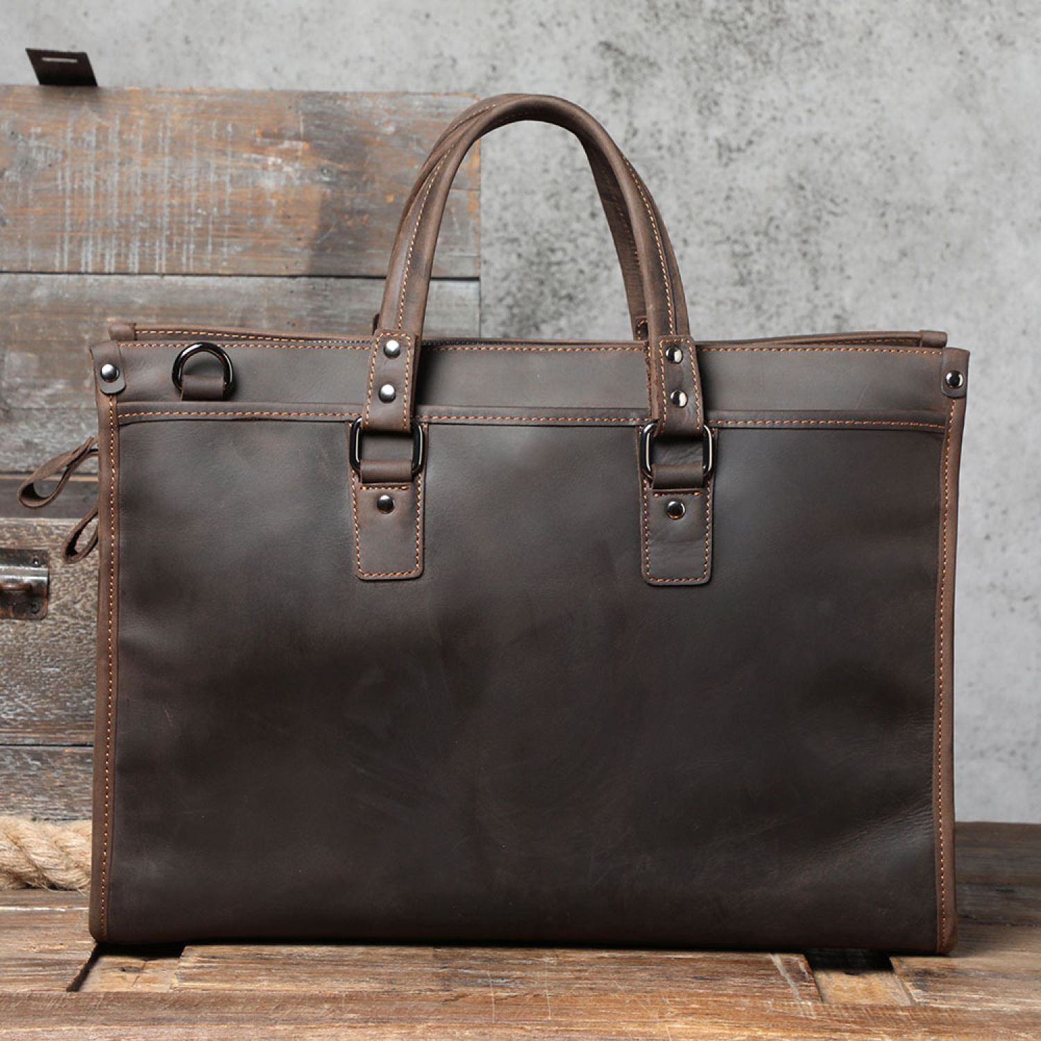 First Layer Cowhide Men's Business Large Capacity Genuine Leather Laptop Bag Coffee