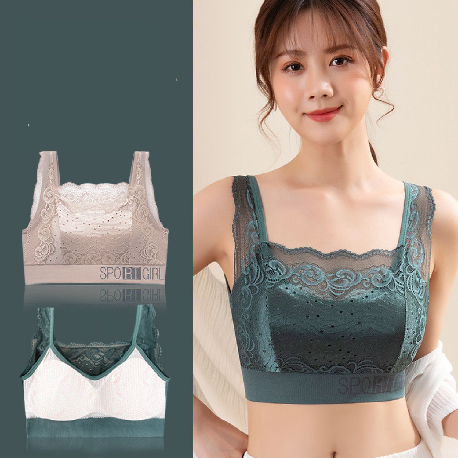 French Style Push-up Beauty Back Lace Chest Wrap Vest Black L