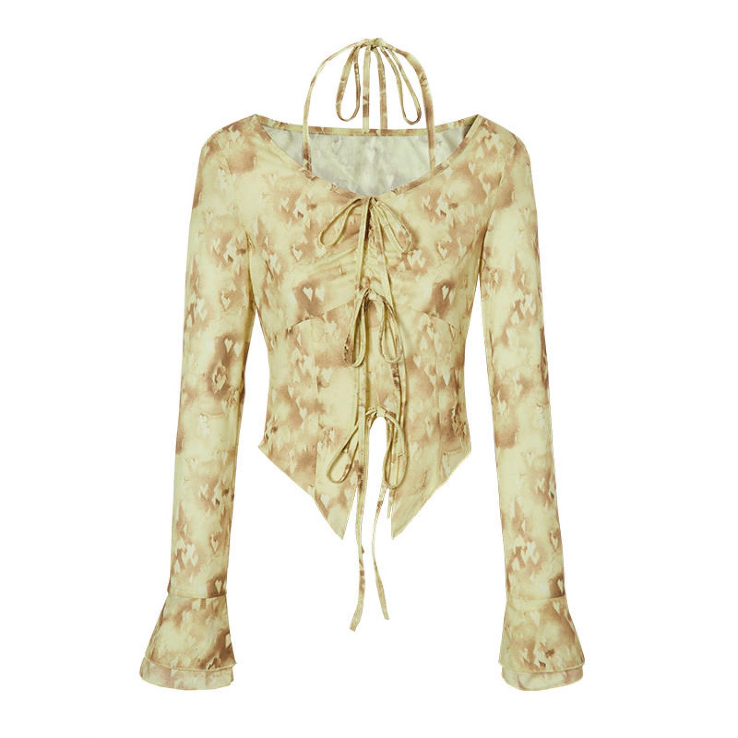 Full Printed Bell Sleeve Light Hot Girl Shirt Lemon Candy Yellow S