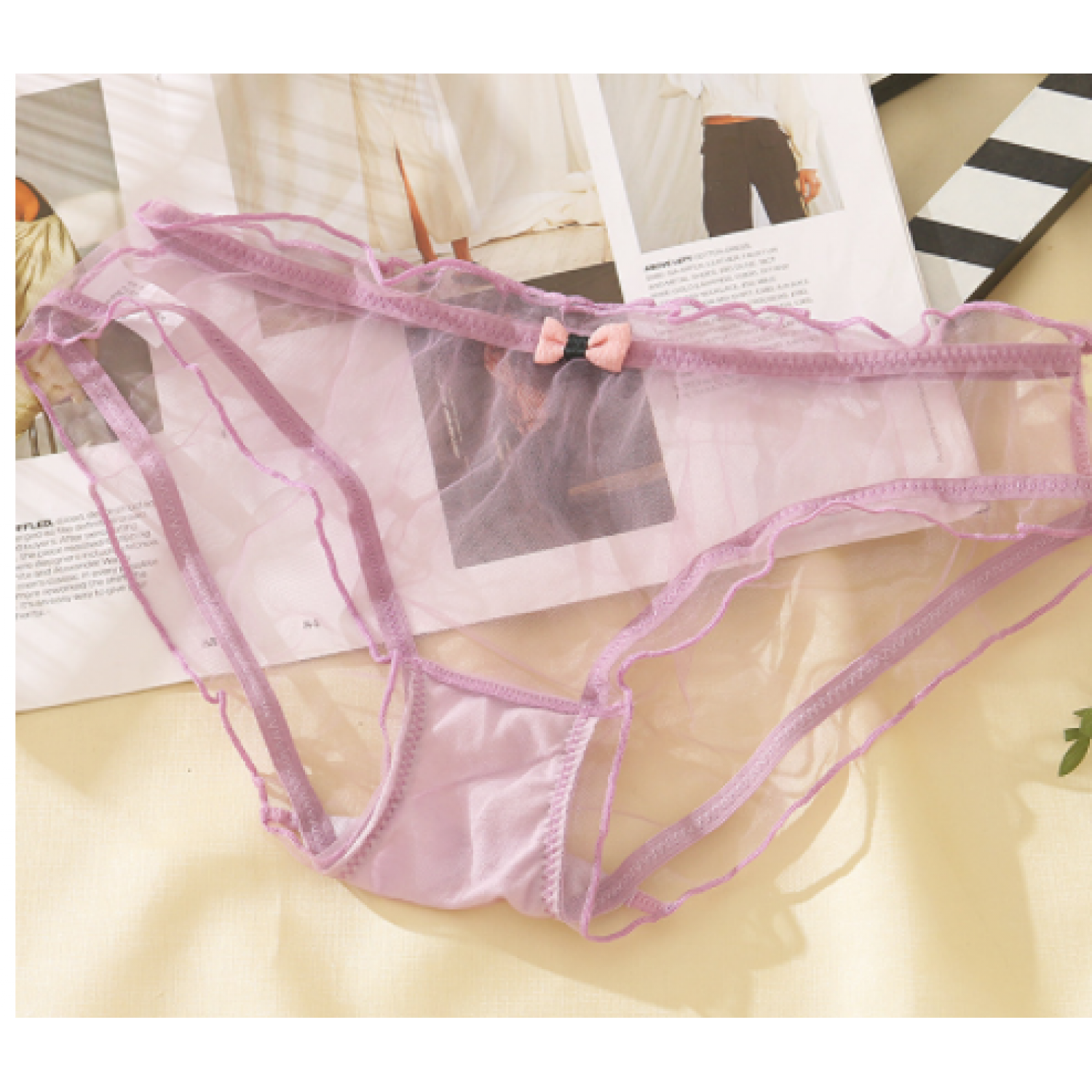 Full Transparent Bag Hip Low Waist Solid Color Mesh Girl Underwear White One size