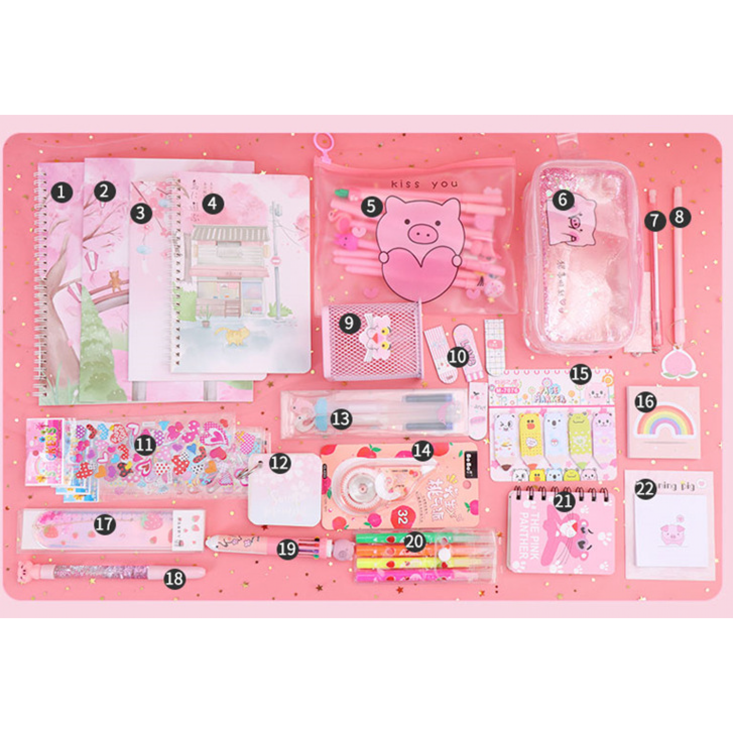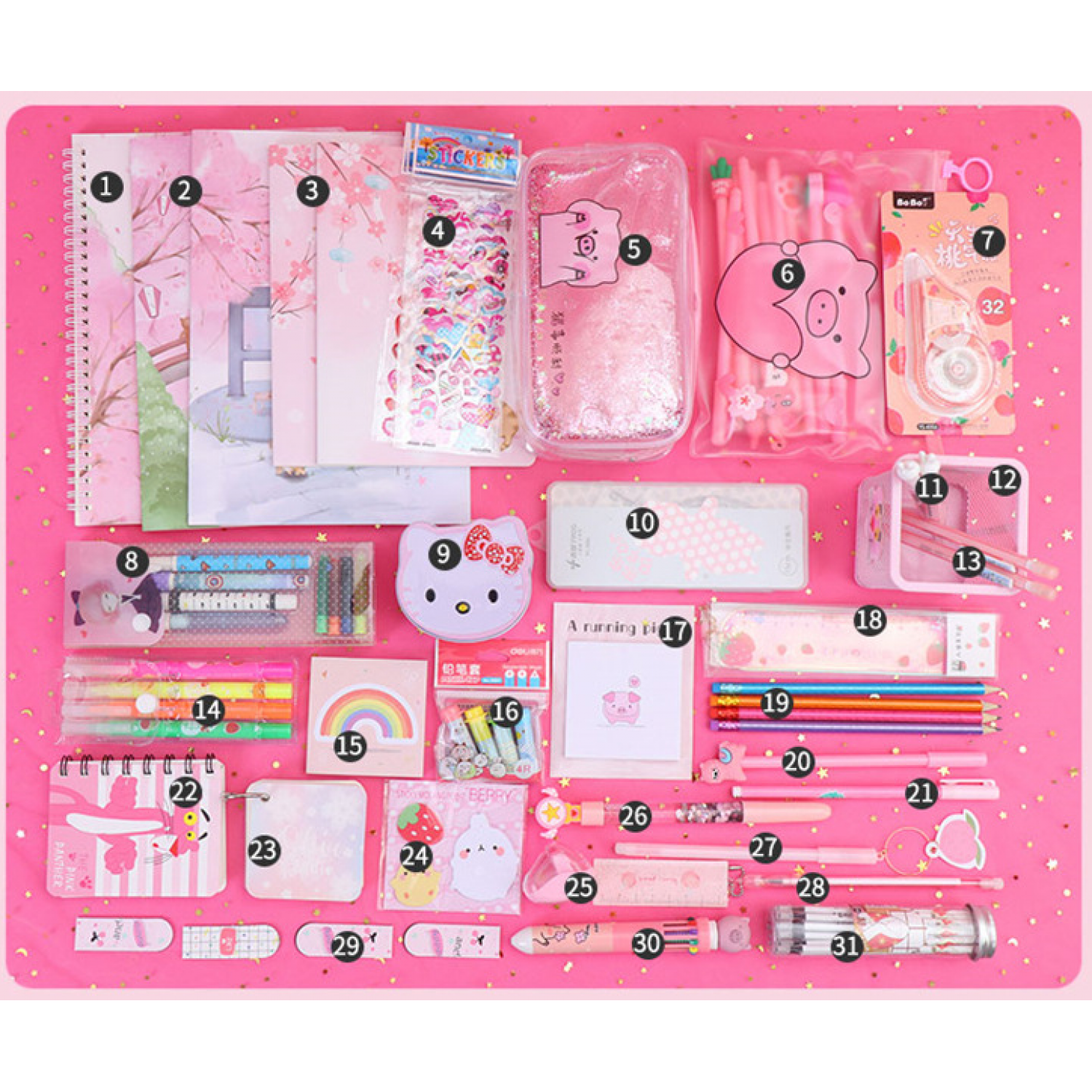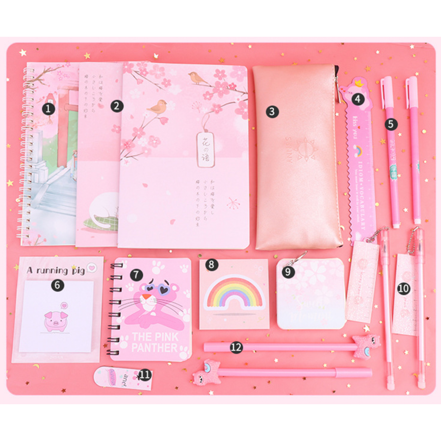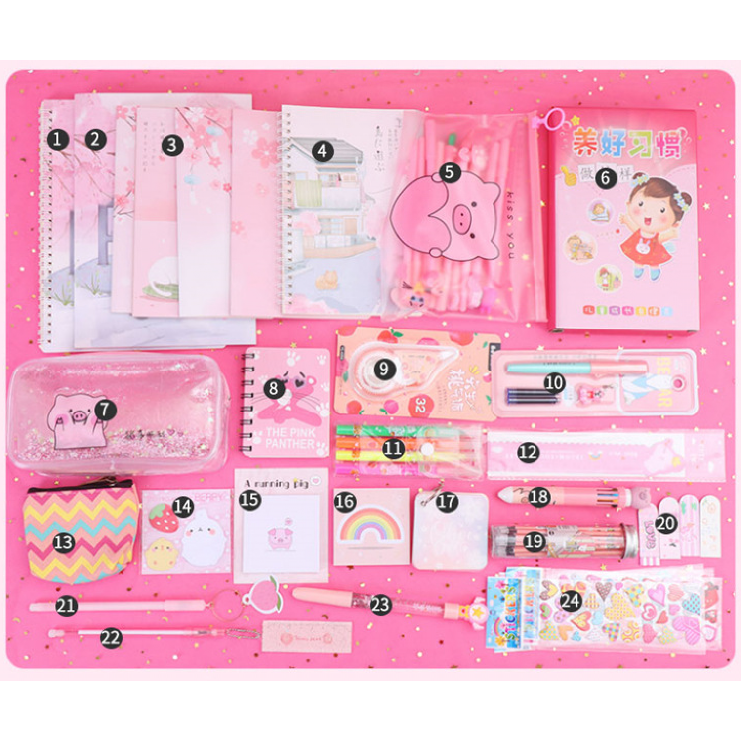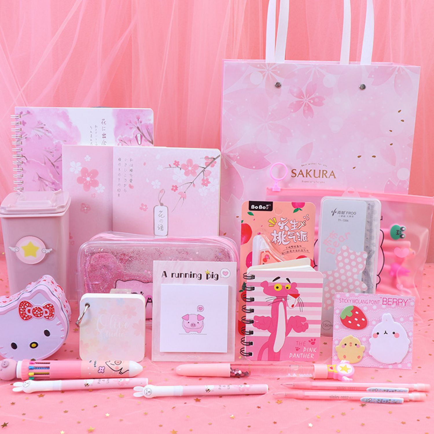Components: pencil case, gel pen, correction tape, cartoon gift box, etc.