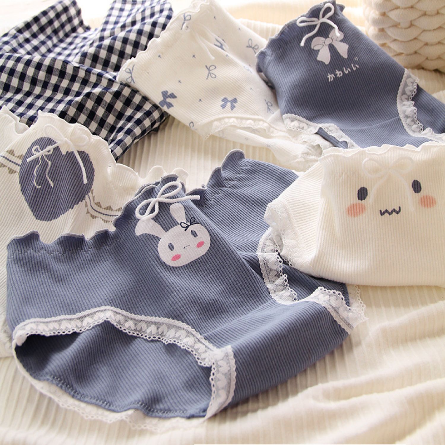 Girls Cotton Mid-waist Briefs Cotton Women Panties Expression M