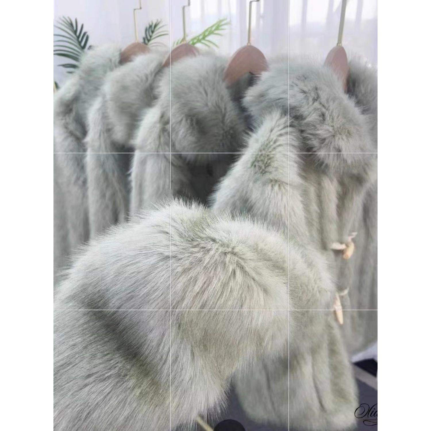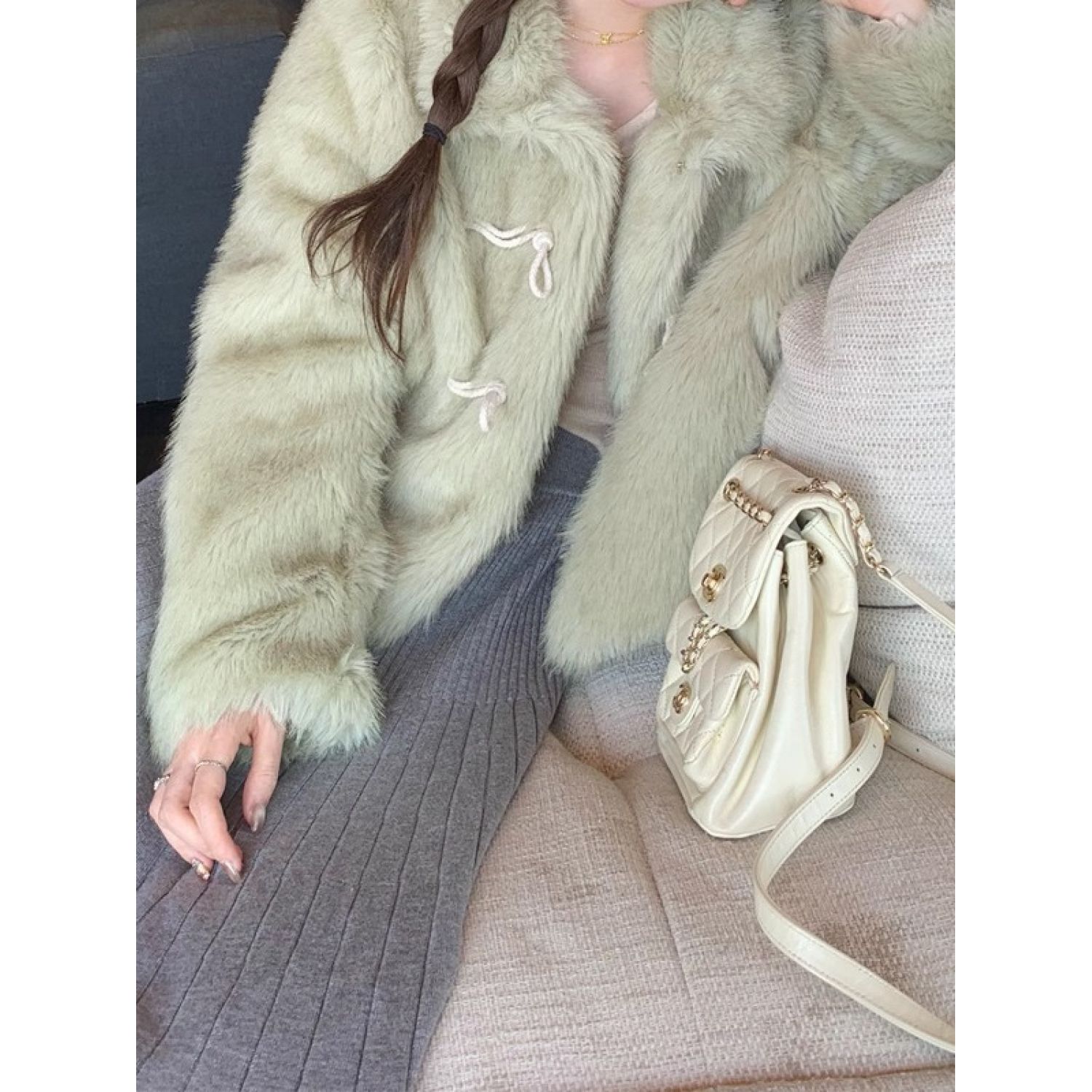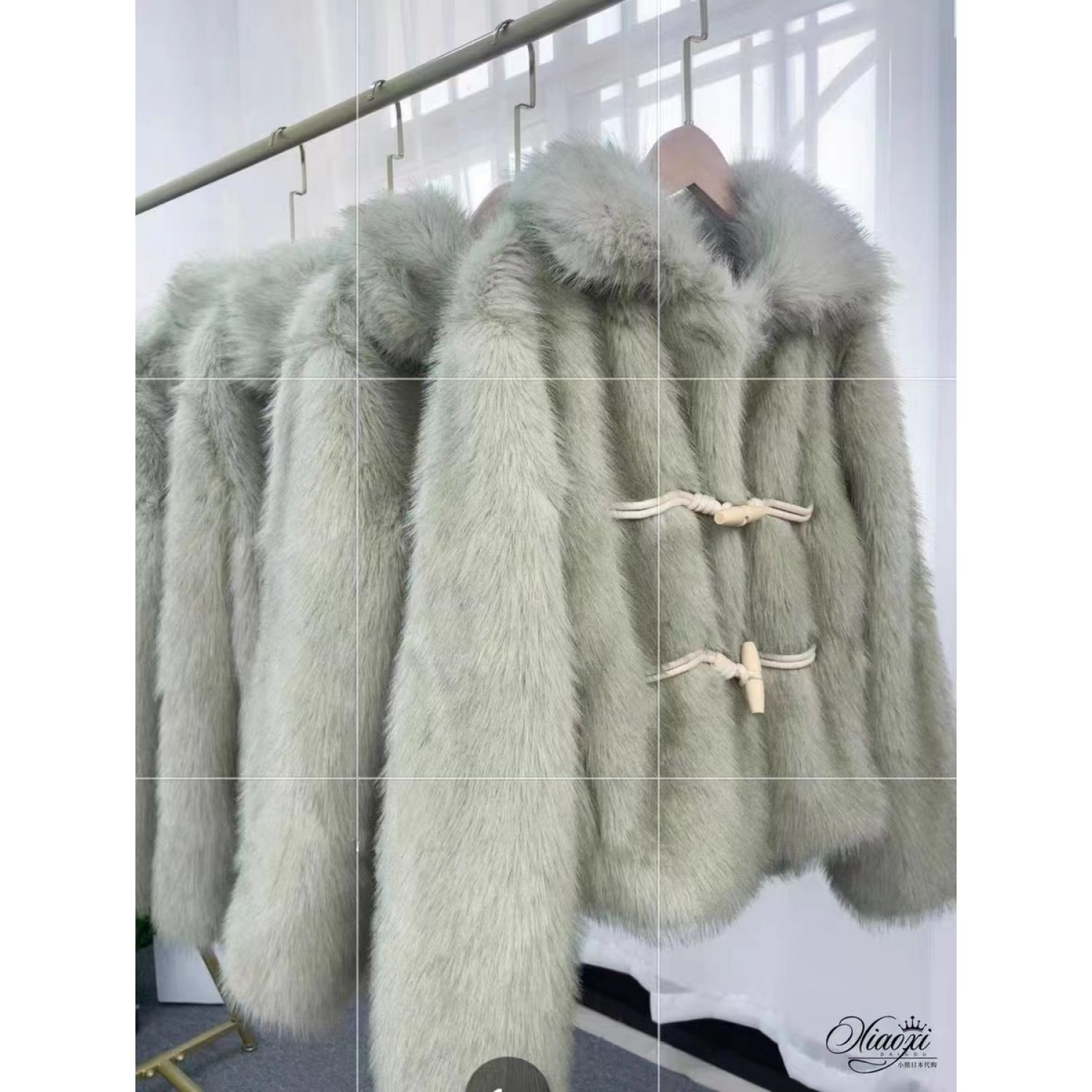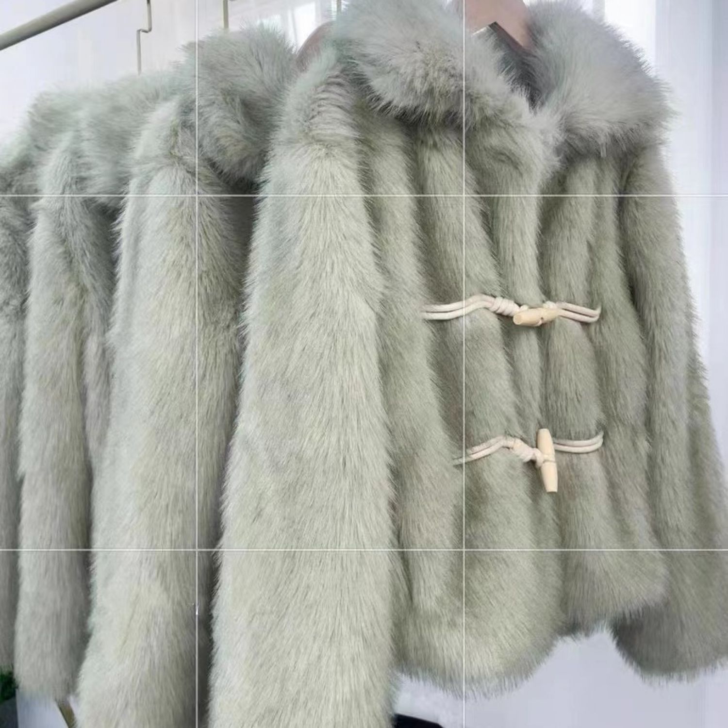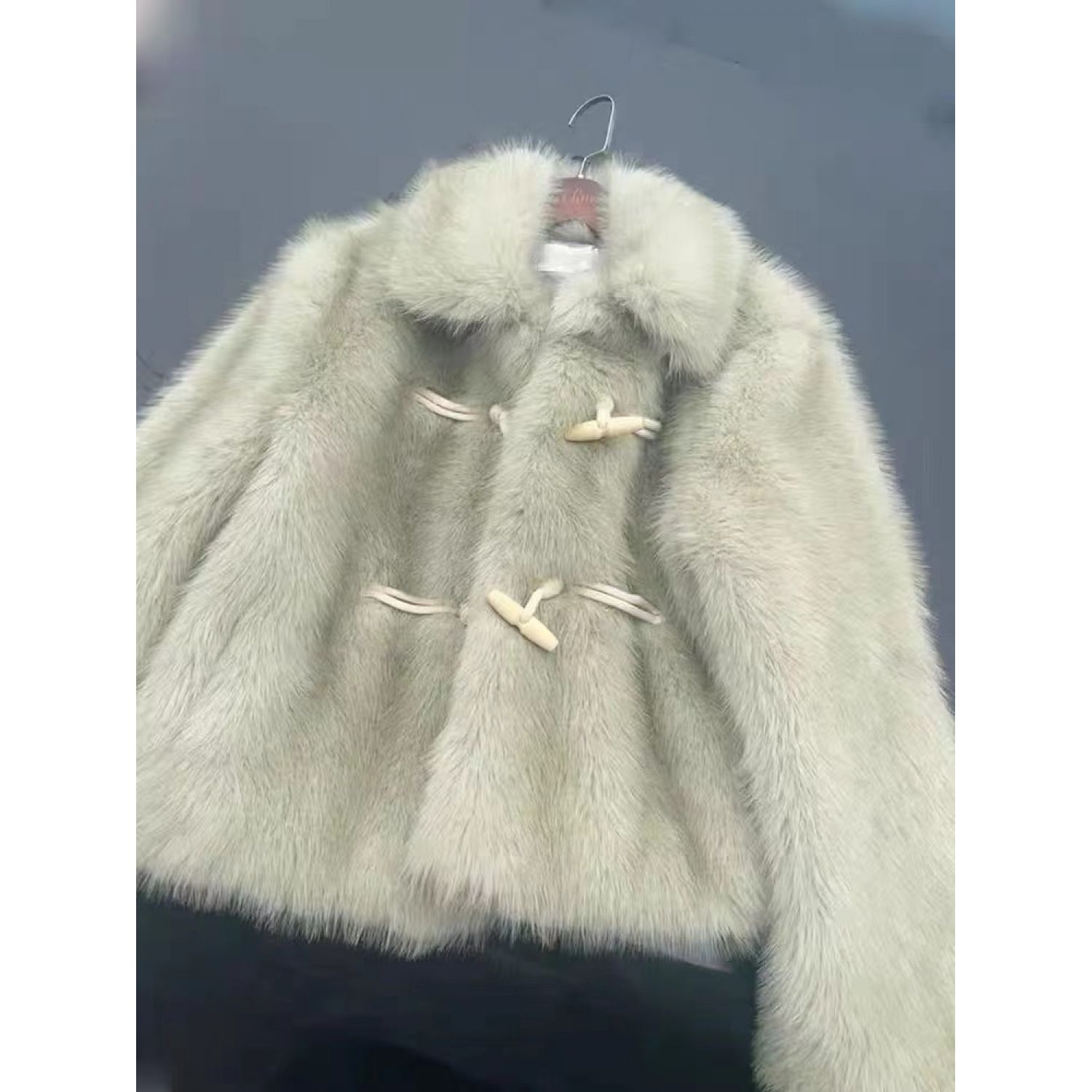 Green Horn Button Green Fur Short Plush Coat Matcha Green Free Size