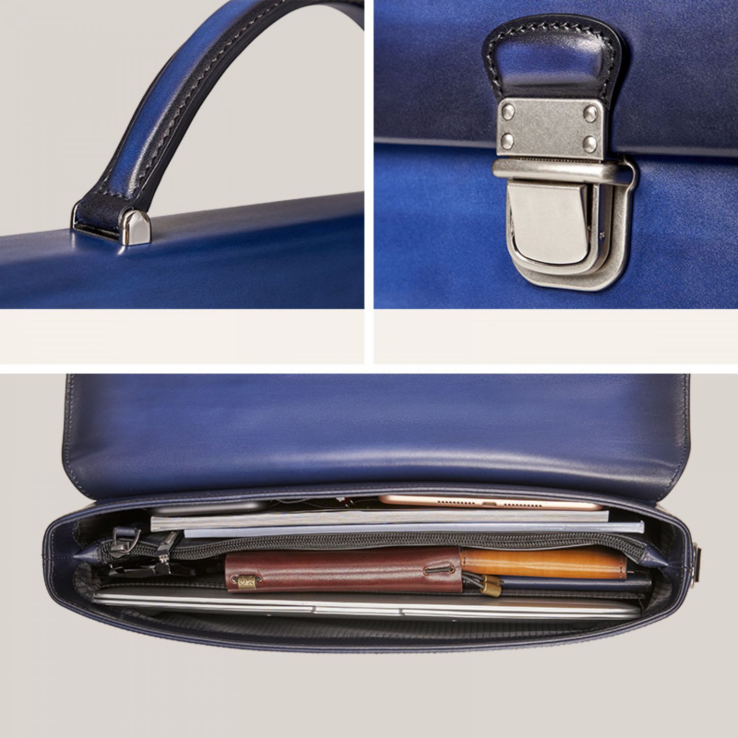 Handmade Vintage Crossbody Flap Business Bag Blue