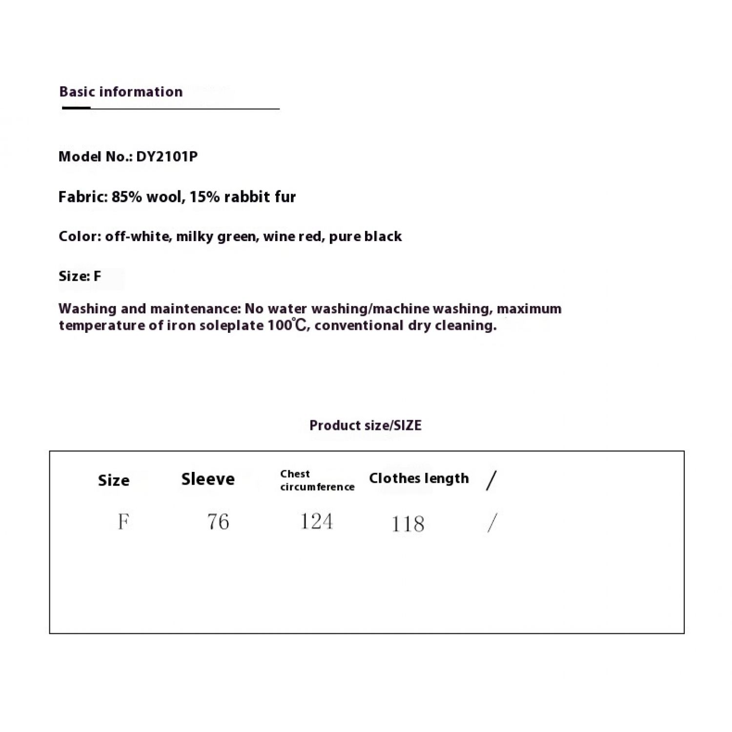 Product information: