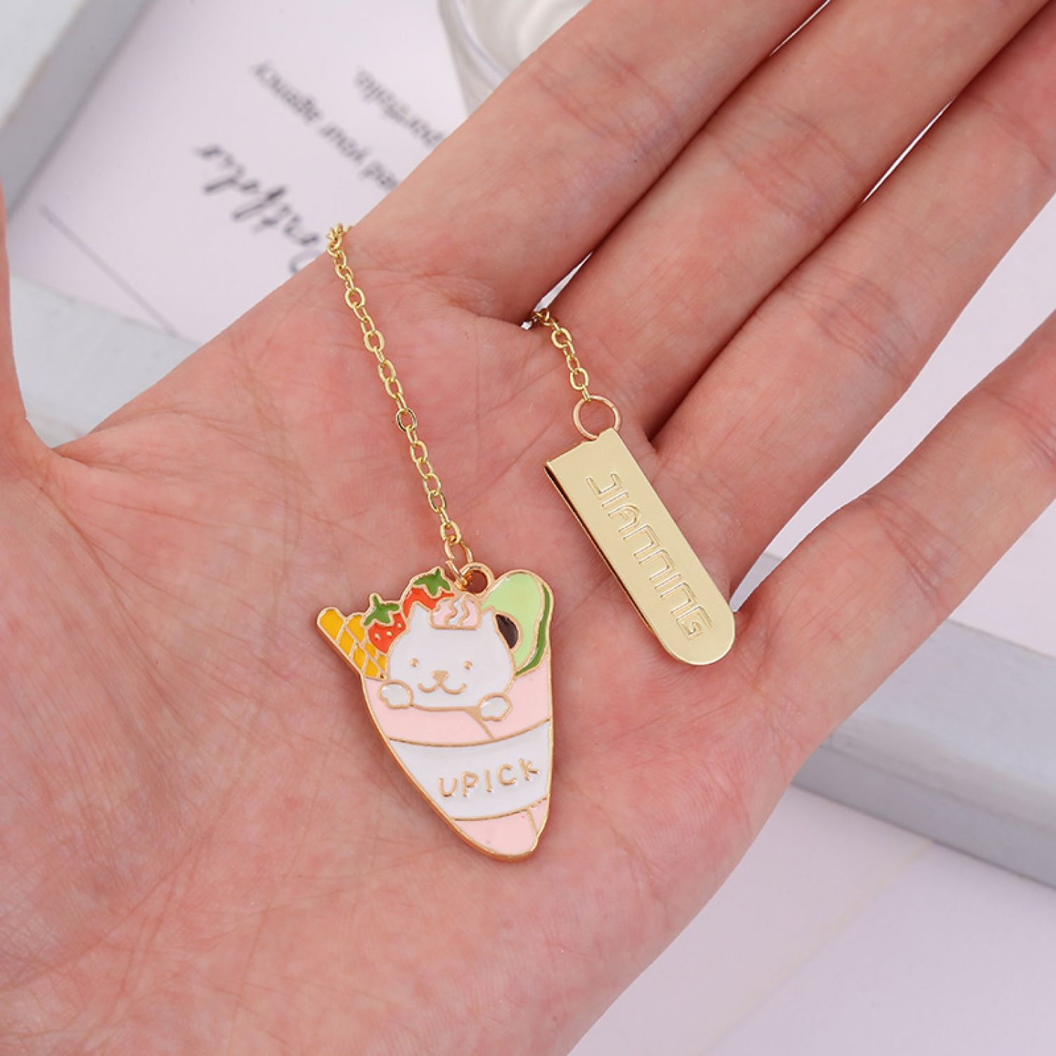 Jane Key Foodie Cute Pet Cat Bookmark Cartoon Creative Metal Pendant Strawberry Cake Cat