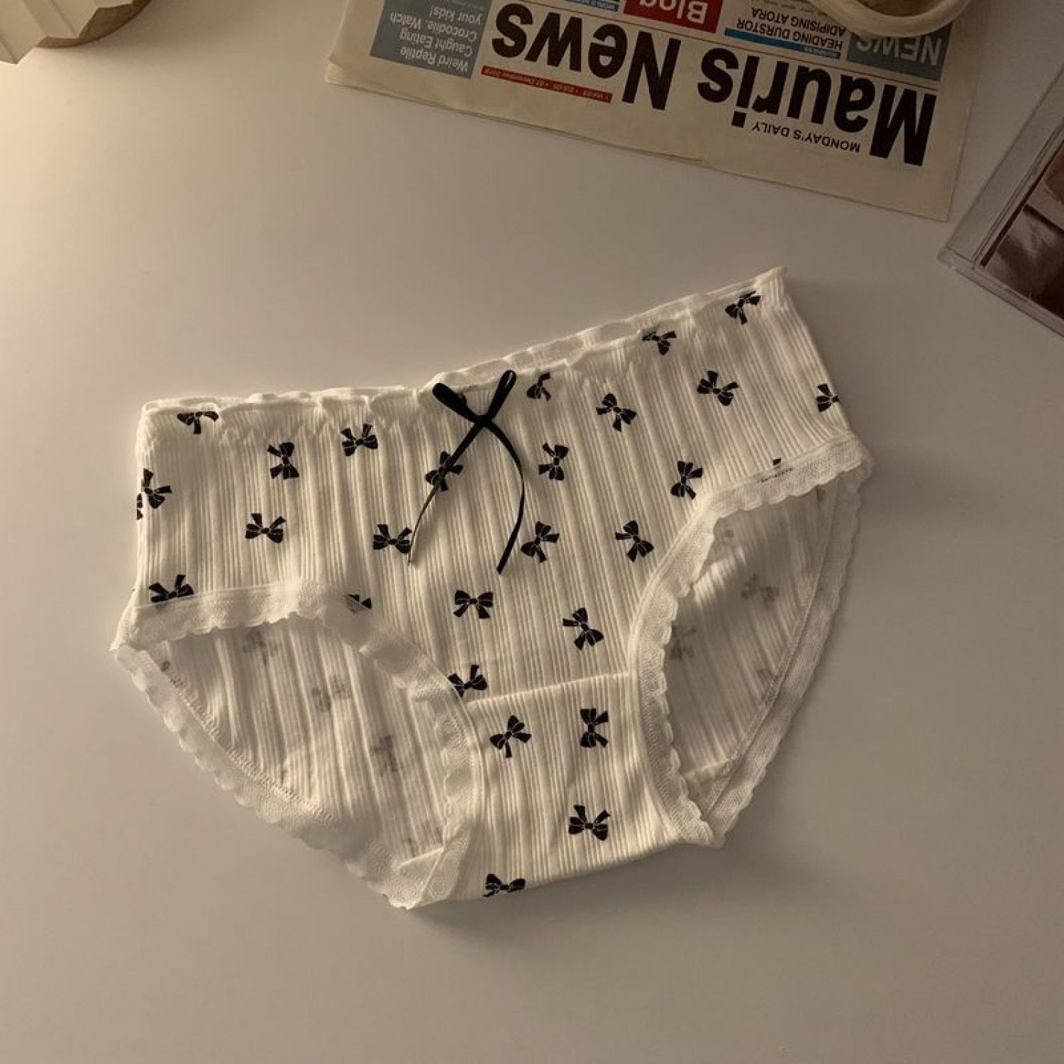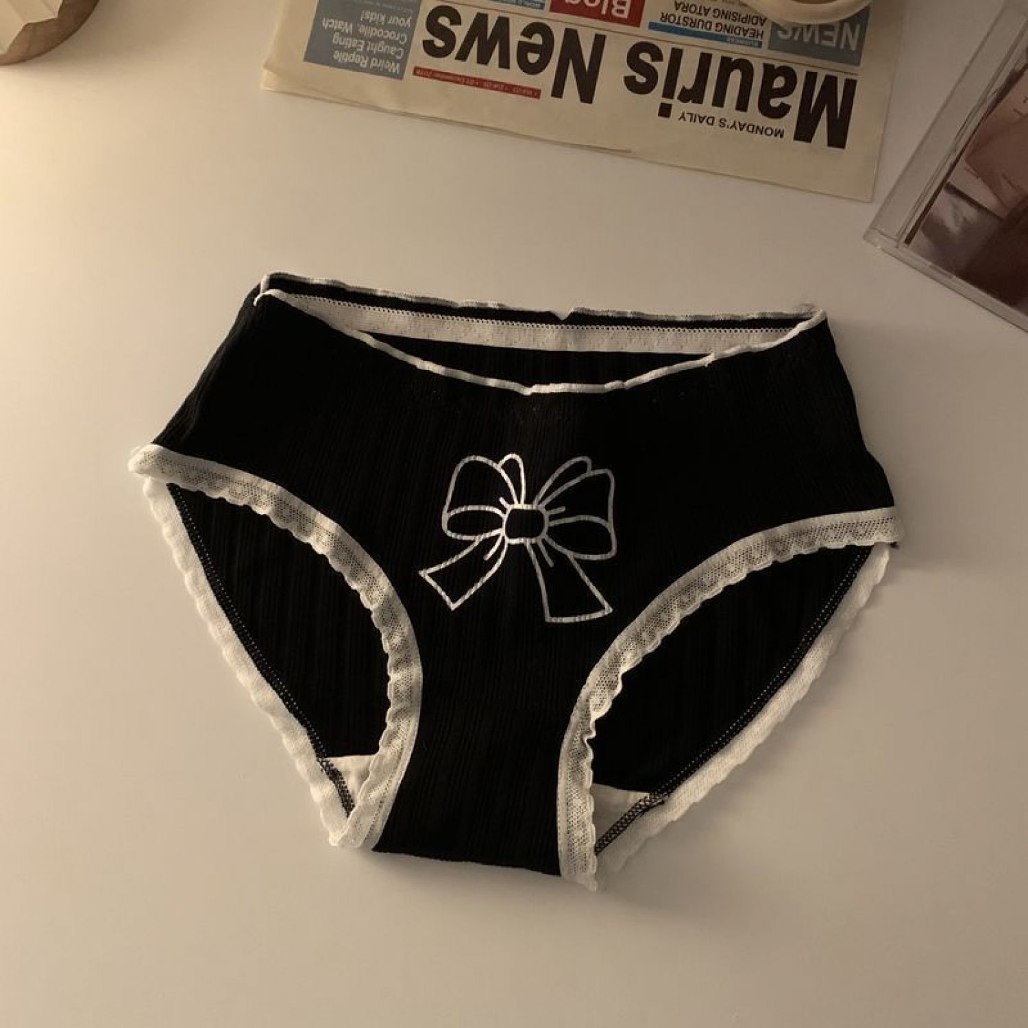 Japanese Cute Underwear Women's Cotton Black And White Plaid M