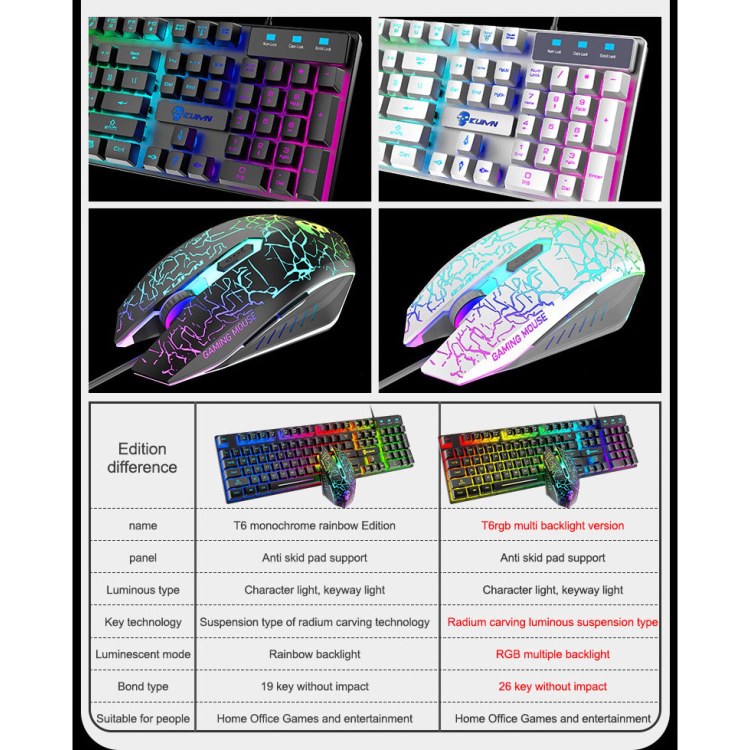 Keyboard lighting mode: rainbow lighting 19 keys conflict-free RGB version RGB multiple backlight