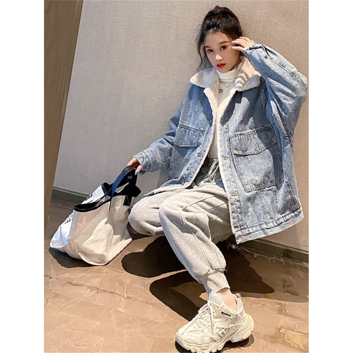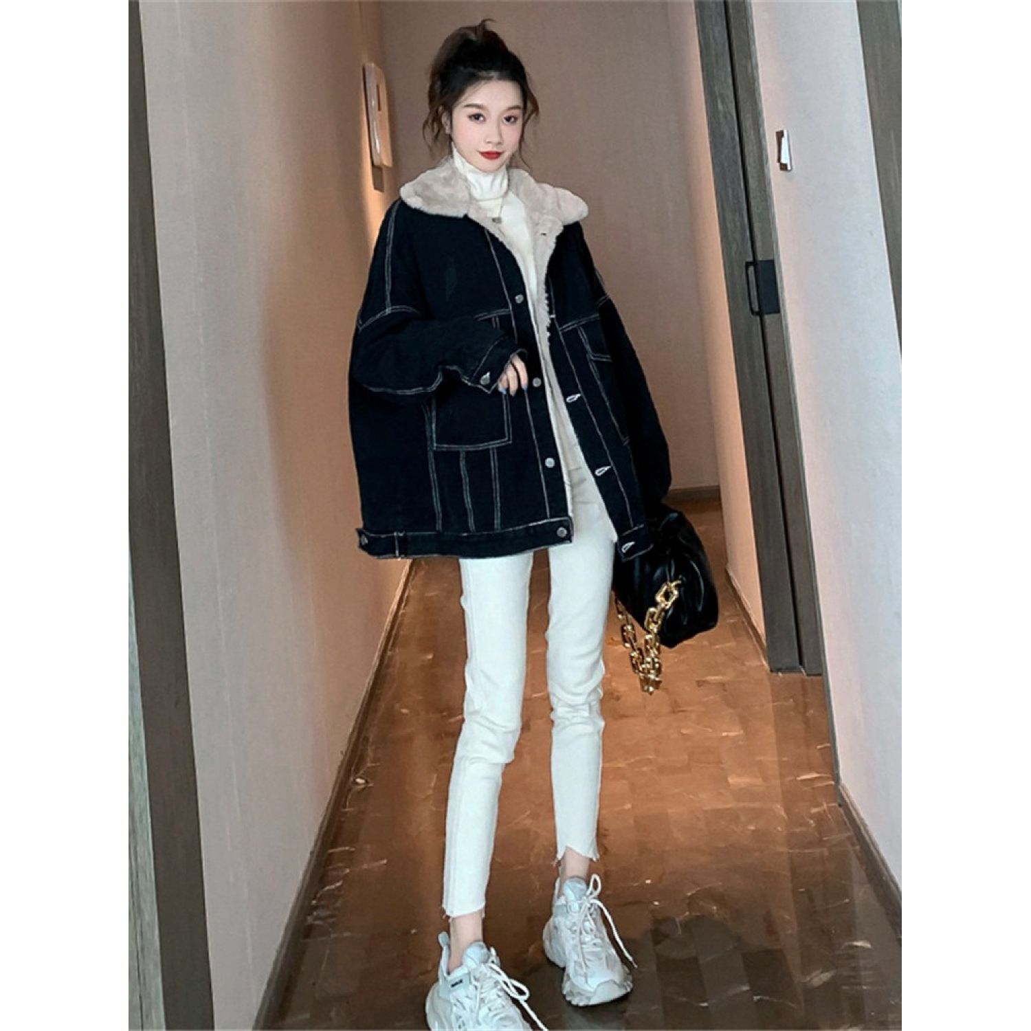 Lamb wool denim jacket*1