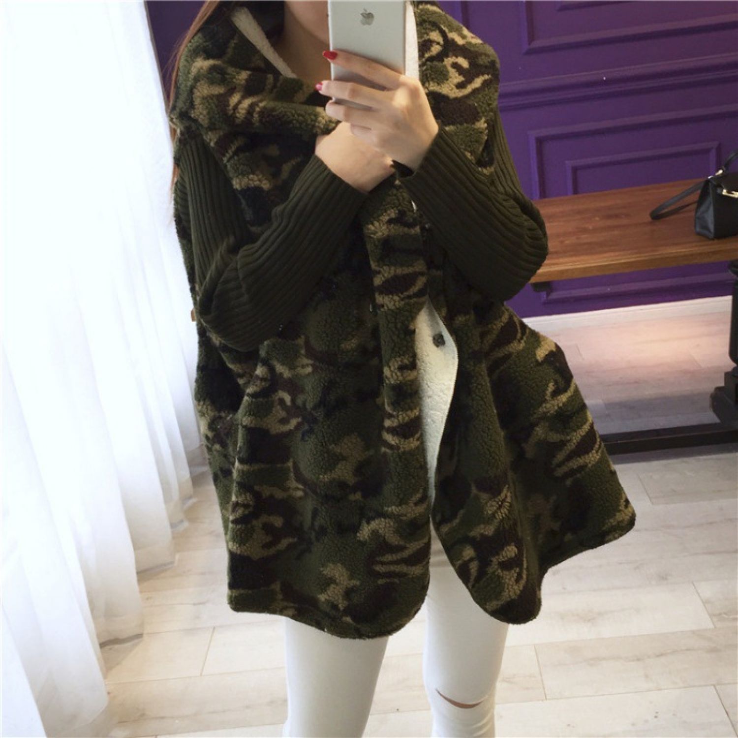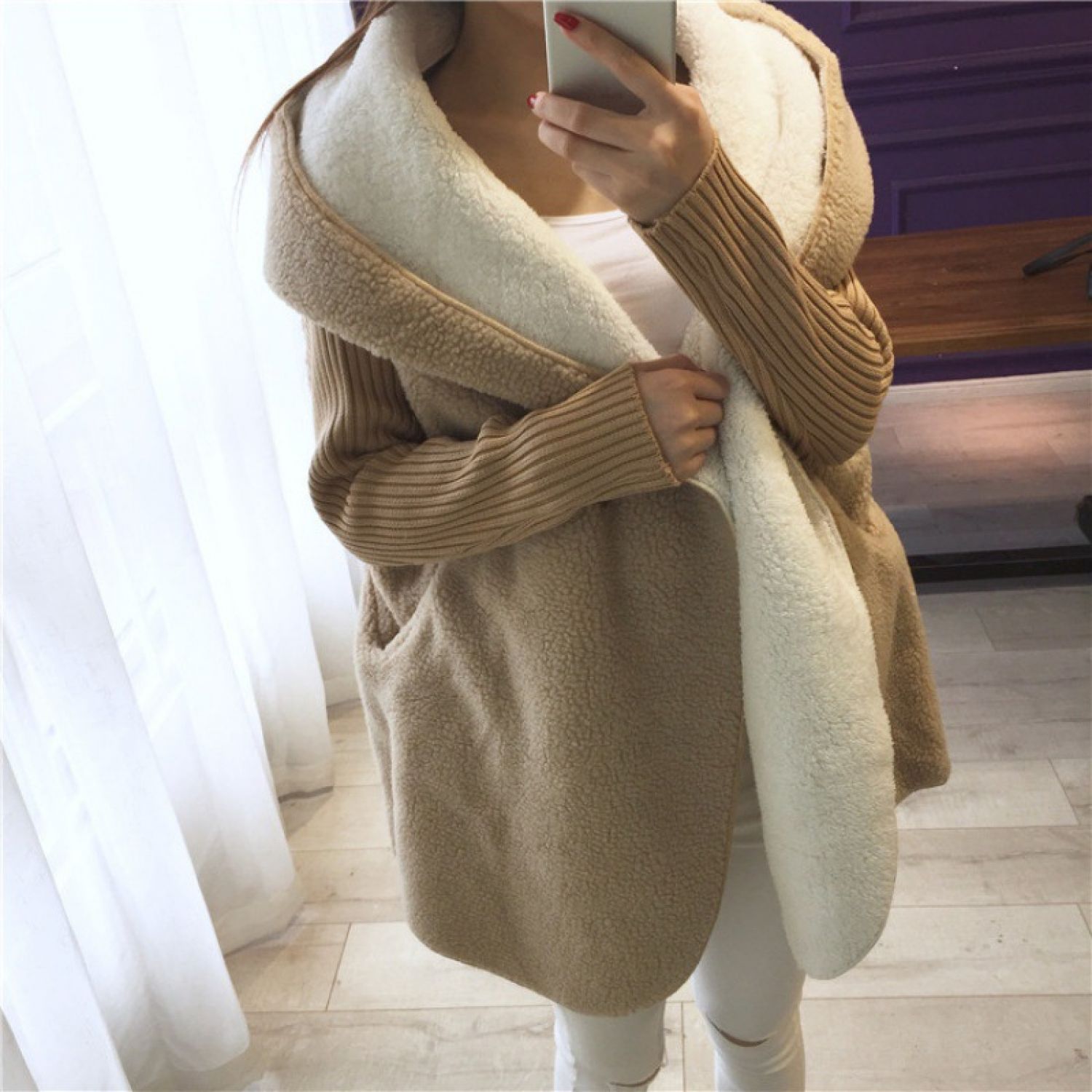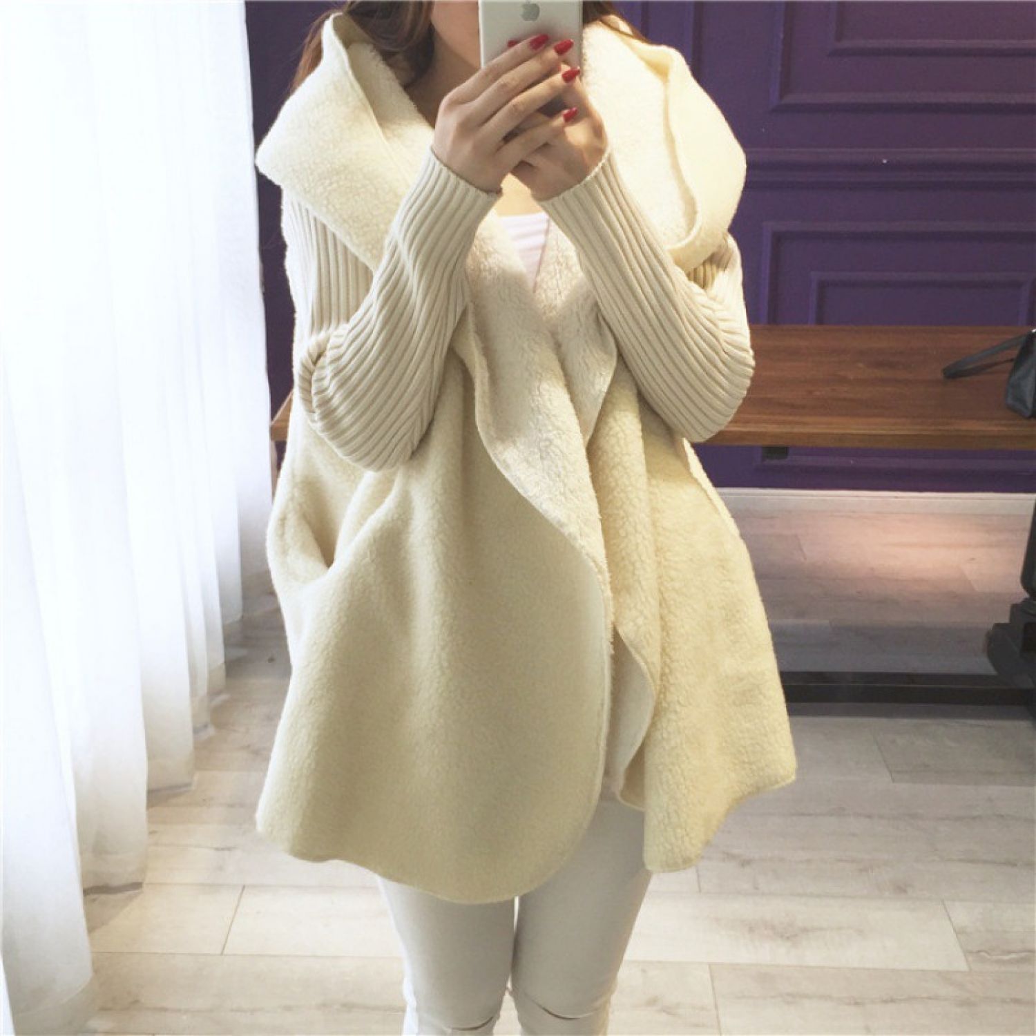 Lambs Wool Plus Size Loose Sweater Cardigan Off white One size