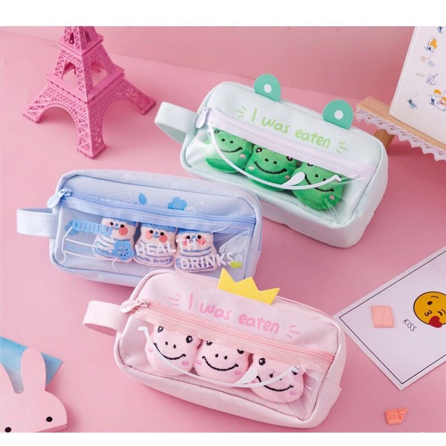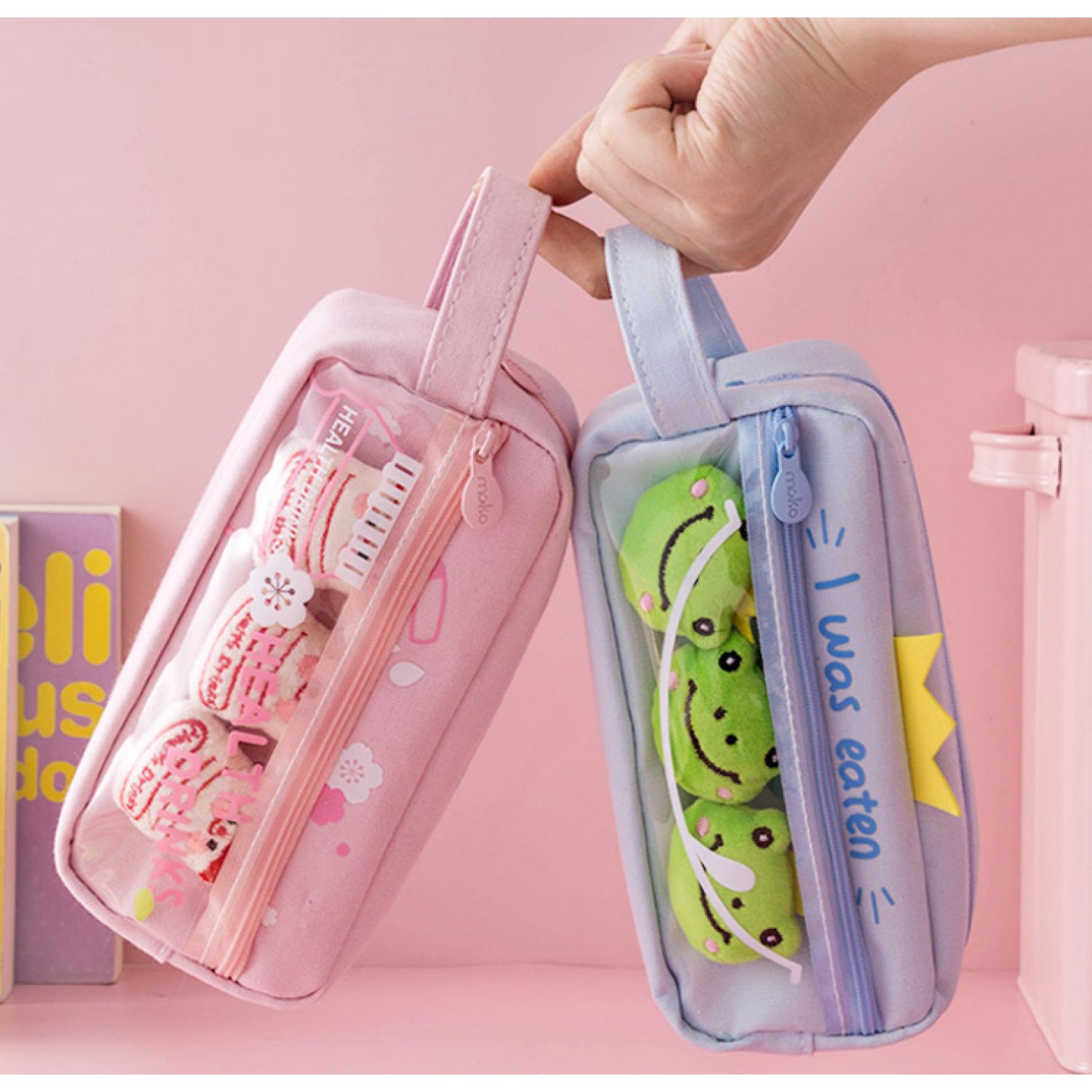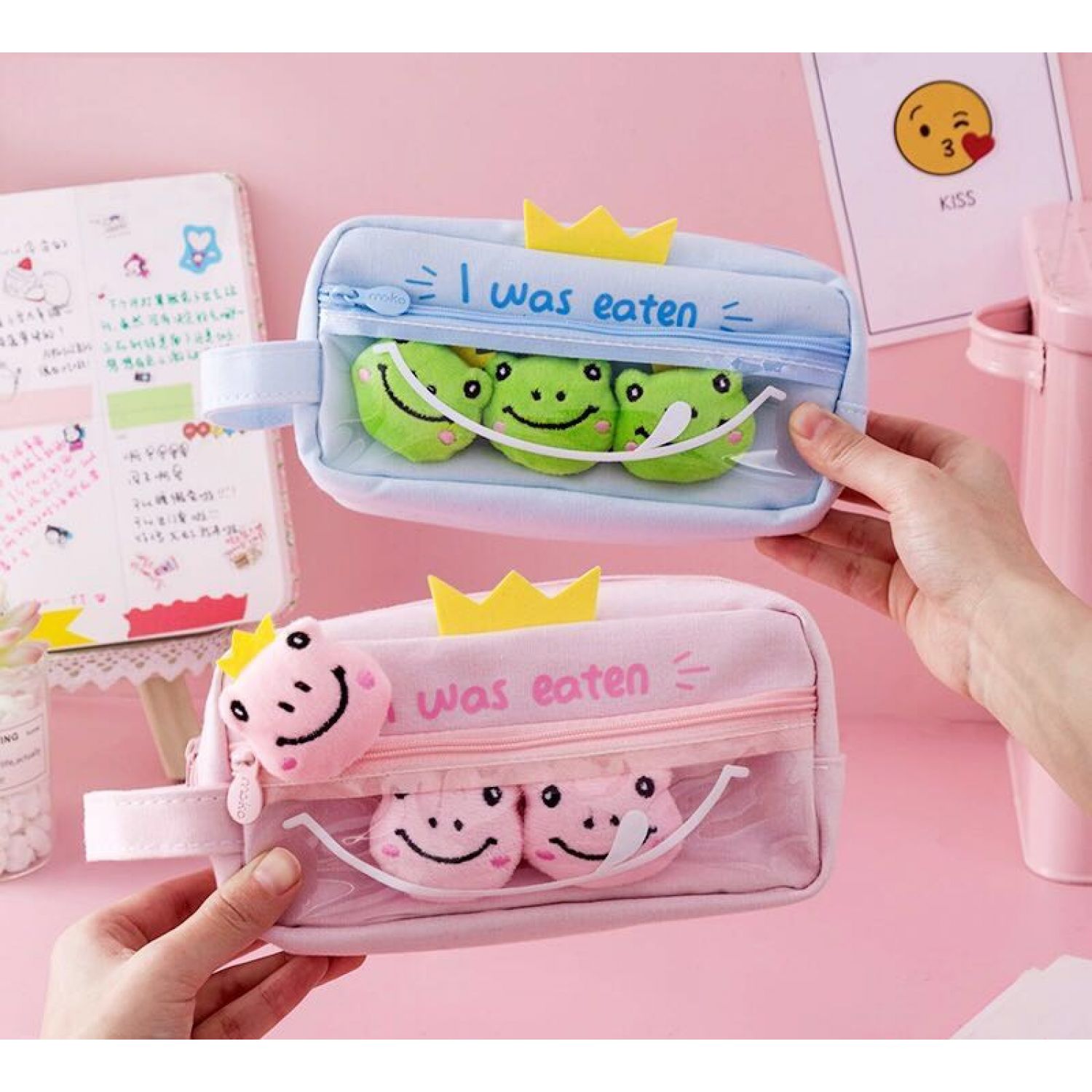 Large Capacity Elementary Students' Pencil Bag Pink Frog