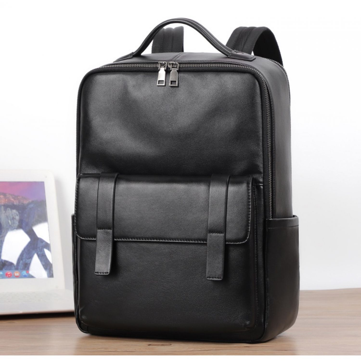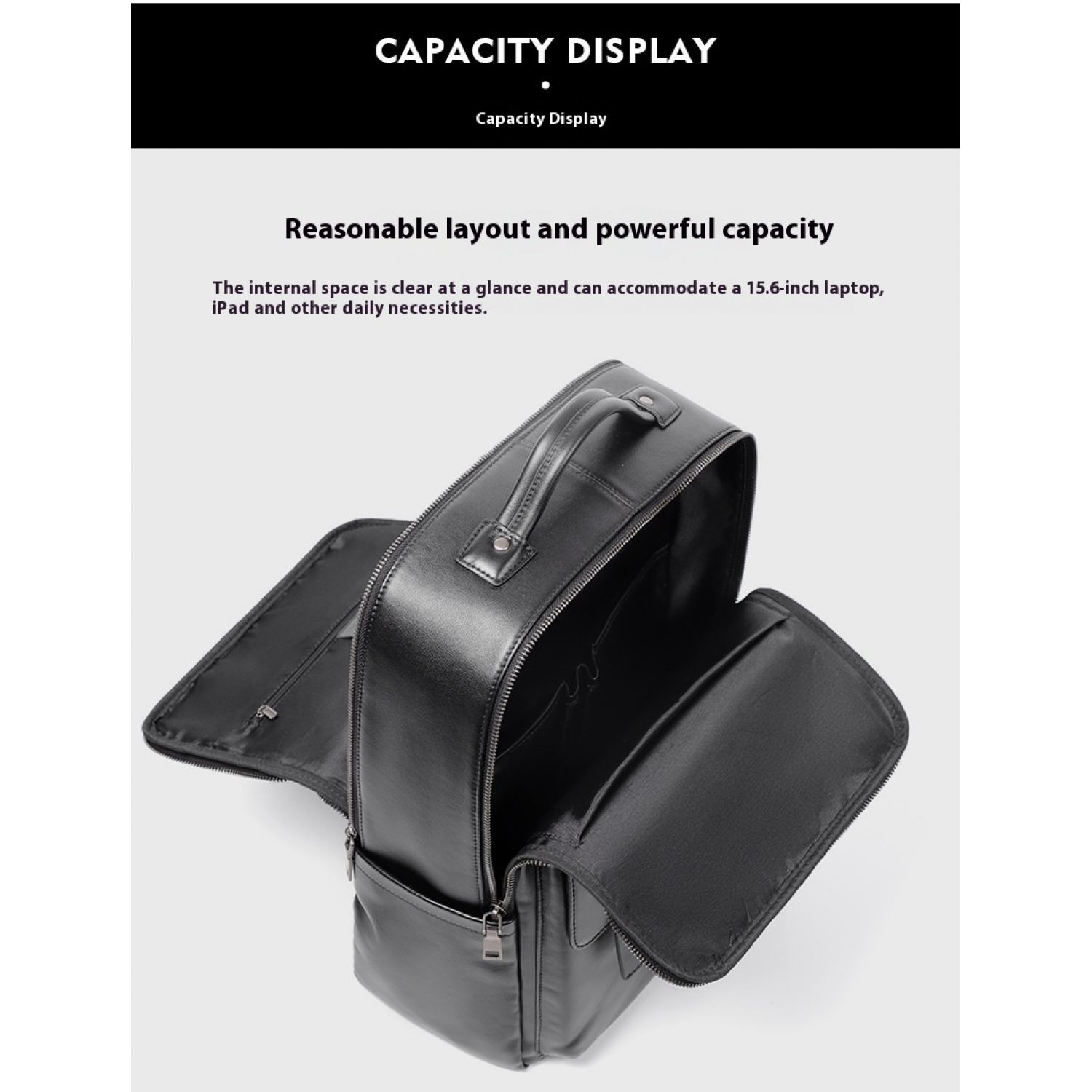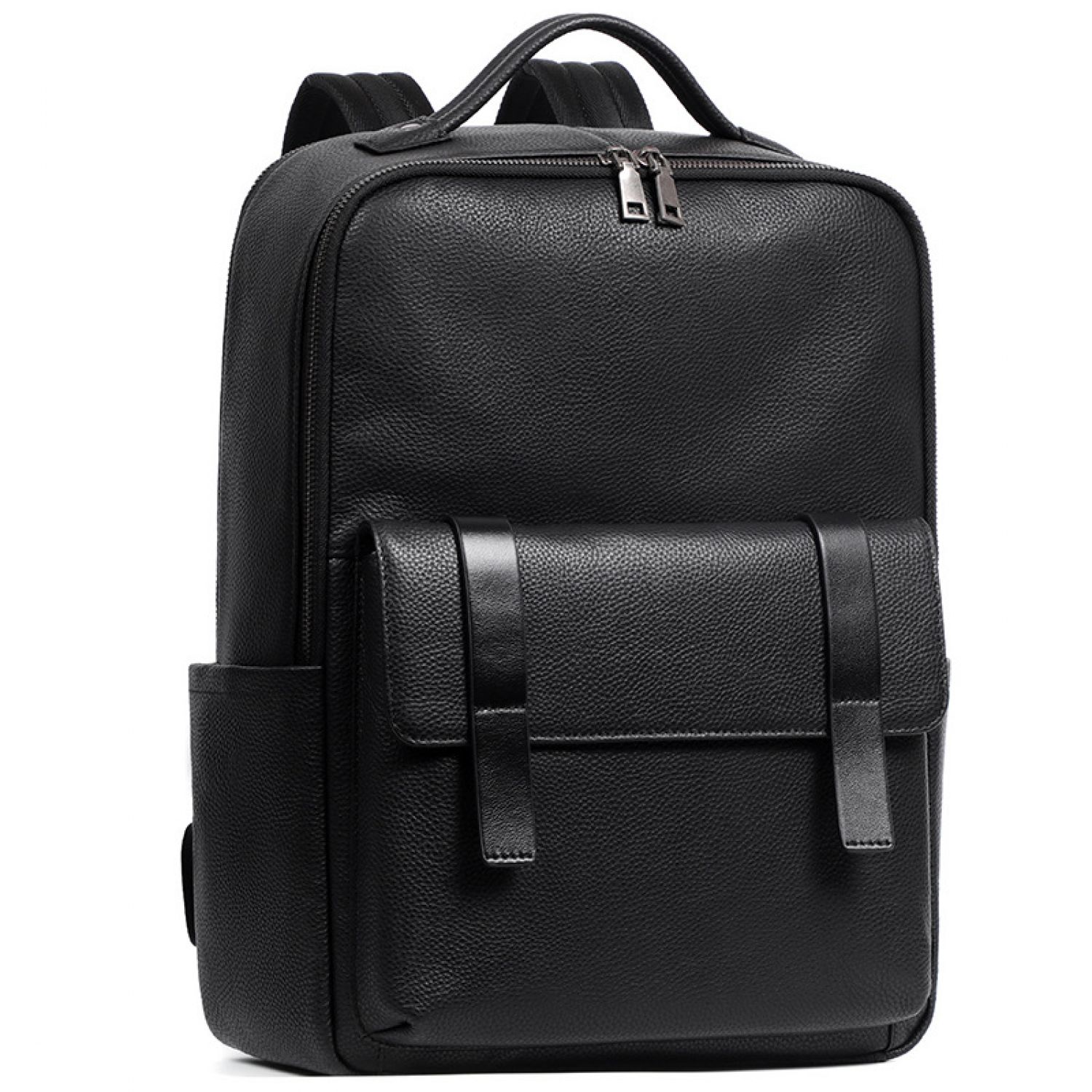 Large Capacity Men's Leather Computer Backpack Black Litchi Pattern