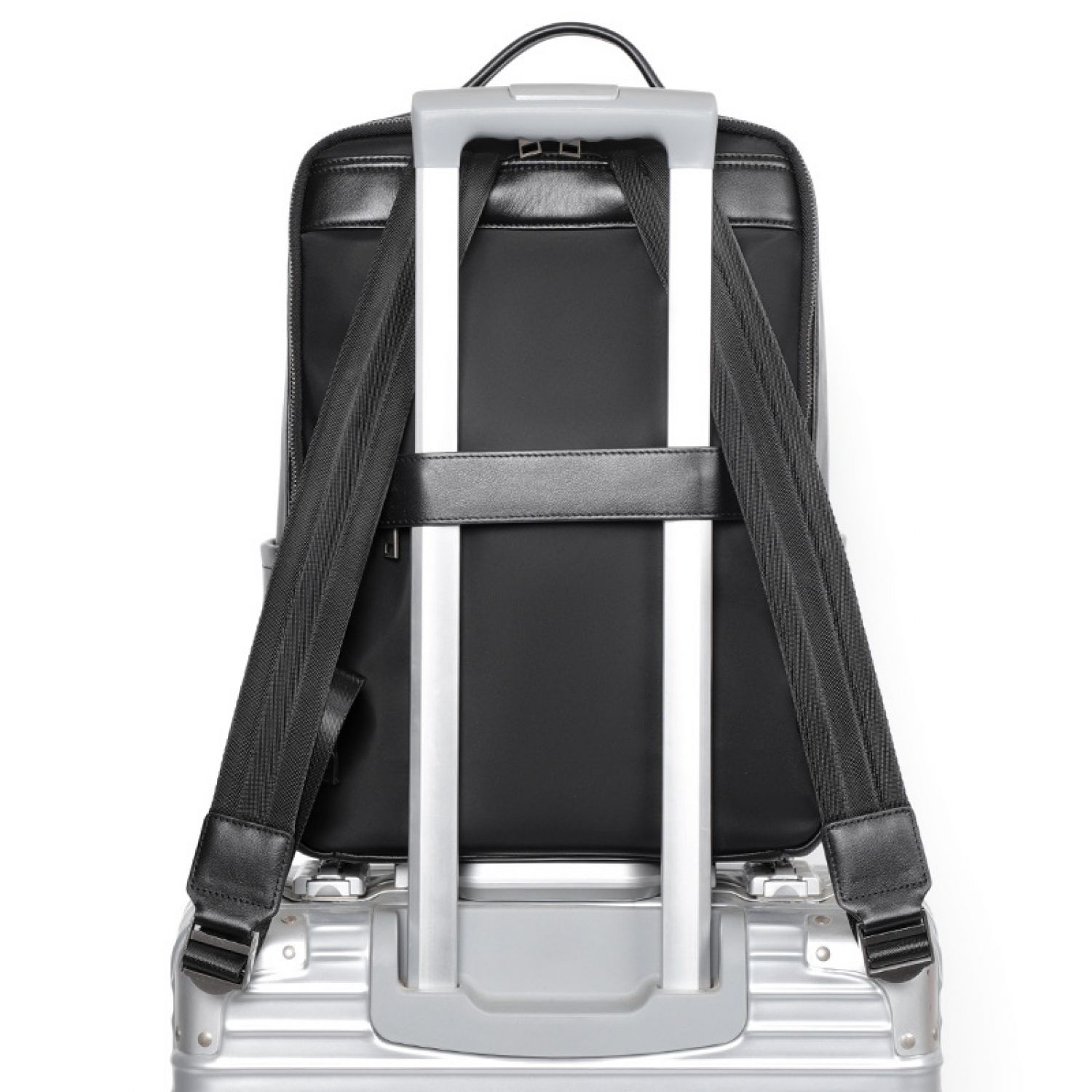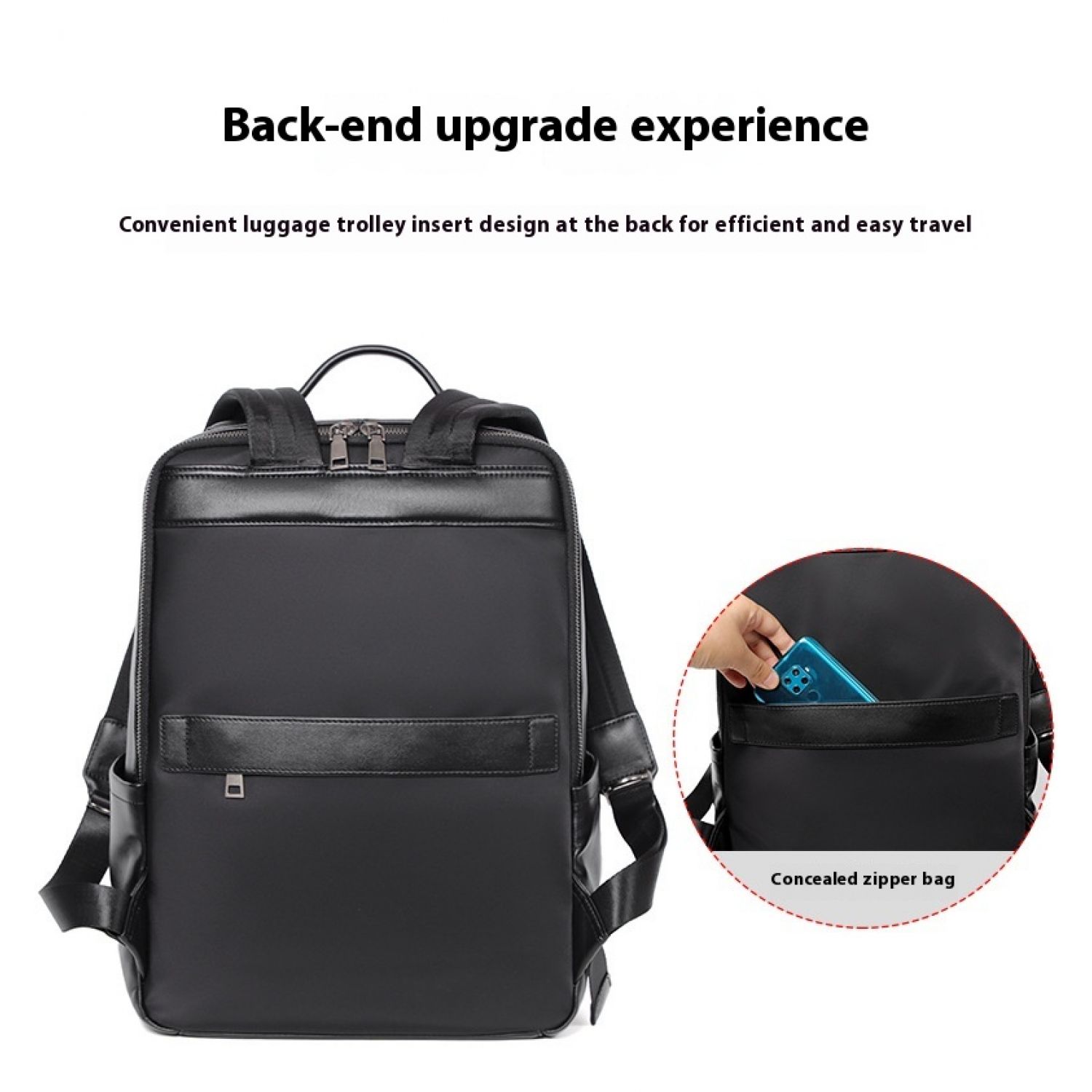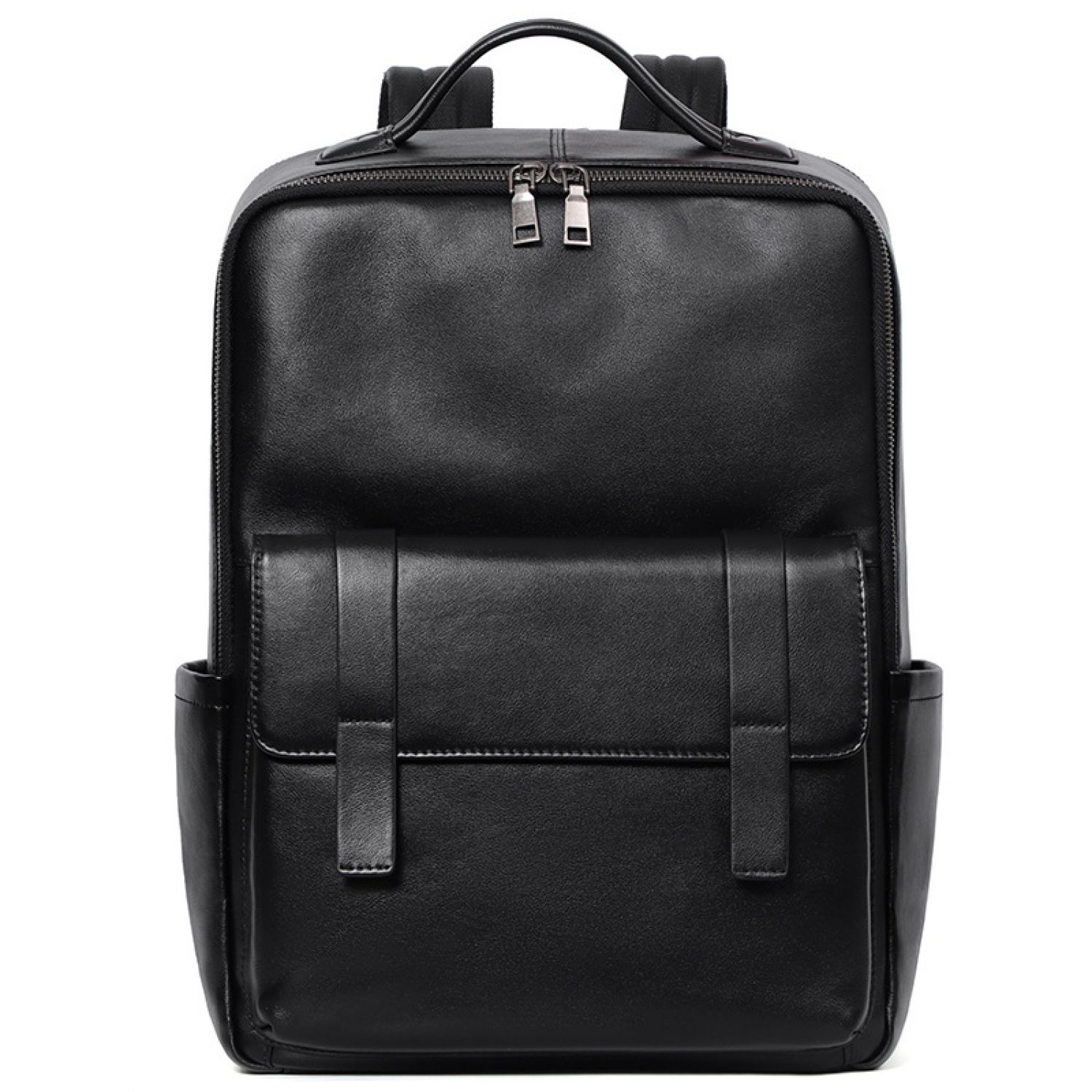 Large Capacity Men's Leather Computer Backpack Black Litchi Pattern