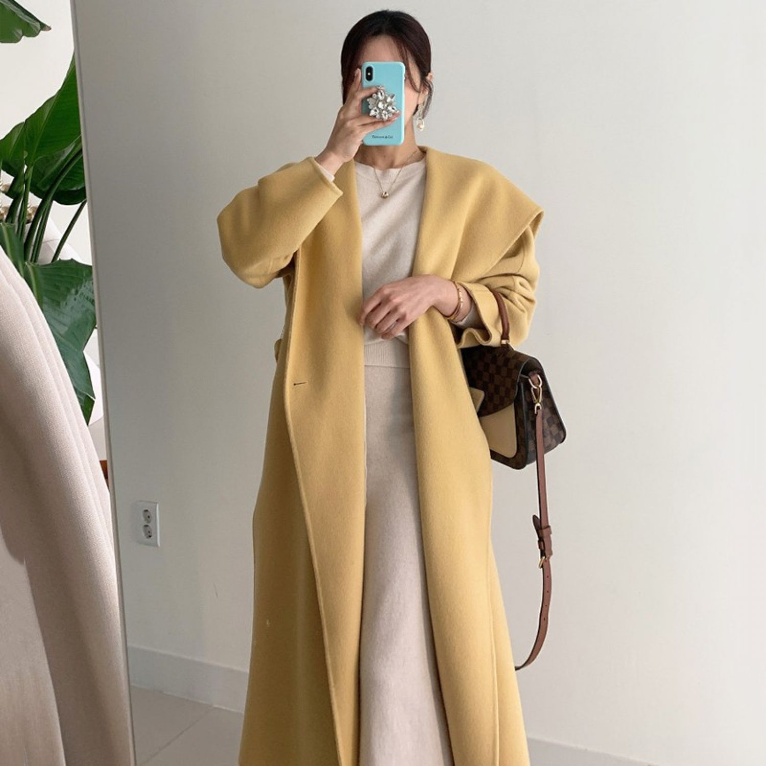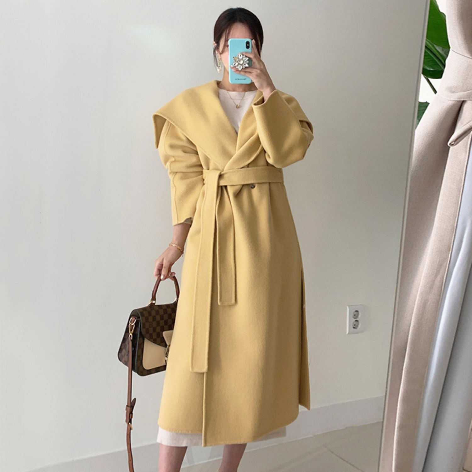 Large Lapel, One Button Lace Up Waist, Thin Coat Yellow One size