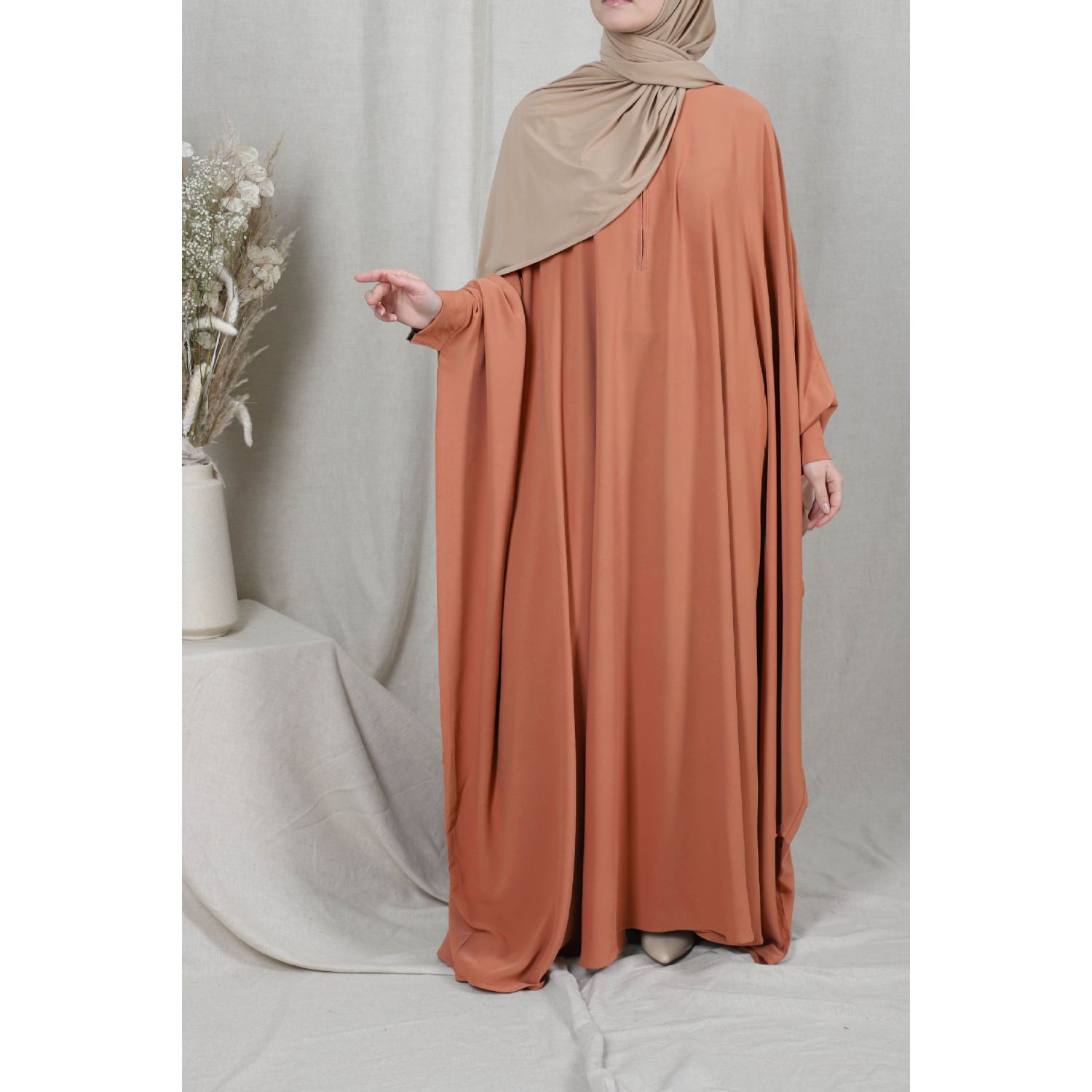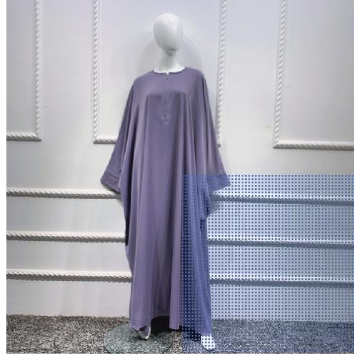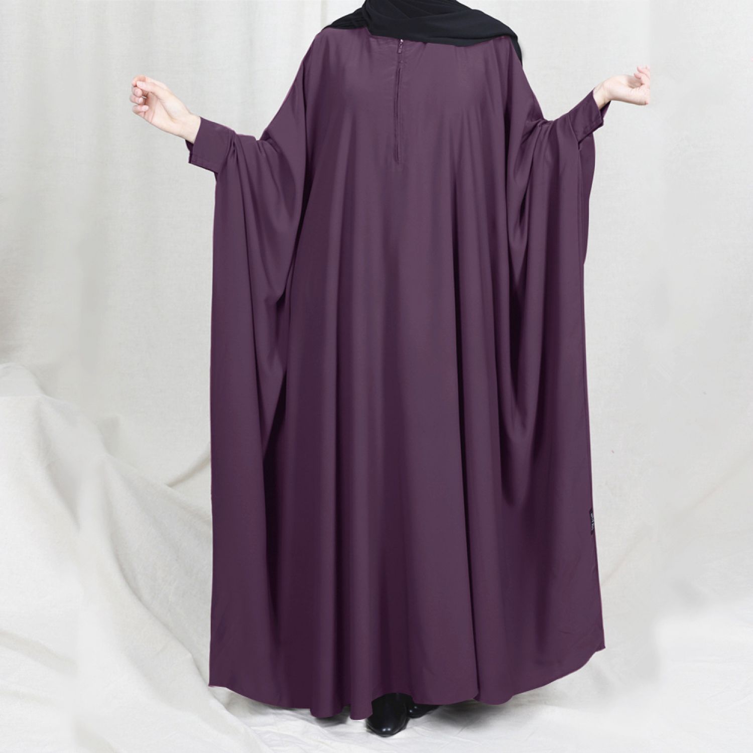 Features: Loose fitting, bat sleeves, half high collar