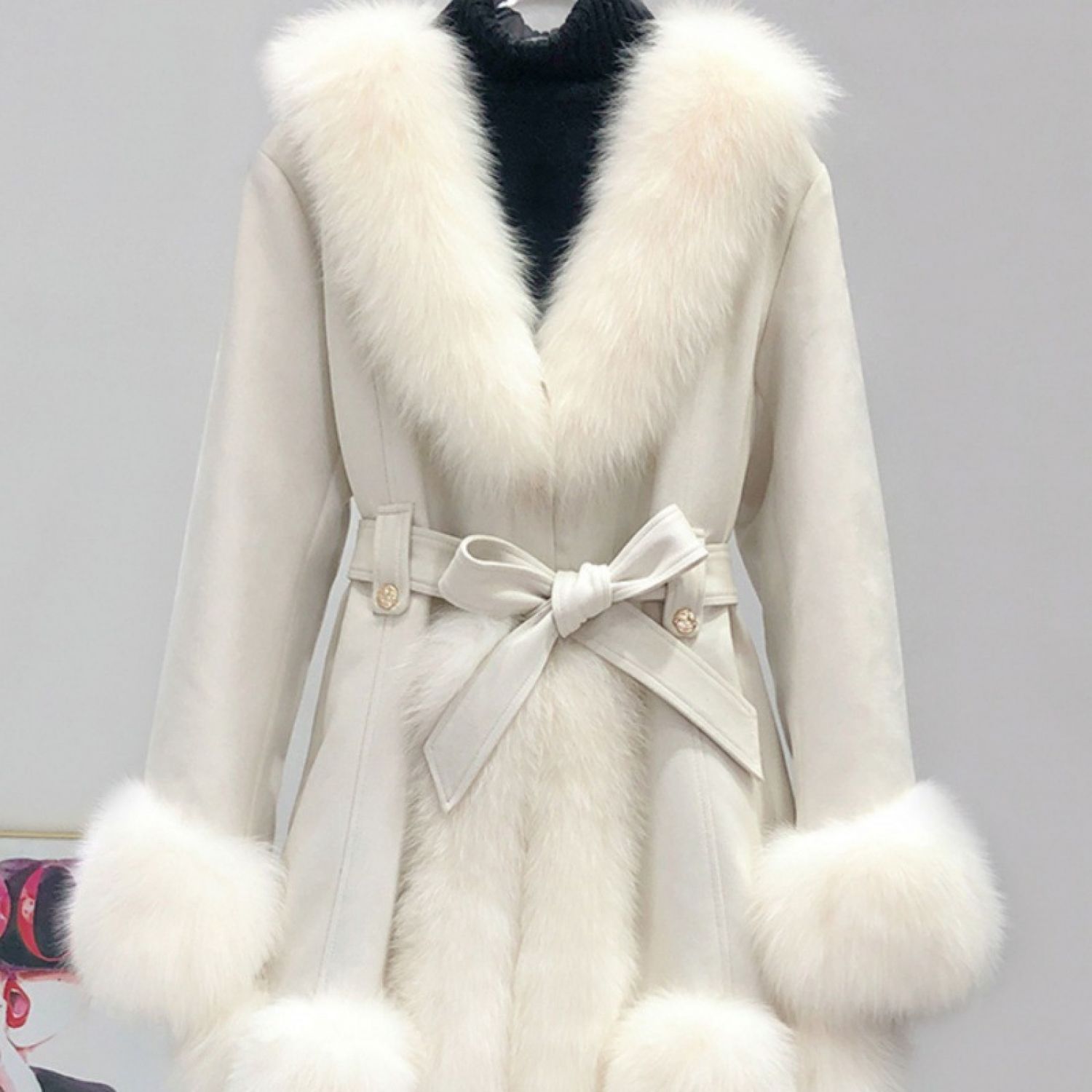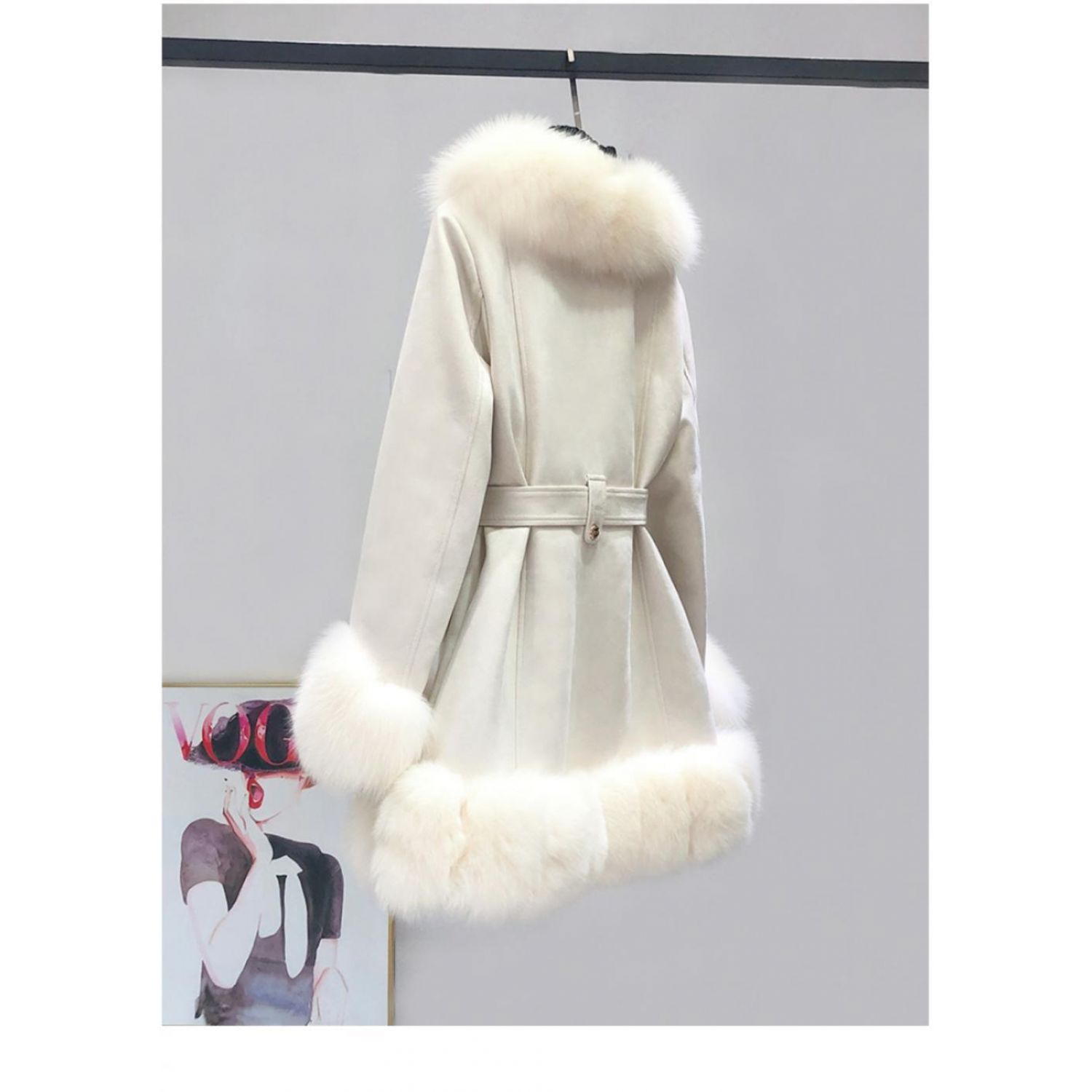 Leather Coat Suede Fur Integrated Mid-length Western Style Slimming Beige S