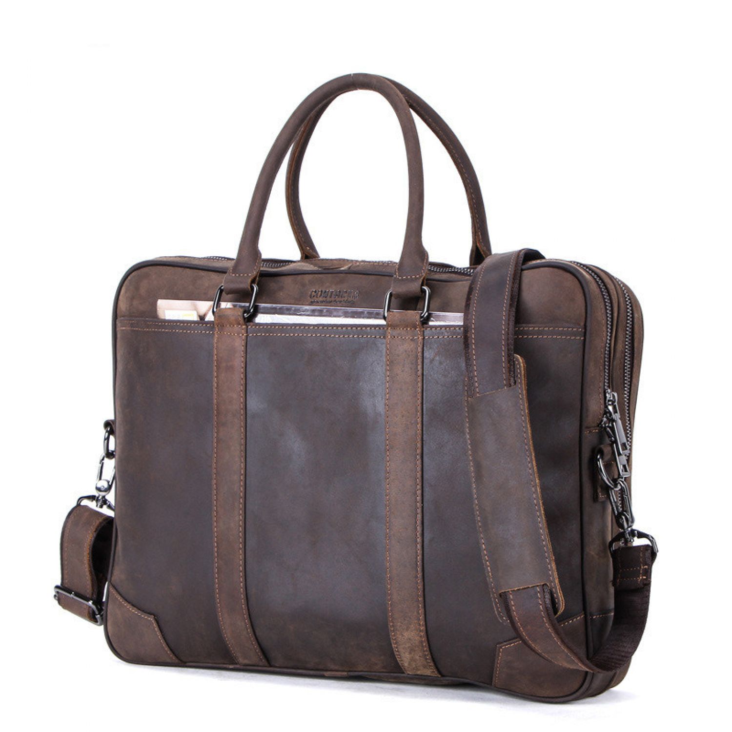 Leather Men's Business Briefcase Multifunctional Brown