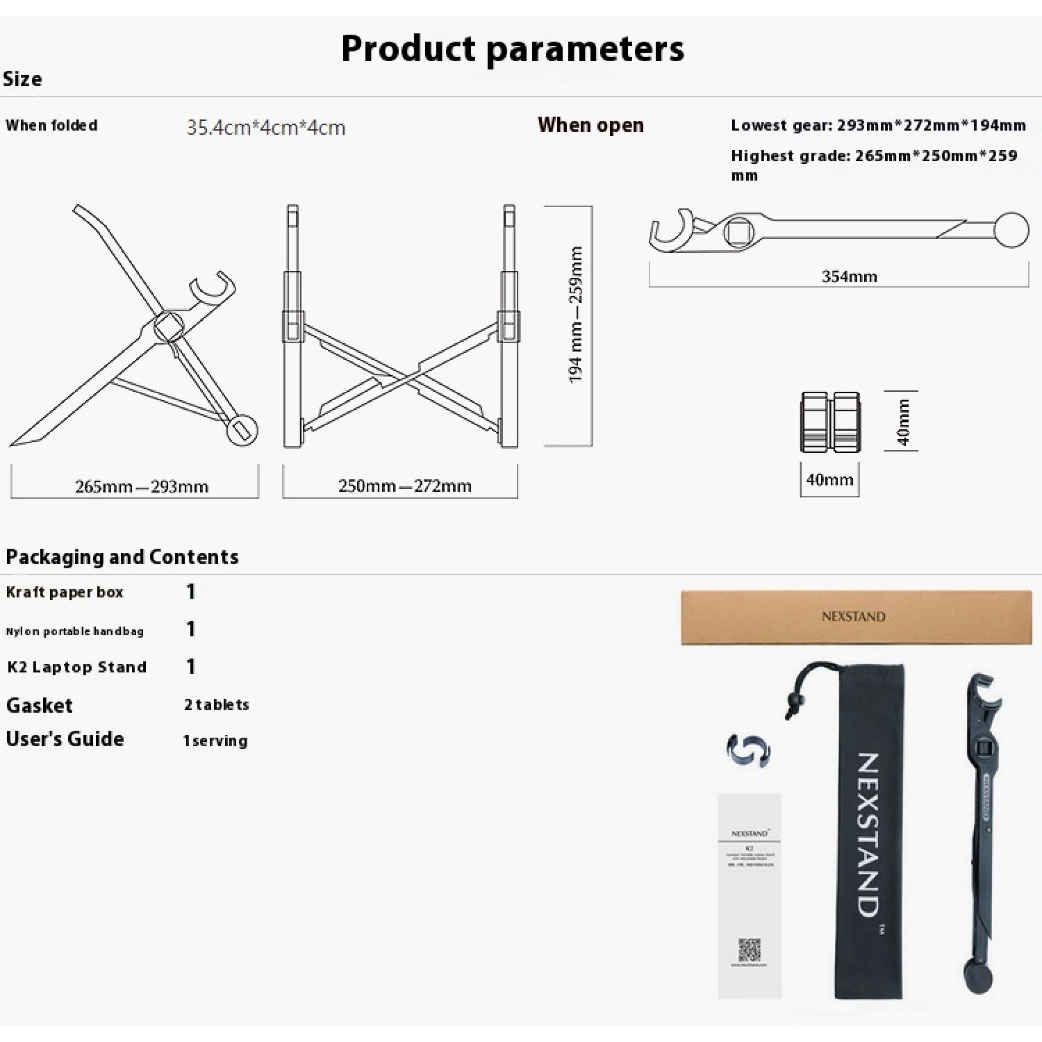 Kraft paper box * 1 Nylon portable handbag * 1 K2 laptop stand * 1 2 gaskets