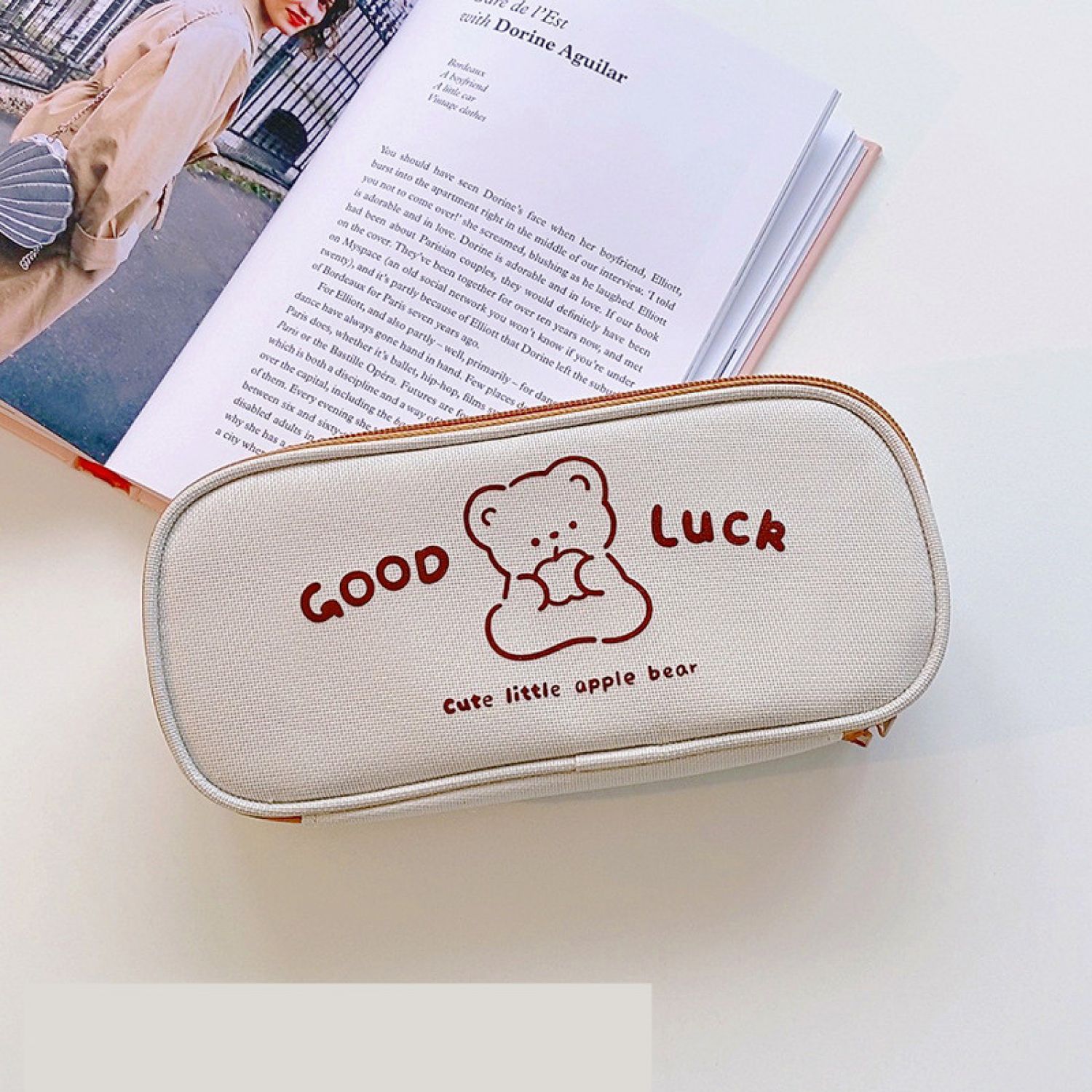 Literature And Art Oxford Cloth Student Pencil Bag Stationery Box Thinking bear