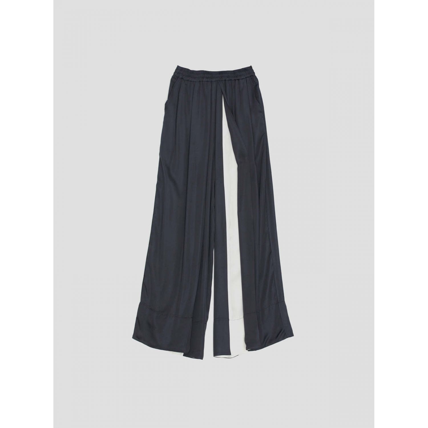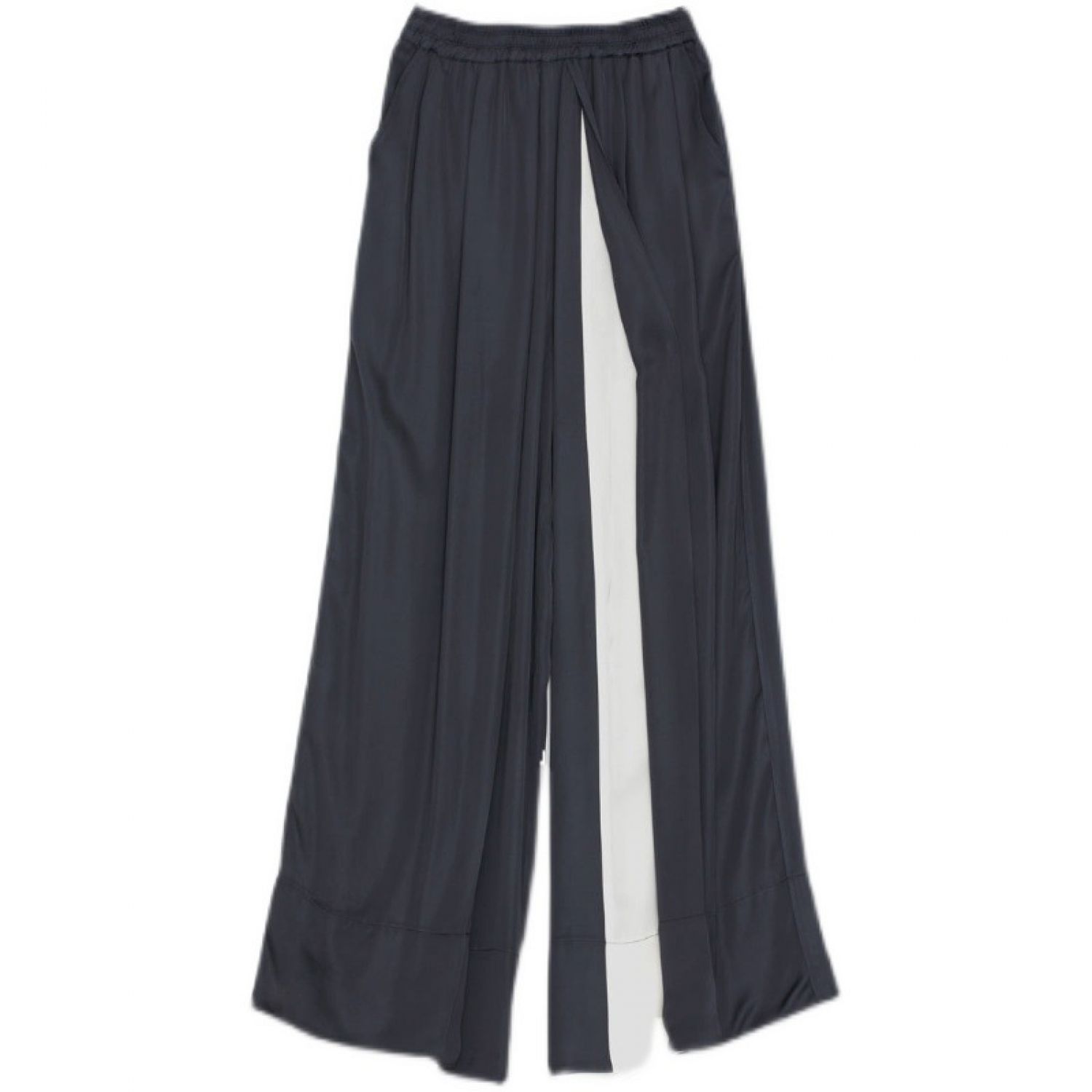 Loose Wide-leg Pants Women's Color Matching Silky Casual Trousers Navy Blue Average Size