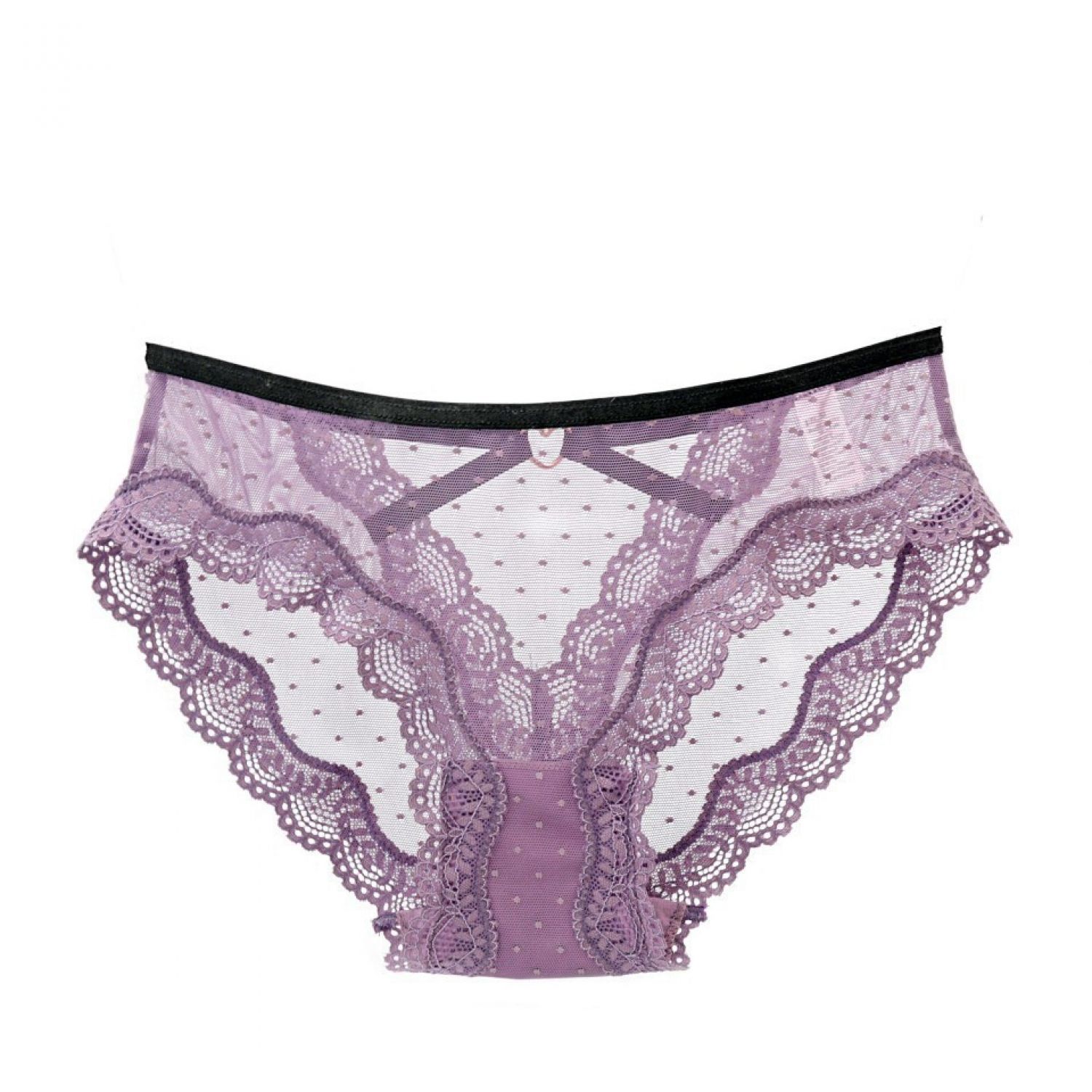 Love Hollow Lace Mid-waist Lace Hip-lifting Ladies Briefs White M