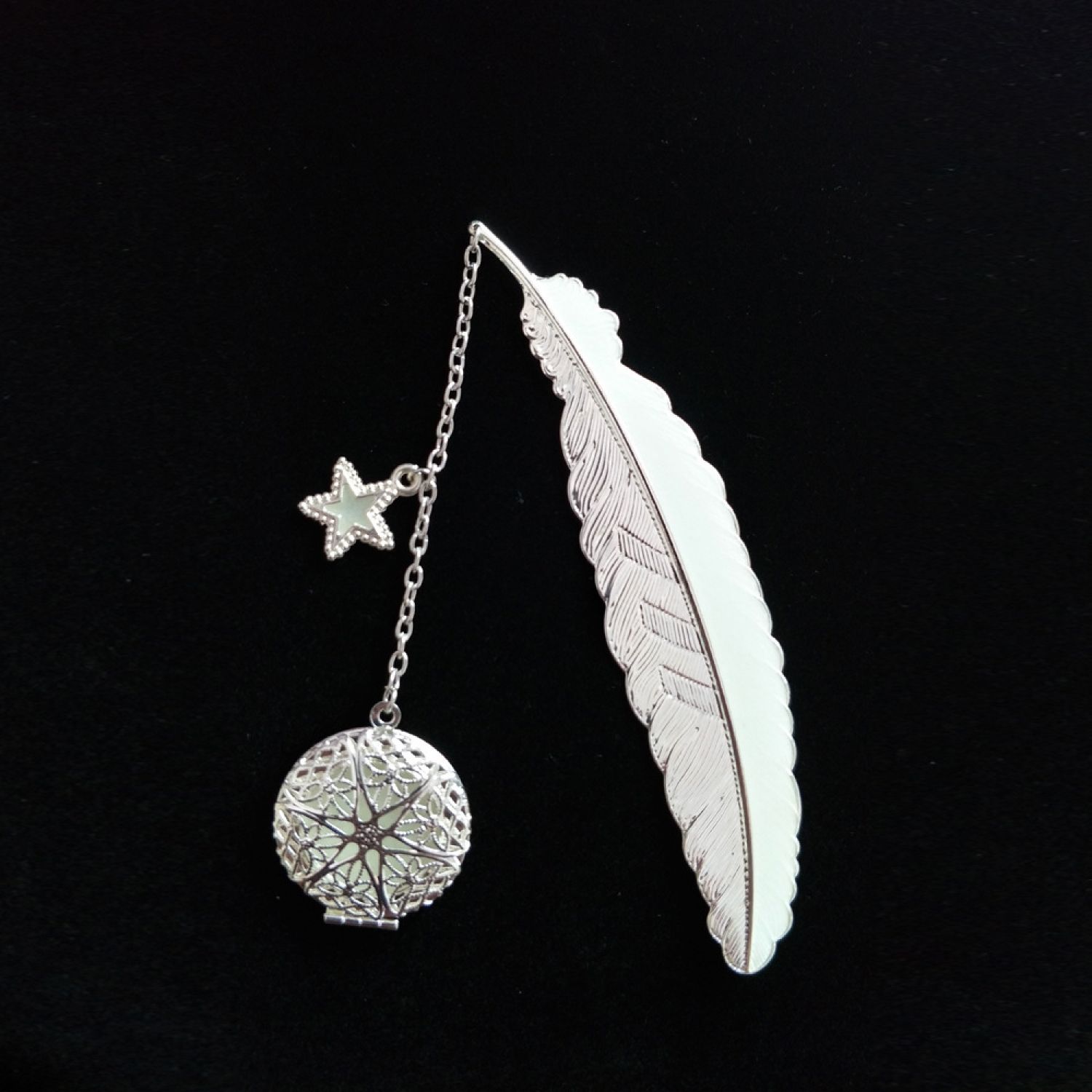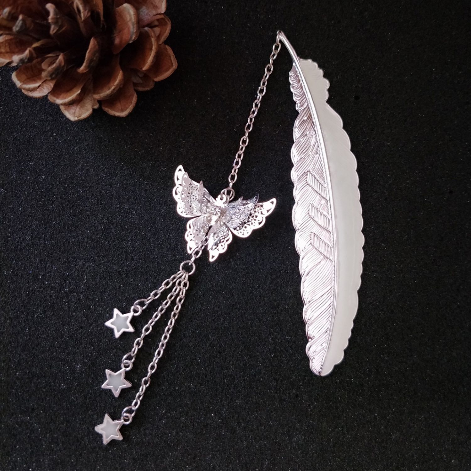 2style silver feather + luminous dragonfly + meteor shower,