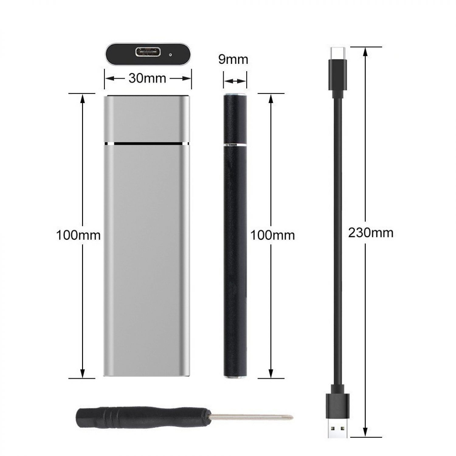 M.2 NGFF To USB3.1 SSD Solid Aluminum Alloy Mobile Hard Disk Enclosure Silver